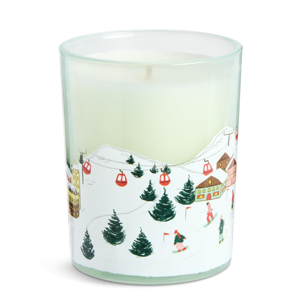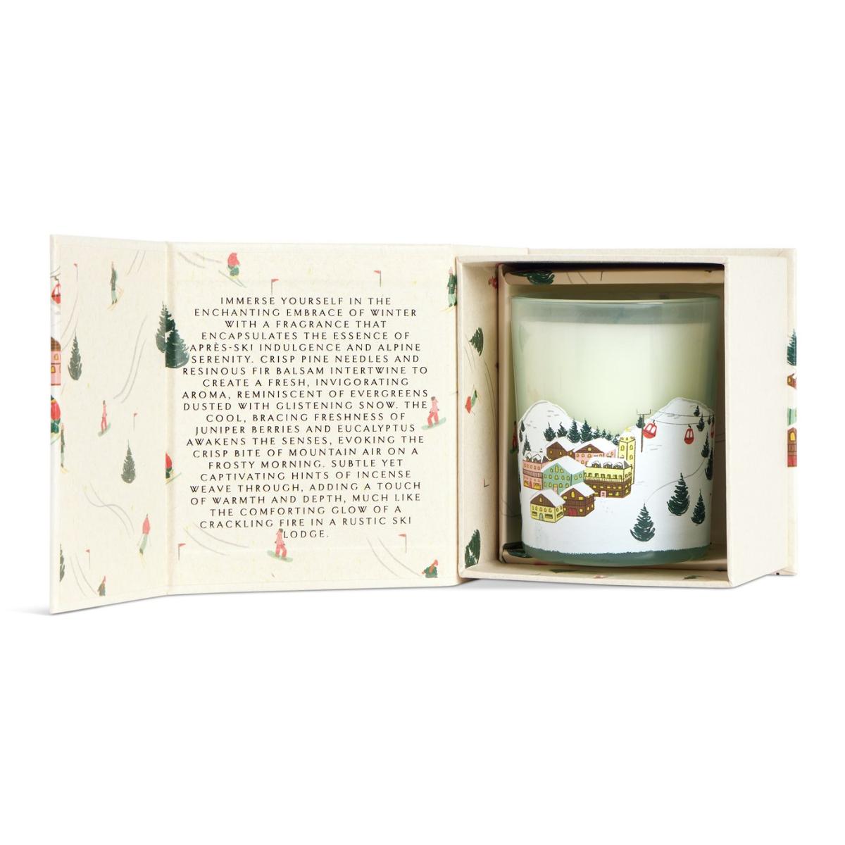 Our decorative Aspen ski candle is designed to transport you to snowy climes. Its interplay of notes from juniper, spruce, conifer and cedar give it an invigorating and refreshingly woody evergreen scent. So whether you're just off the slopes or chilling on the sofa at home, indulge yourself and enjoy a cosy moment with this aromatic flickering candle. Aspen scent. Paraffin wax. Approximate burn time 30 hours. Size H9, W7, D7cm. Diameter 7cm.