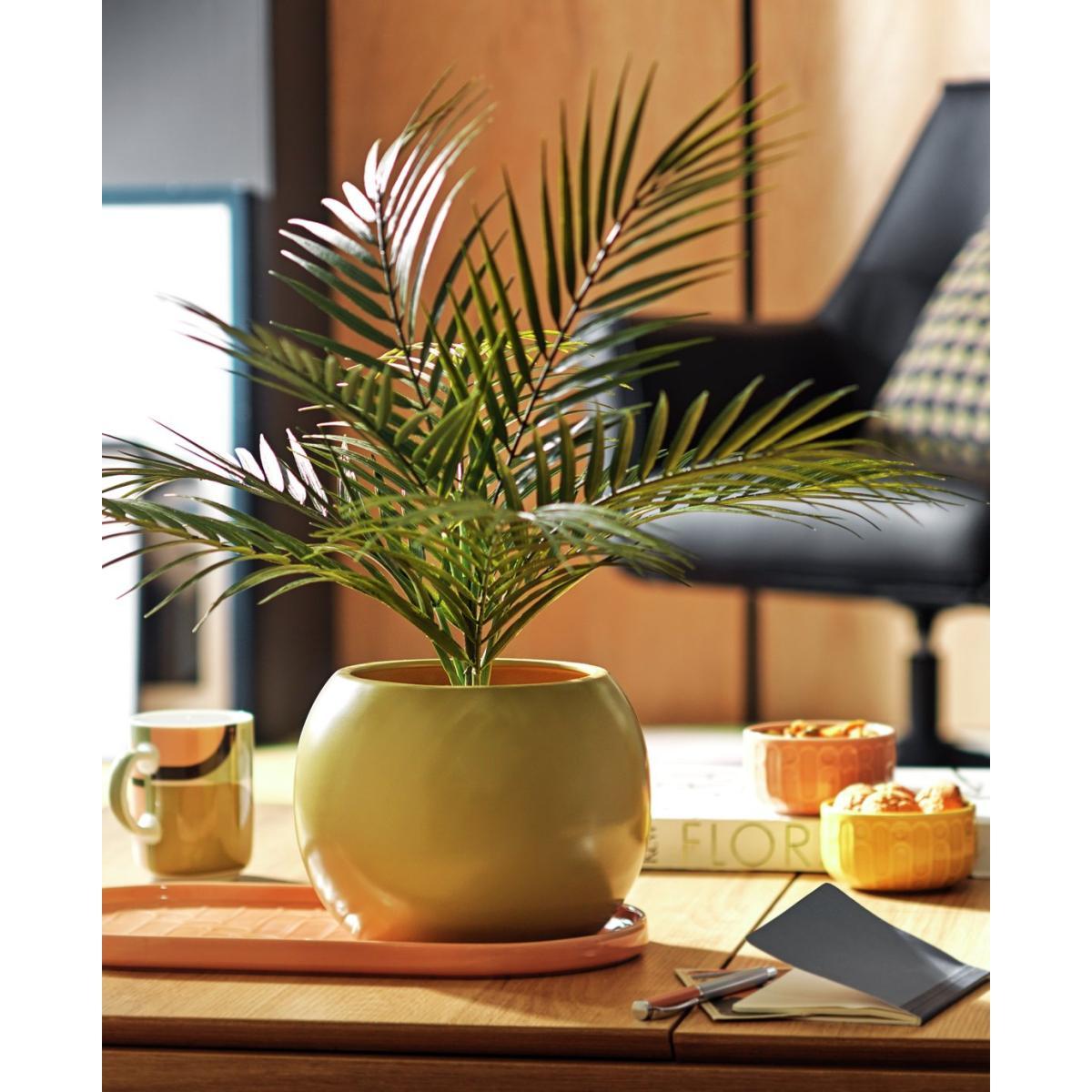 Let's get exotic. Our potted faux plant will bring a bold burst of life to your lounge, office or bedroom. Sitting sweetly in a lime green ceramic pot with a curvy fishbowl shape, we're big fans of its zesty tones and smooth, matte finish. Long, delicate green leaves look just like the real thing, too. Good looks all year round, no pruning or watering required. What a re-leaf.