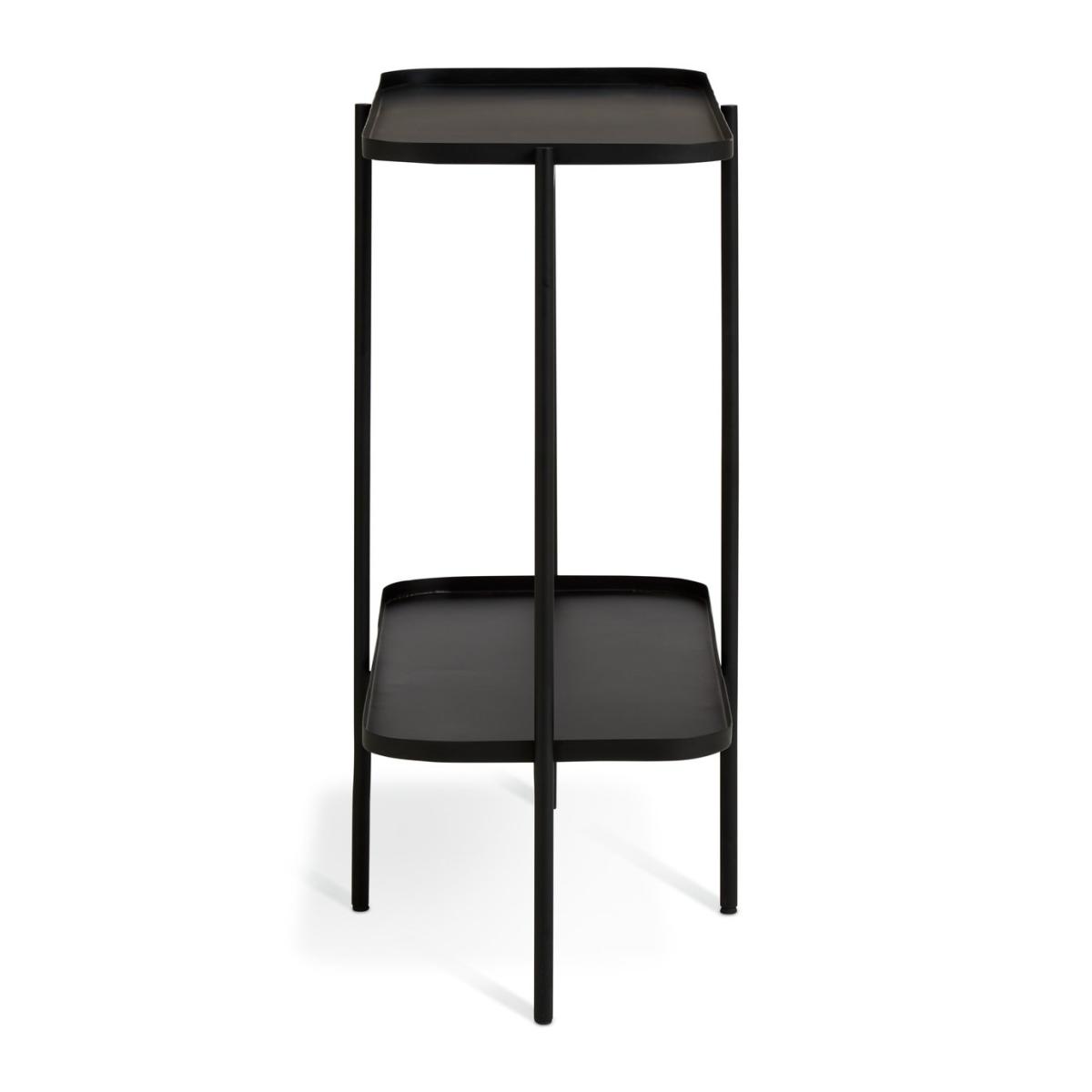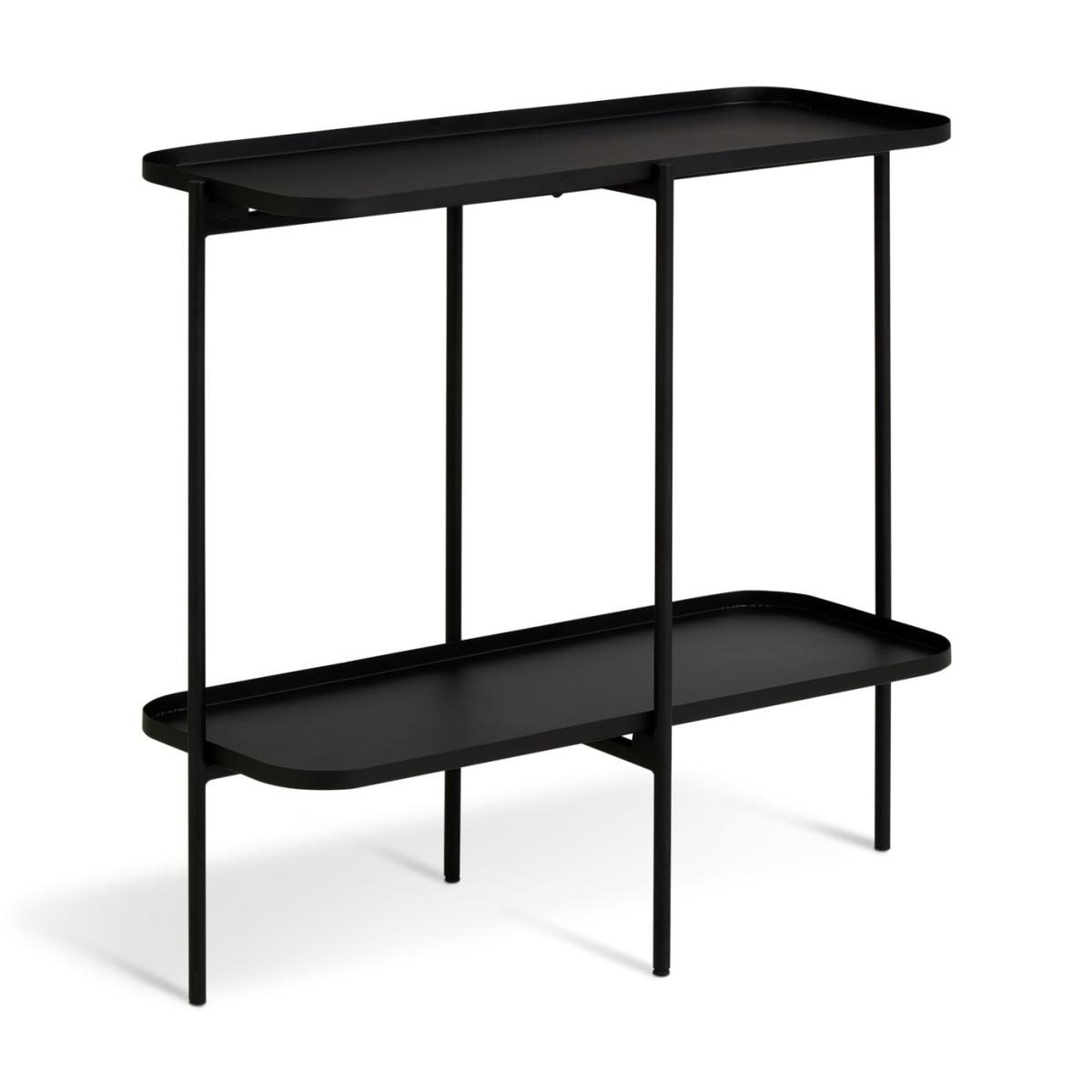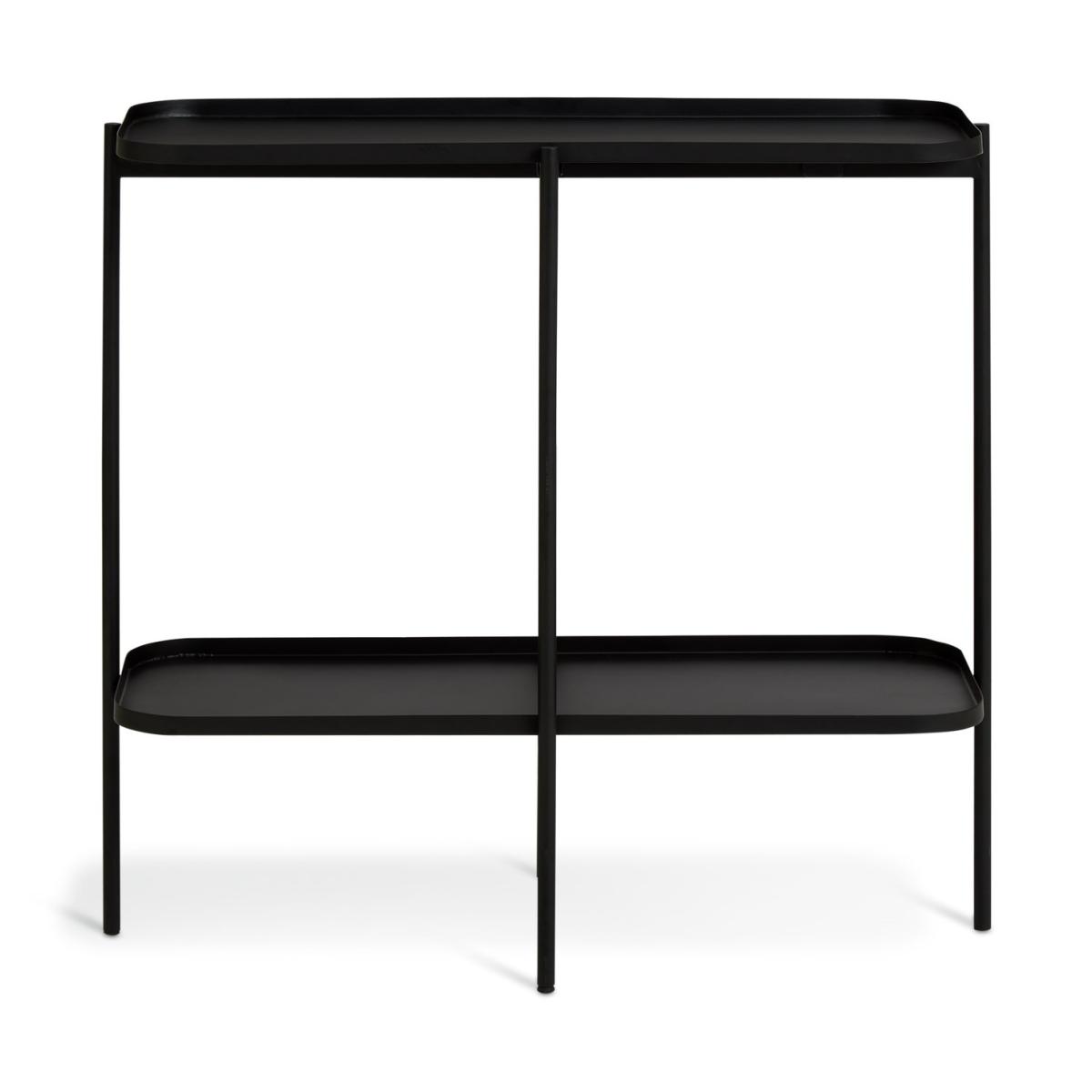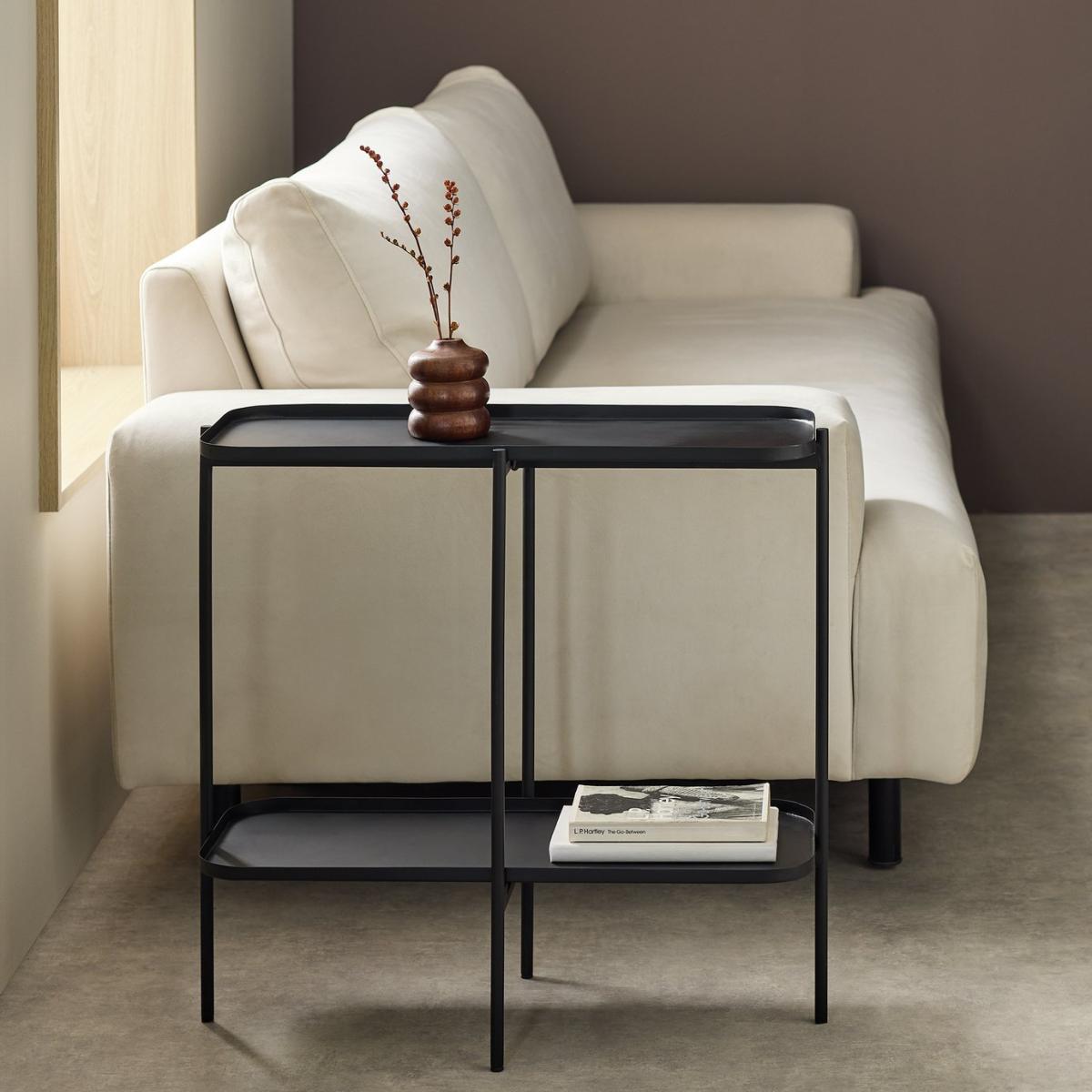 Our Melling sofa side table puts the focus on extra space. With feature tray shelves to help keep items in place it is an integrated storage option. Ideal not just for drinks, nibbles and remotes, but also books, magazines and more. Made of black, lightweight metal with clean lines, it's a great way to make more of the area around your sofa. Part of the Melling collection. Size H 60, W 63, D 28cm. Folded table width 63cm. Made from metal. 1 undershelf. Weight 3.25kg. Minimum assembly - 1 person recommended. Maximum load weight 6kg. General information: Manufacturer's 1 year guarantee.