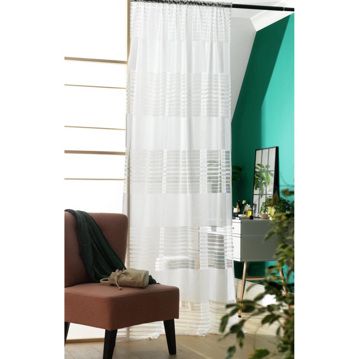 Light and breezy. Bring a refreshing, summery feel to your living room or bedroom with our fabulously floaty voile curtain. We're loving the minimalist feel of its sheer neutral fabric and striped mesh design. Fill your space with natural light throughout the day, while protecting your sense of privacy. Lovely. Suitable for use with curtain poles and tracks, it's versatile too. Soak up that sunshine, you.