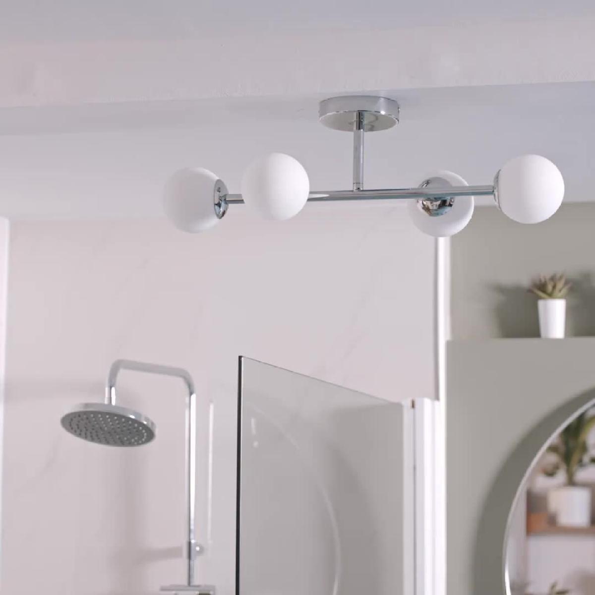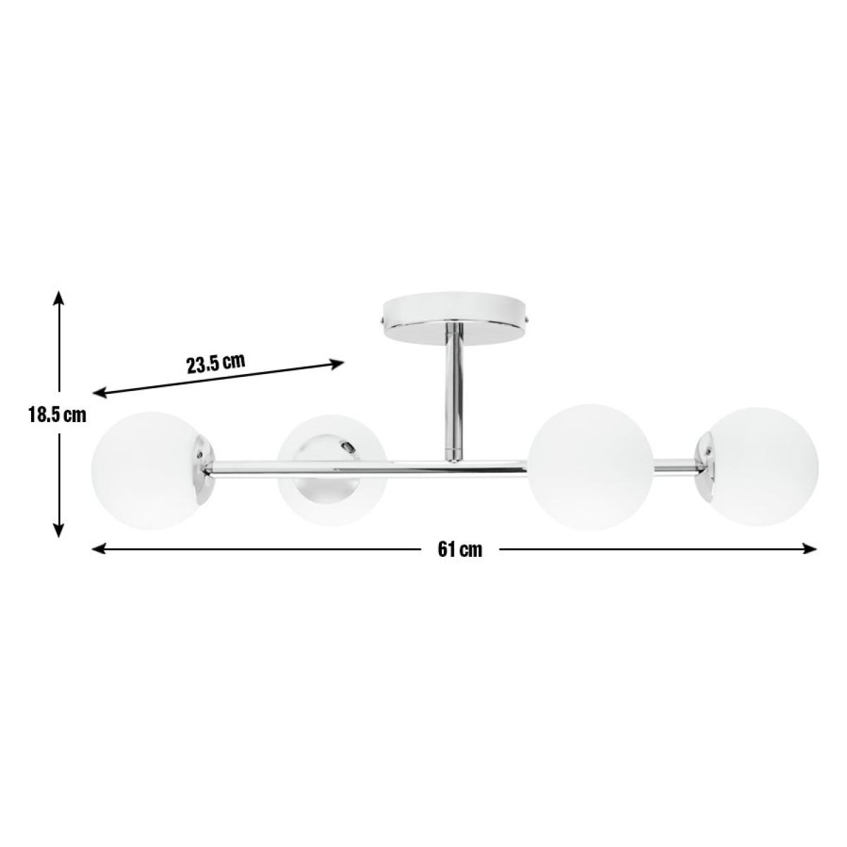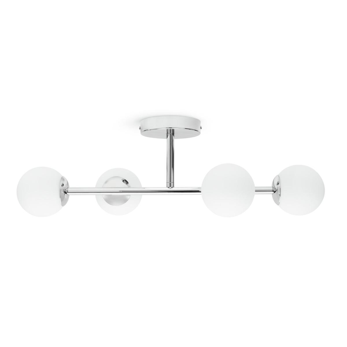 Our glass orb lighting feature is as at home in the living area as it is in the bathroom. Bringing a twist of modernity to a classic style. A highly polished chrome bar supports four opaque glass globes. And as it's flush-fitting, you don't need a high ceiling to create an impact. Dimensions: Size H18.5, W61, D23.5cm. Bulb Information: Bulbs required 4 x capsule G9 LED (not included). Recommended maximum wattage: 4 watts. Can not be used with a dimmer switch. LED bulb only. General Information: Metal and Glass. IP rating 44 - suitable for use in the bathroom in Zone 2 and outside zones. Weight: 1.07kg. Minimal assembly. Product is hard-wired into electrics. We are excited to be welcoming some of our favourite HOME products into the Habitat range. Your product may arrive in Habitat or HOME packaging. Manufacturer's 1 year guarantee.