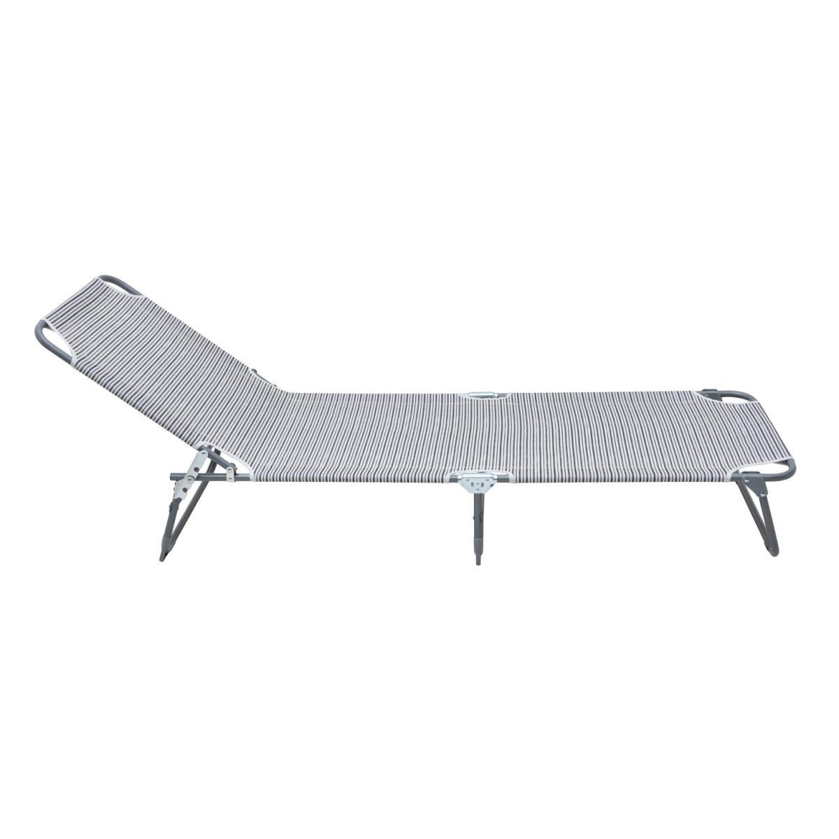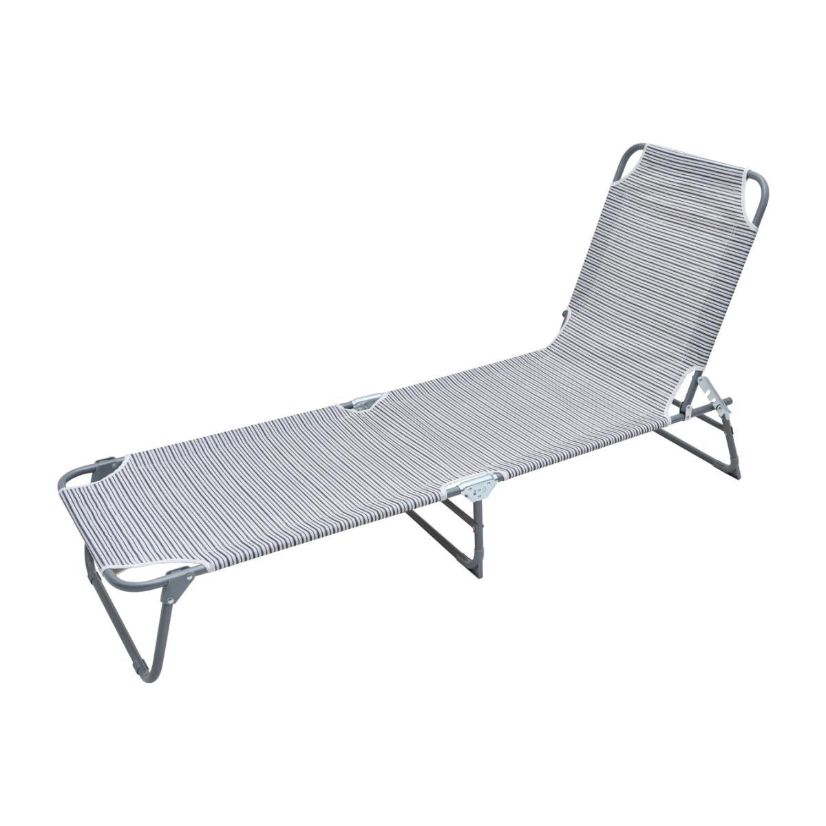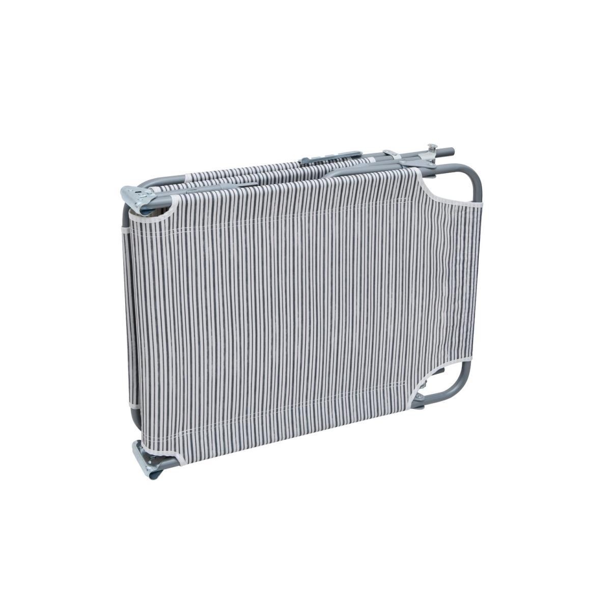 Hello Summer. Soak up the sun's rays on our sun lounger, perfect for lazy days. With a choice of 3 recliner settings, just lie back and relax. Ideal for garden, beach or camping trips. The lightweight grey powder-coated frame folds in seconds and the fabric is wipe clean. So need to worry about any little spills. Be daring with our popular grey striped fabric. Add flip flops. Summer sorted.