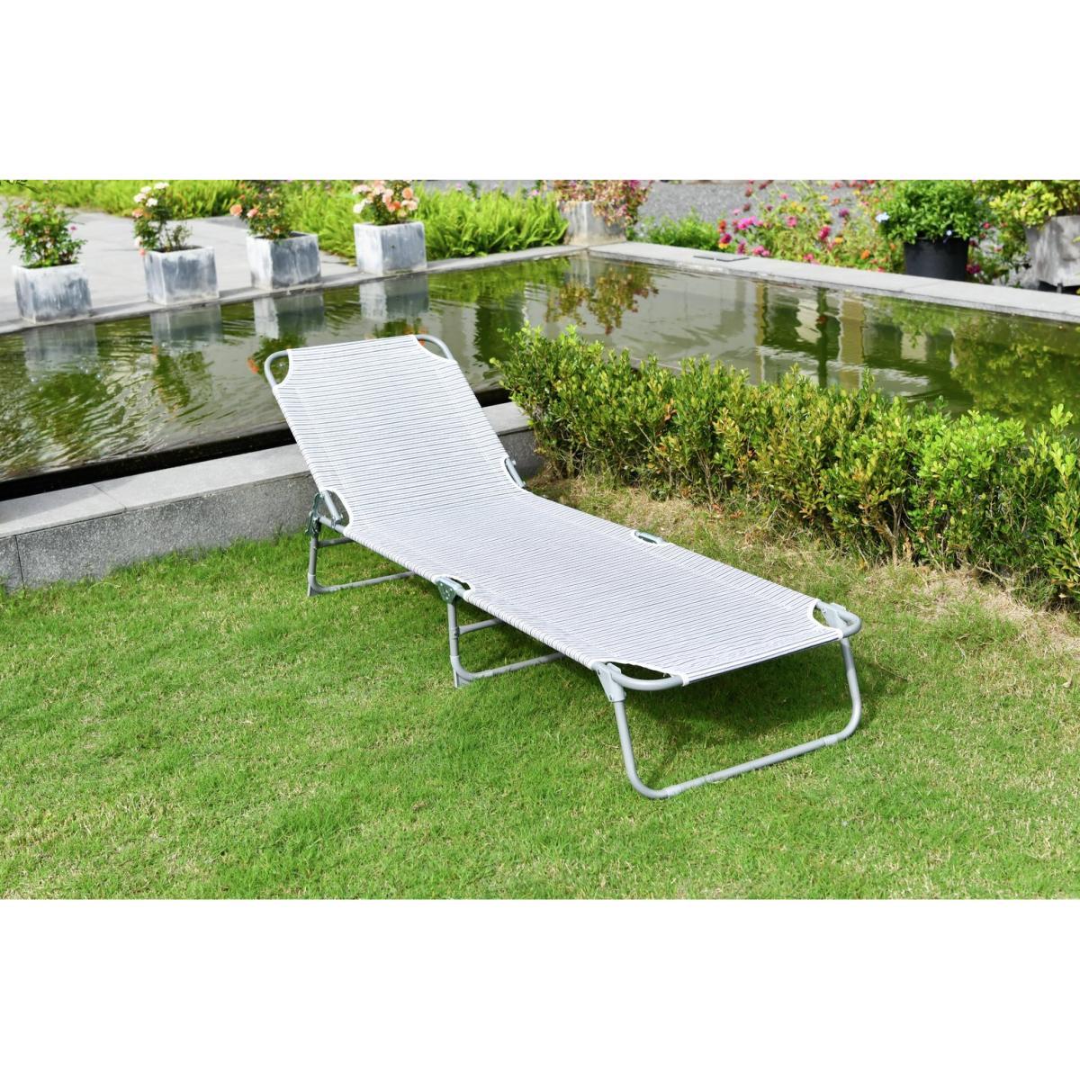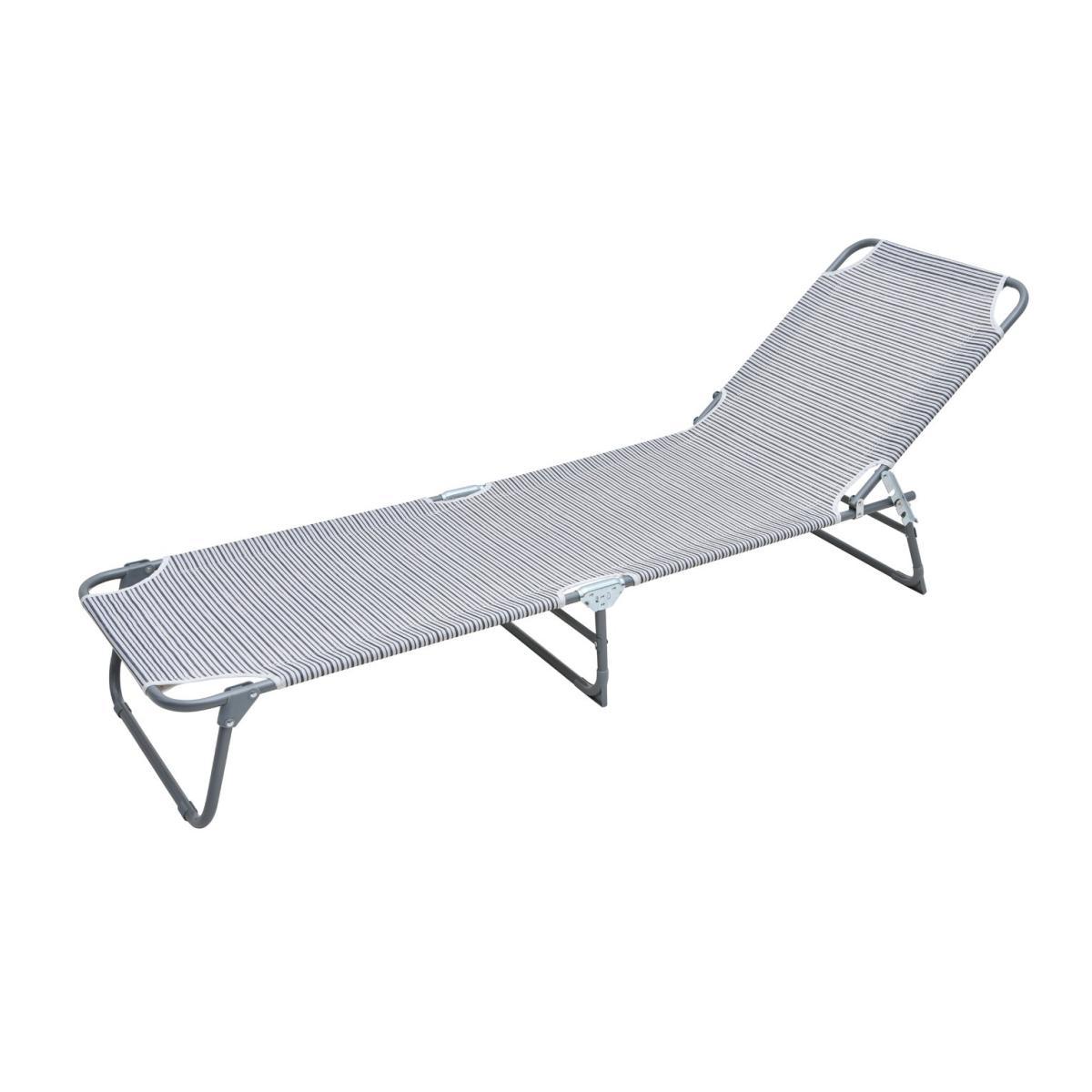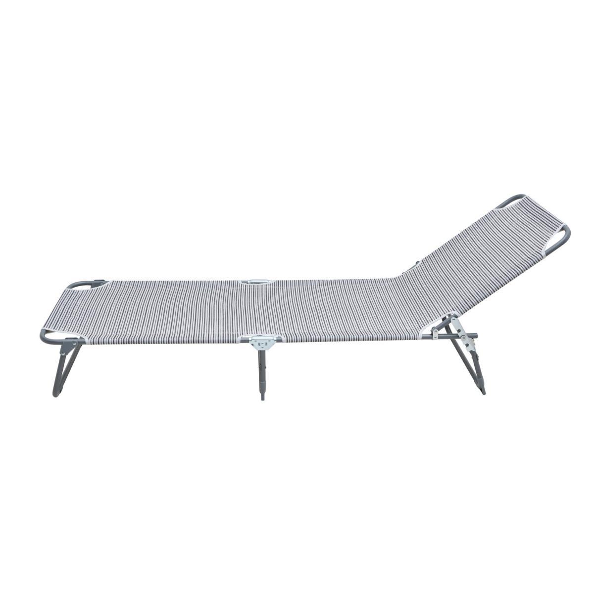 Hello Summer. Soak up the sun's rays on our sun lounger, perfect for lazy days. With a choice of 3 recliner settings, just lie back and relax. Ideal for garden, beach or camping trips. The lightweight grey powder-coated frame folds in seconds and the fabric is wipe clean. So need to worry about any little spills. Be daring with our popular grey striped fabric. Add flip flops. Summer sorted.