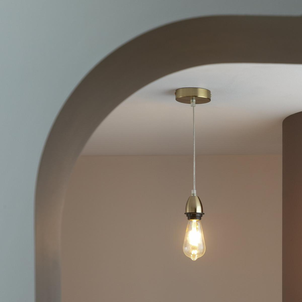 Minimalist and modern. This brass and metal pendant is all clean lines and contemporary edge. Hang it low over a table or high in a hallway to bring instant focus without overpowering the space. The smooth finish brings luxe style while LED compatibility keeps things efficient. Dimensions: Size H109, W10, Diameter 10cm. Adjustable drop. 60 - 109cm drop. Bulb Information: Bulbs required 1 x globe E27 edison screw LED (not included). Recommended maximum wattage: 10 watts. Can not be used with a dimmer switch. LED bulb only. General Information: Material: steel. IP rating 20. Not suitable for bathroom use. Weight: 0.23kg. Manufacturer's 1 year guarantee.