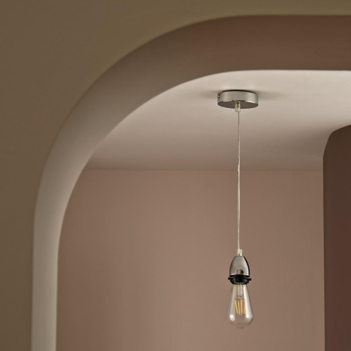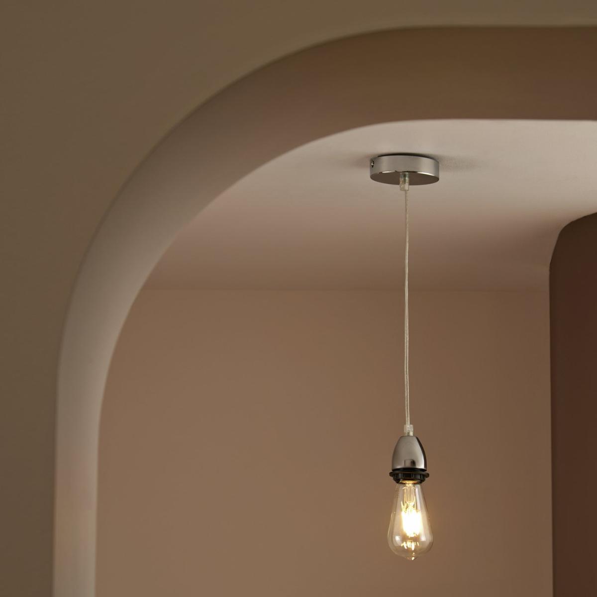 Minimalist and modern. This polished chrome pendant is all clean lines and contemporary edge. Hang it low over a table or high in a hallway to bring instant focus without overpowering the space. The smooth finish brings luxe style while LED compatibility keeps things efficient. Dimensions: Size H120, W10, Diameter 10cm. Adjustable drop. 60 - 109cm drop. Bulb Information: Bulbs required 1 x globe E27 edison screw LED (not included). Recommended maximum wattage: 10 watts. Can not be used with a dimmer switch. LED bulb only. General Information: Material: steel. IP rating 20. Not suitable for bathroom use. Weight: 0.23kg. Manufacturer's 1 year guarantee.