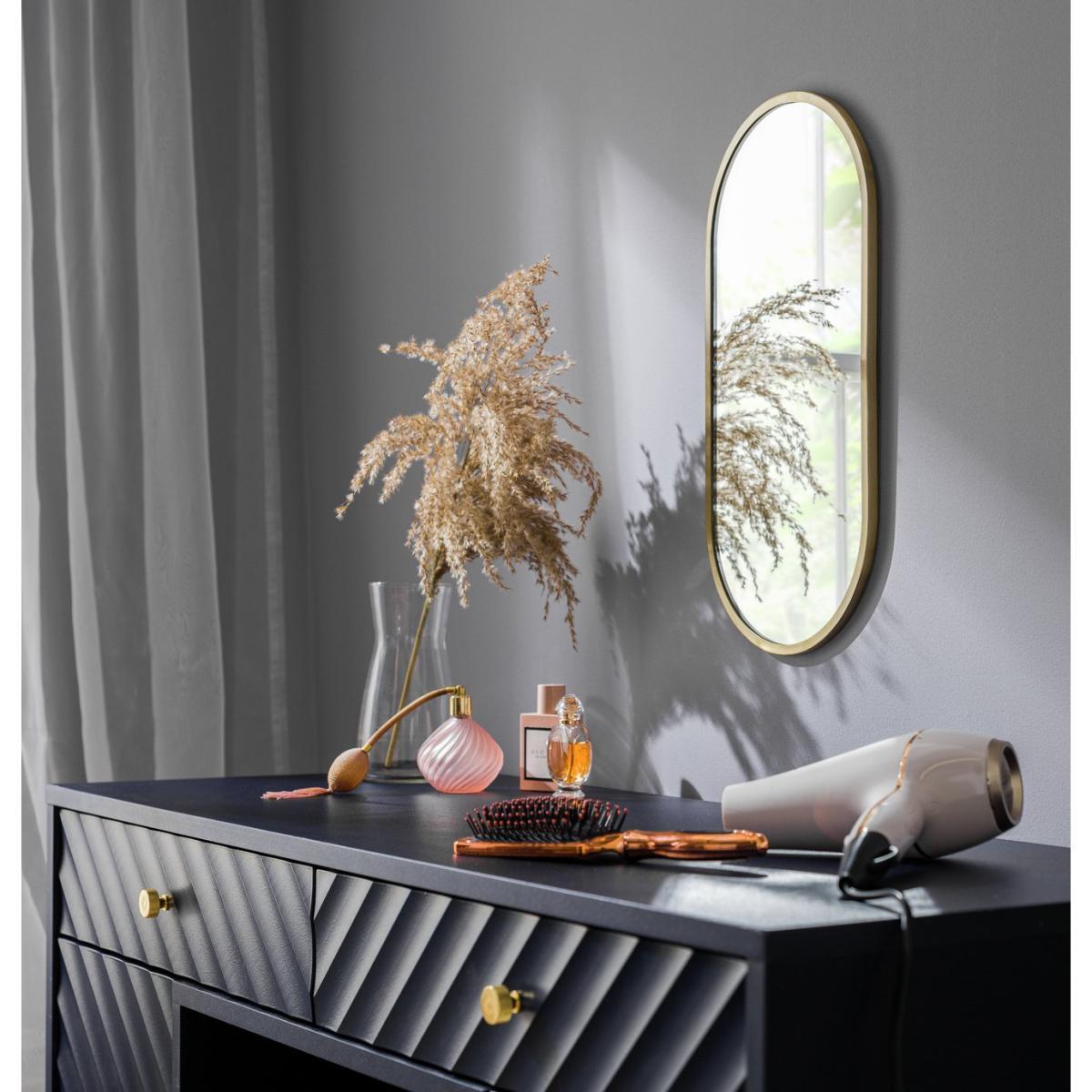 Curves to fall in love with. This elegant oval mirror is the finishing touch you've been looking for. An attractive capsule shape that's really eye catching. We think the gold frame will bring art deco glamour to any space. The simple lines of this stylish design would complement a classic or modern decor. Perfect for brightening a hallway or bedroom, it could also let the light in to your lounge. Hang it in place with the hidden keyhole brackets to set the stage for a touch of drama.
