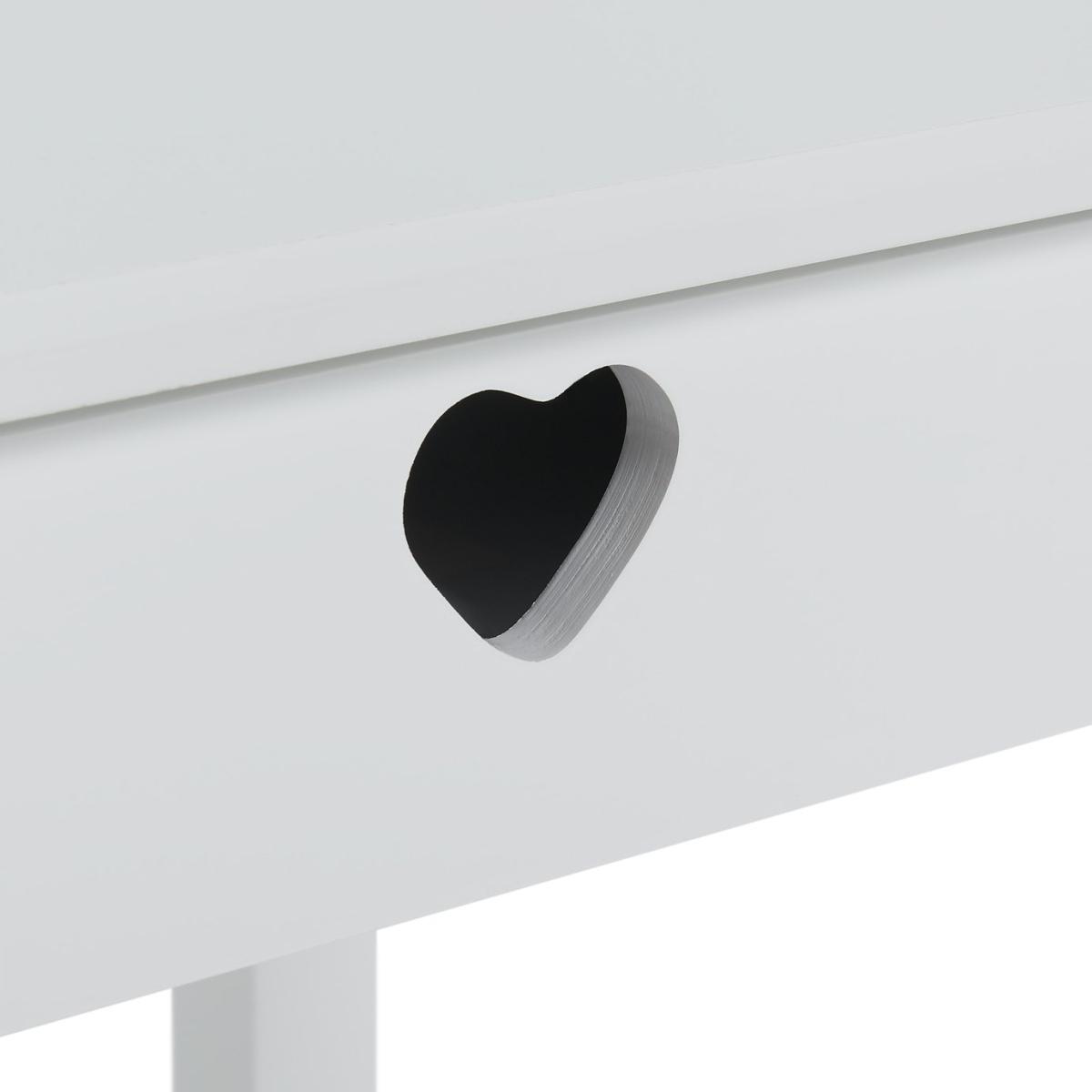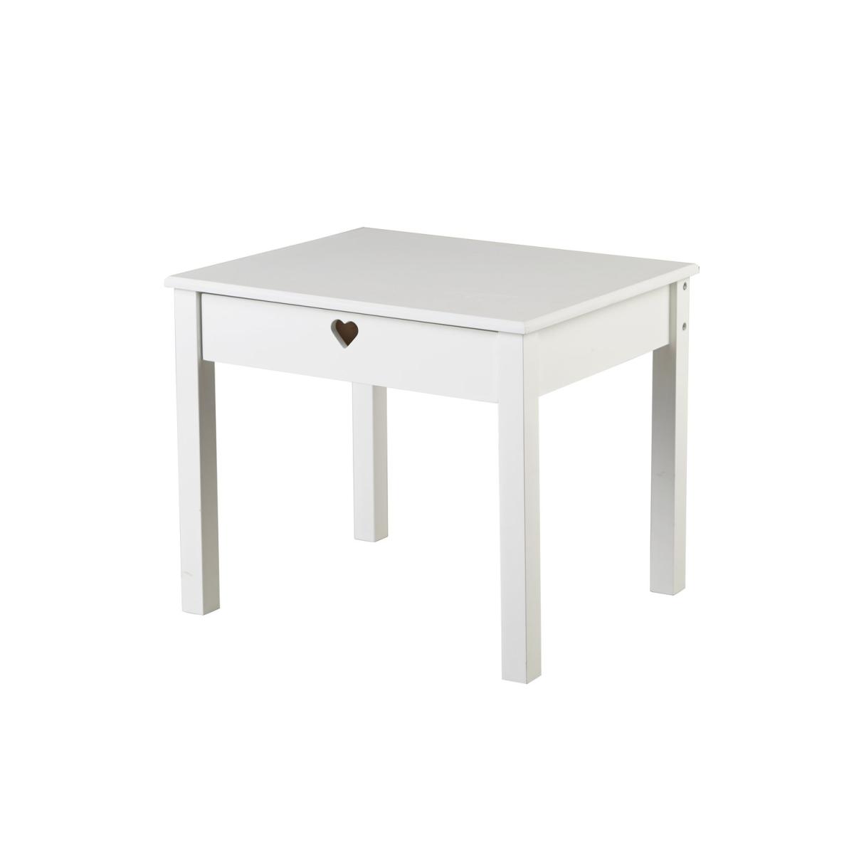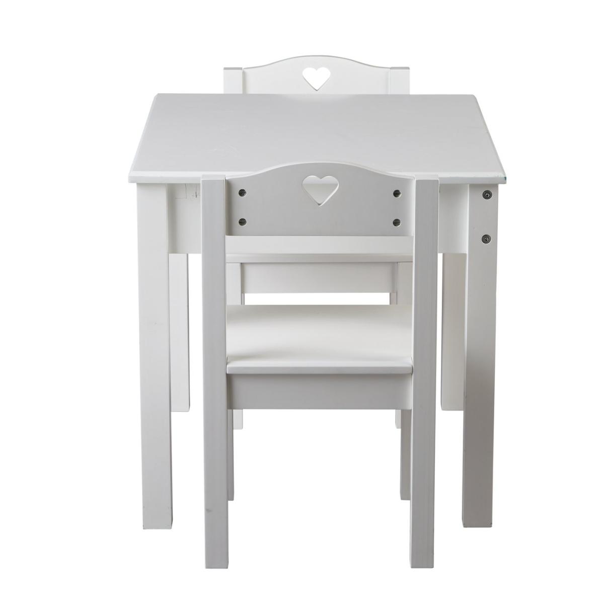 Let's play. This tiny table and 2 chairs are terrific for a toddler's bedroom or the corner of the kitchen. Shall we draw, make paper planes or colour in today? Tidy away pencils, paints, and paper in the handy pull-out drawer. It's easy to open using the cute cut-out heart. Super for snack time when friends come to play too. Made from FSC wood, it's doing its bit for the environment and is a doddle to keep clean. Just wipe with a damp cloth. Pull up a chair and join in the fun.