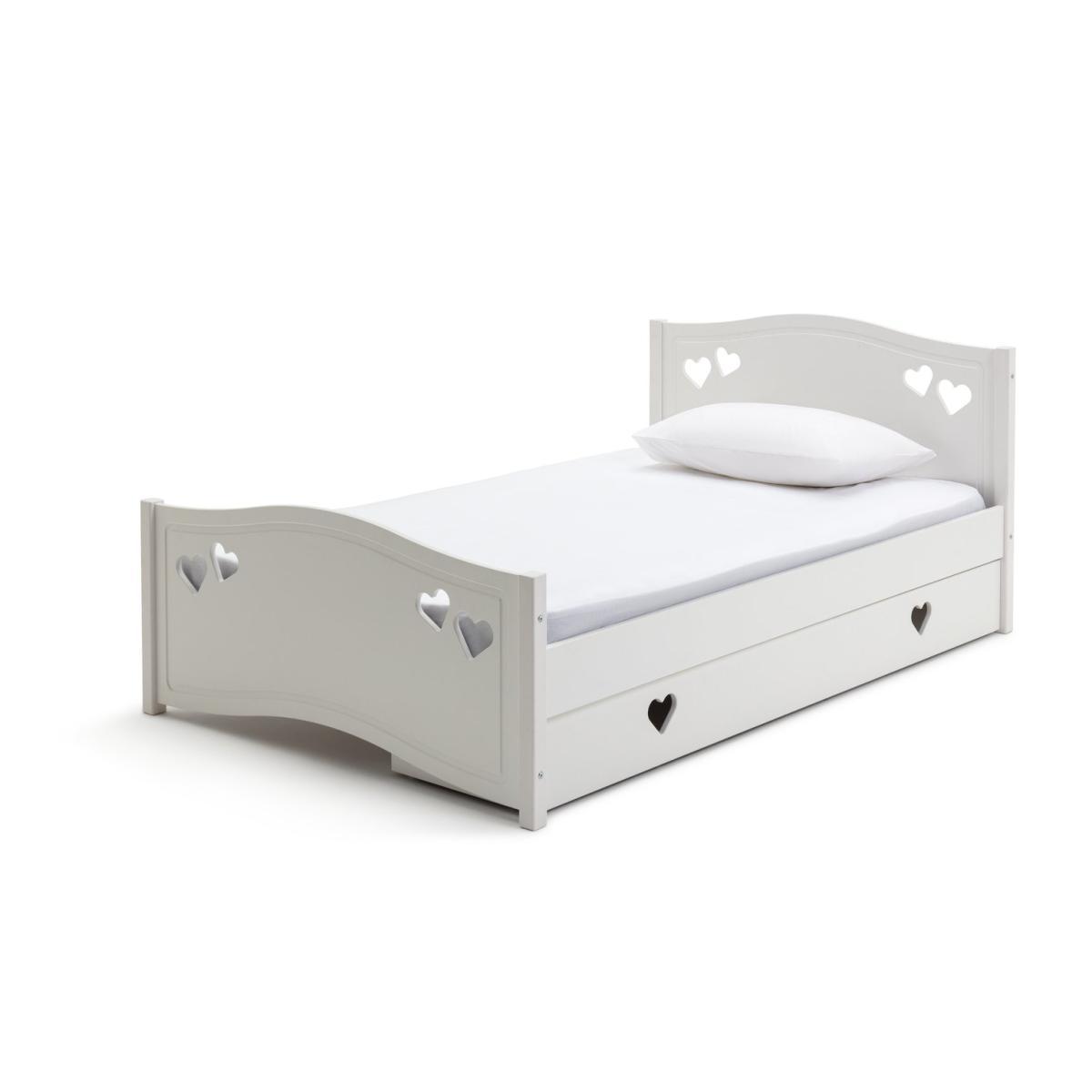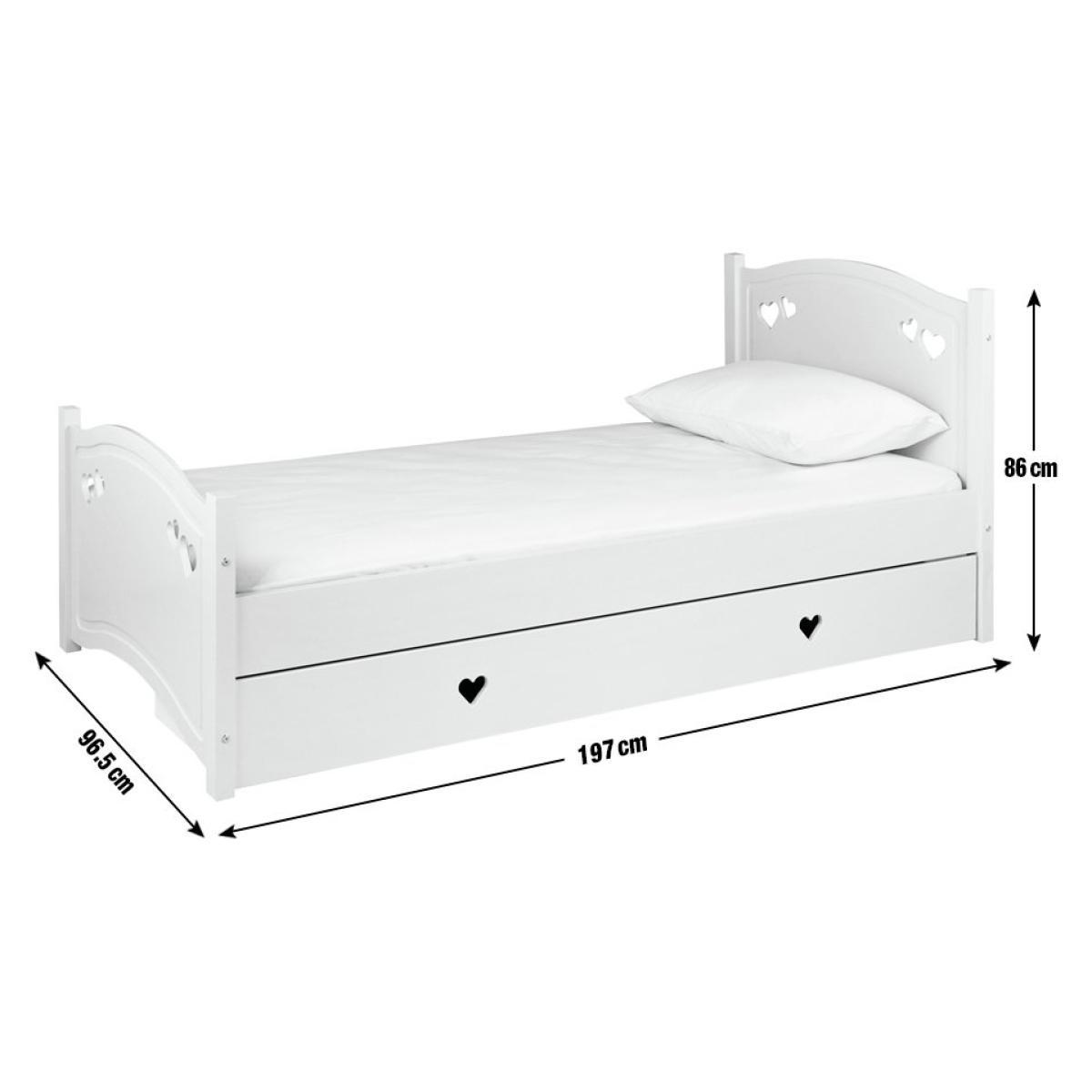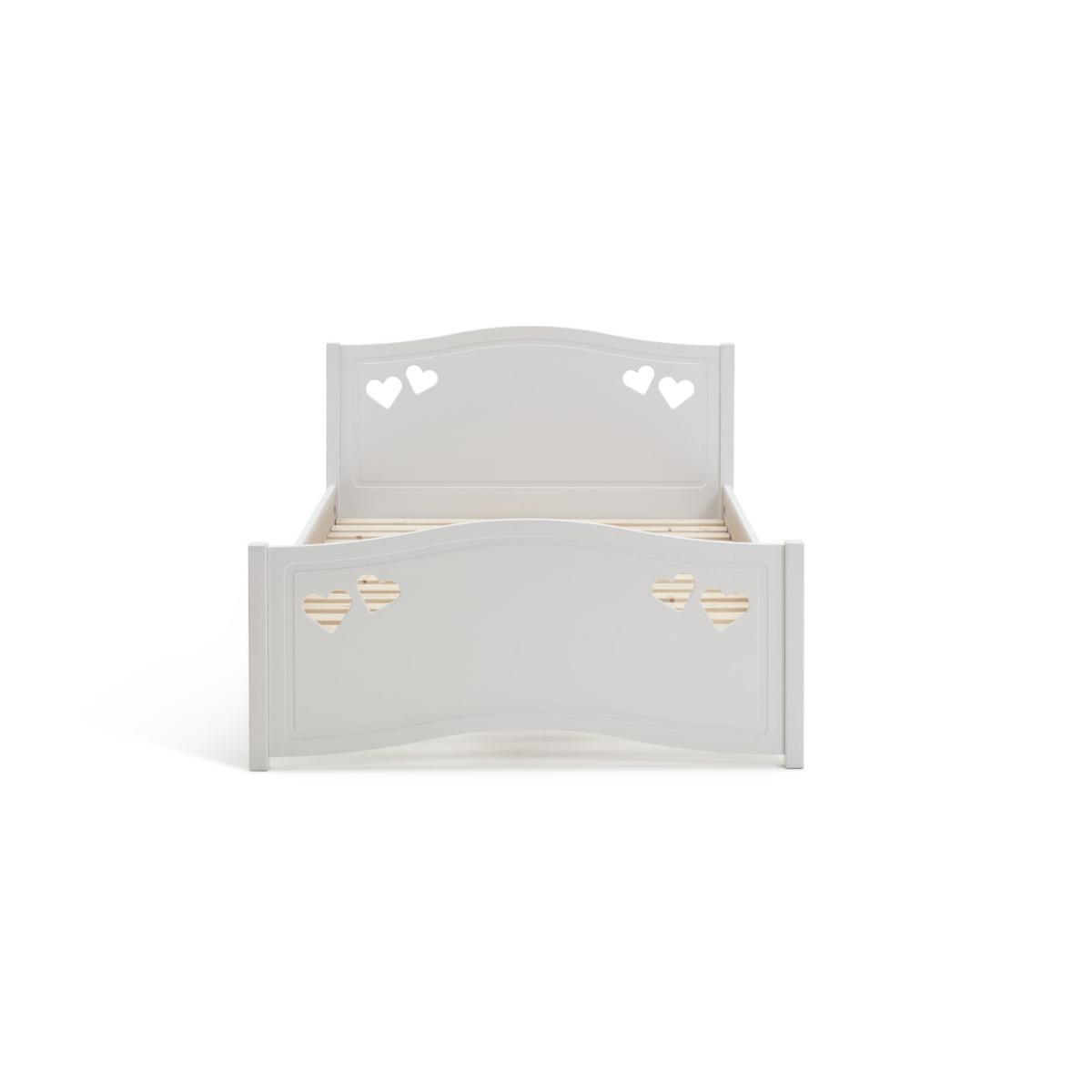 Dream a dream with the white Mia single bed with underbed storage drawer. With solid wood elements, charming cut out heart decorations, and elegant bevelled edges, this is a beautiful bed that has a truly magical look. Ideal for your young dreamer to grow into, the Mia single bed will see them through the years lovingly. The full length underbed storage drawer is perfect for toys and extra bedding. With sturdy castors, the drawer can go on either side of the bed to suit the space.