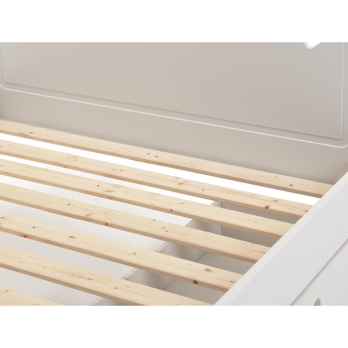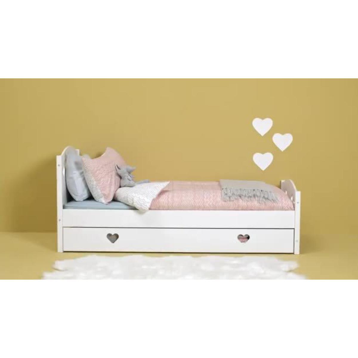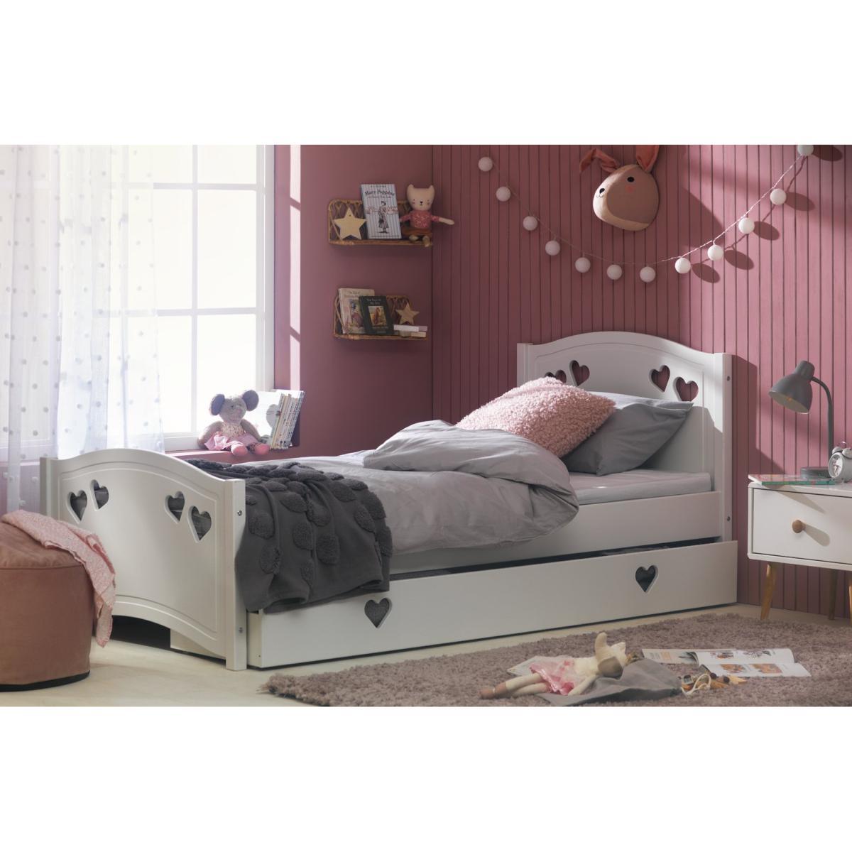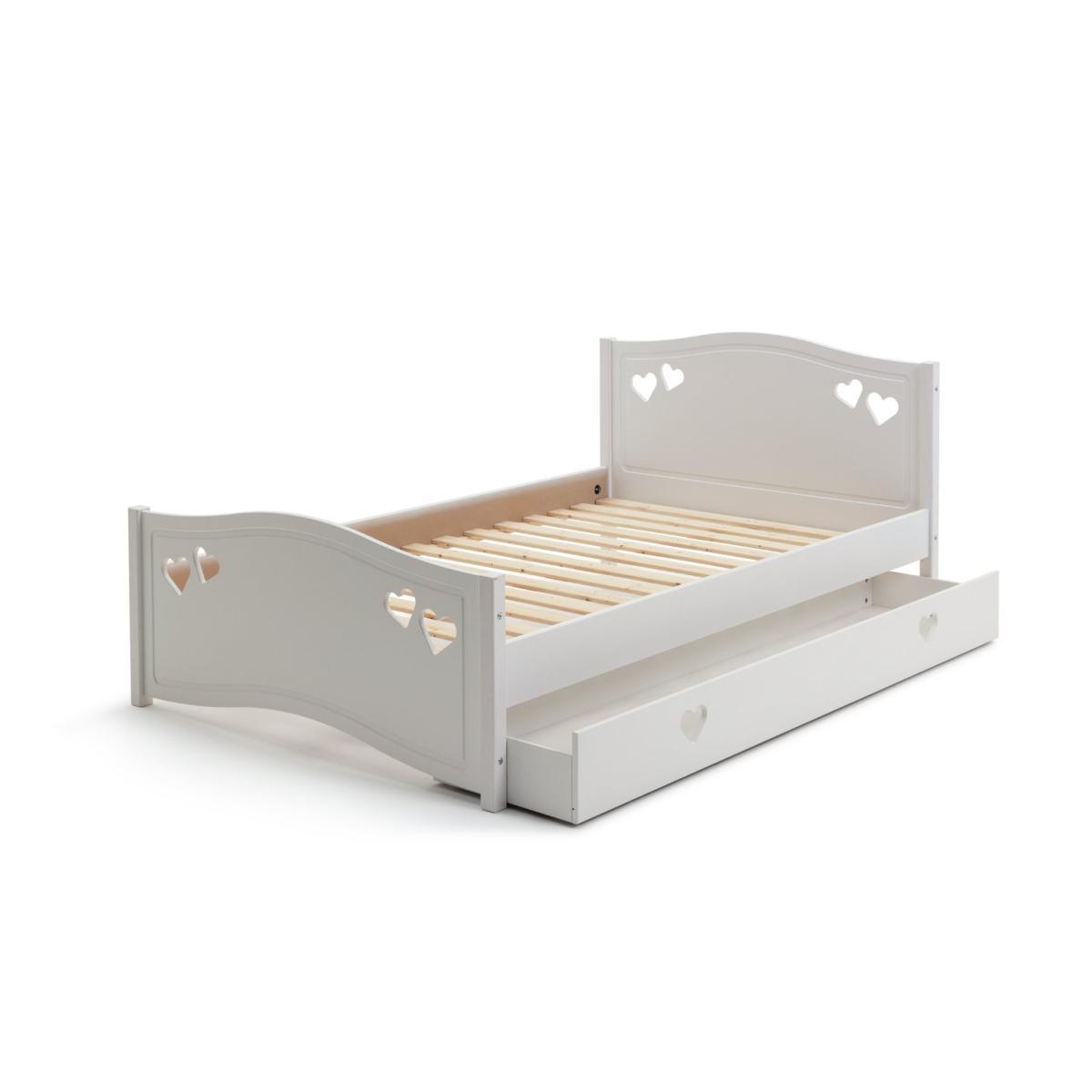 Dream a dream with the white Mia single bed with underbed storage drawer. With solid wood elements, charming cut out heart decorations, and elegant bevelled edges, this is a beautiful bed that has a truly magical look. Ideal for your young dreamer to grow into, the Mia single bed will see them through the years lovingly. The full length underbed storage drawer is perfect for toys and extra bedding. With sturdy castors, the drawer can go on either side of the bed to suit the space.
