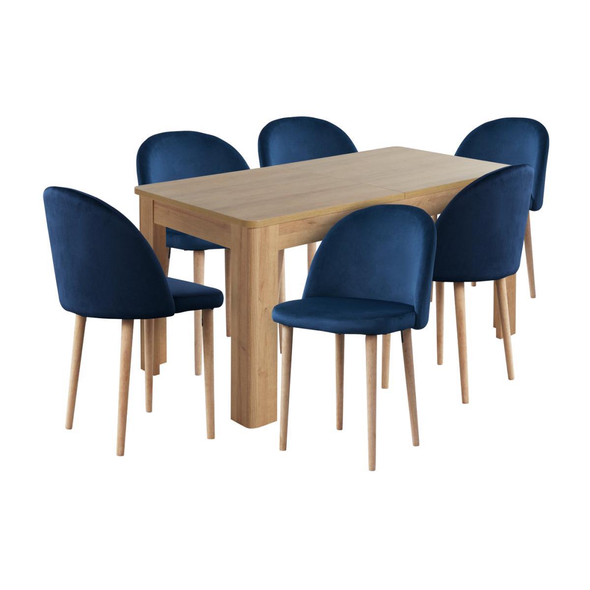 Shape up for supper. Set the scene with our rectangular oak dining table and 6 upholstered wooden chairs. Softly curved corners make a place at the table even more welcoming. Upholstered in elegant navy, the luxurious seats are a real style statement. Get comfy and sink into their padded seats and backrests. And with a scratch-resistant and wipe clean top, the extendable table is completely family friendly. Dinner's ready.