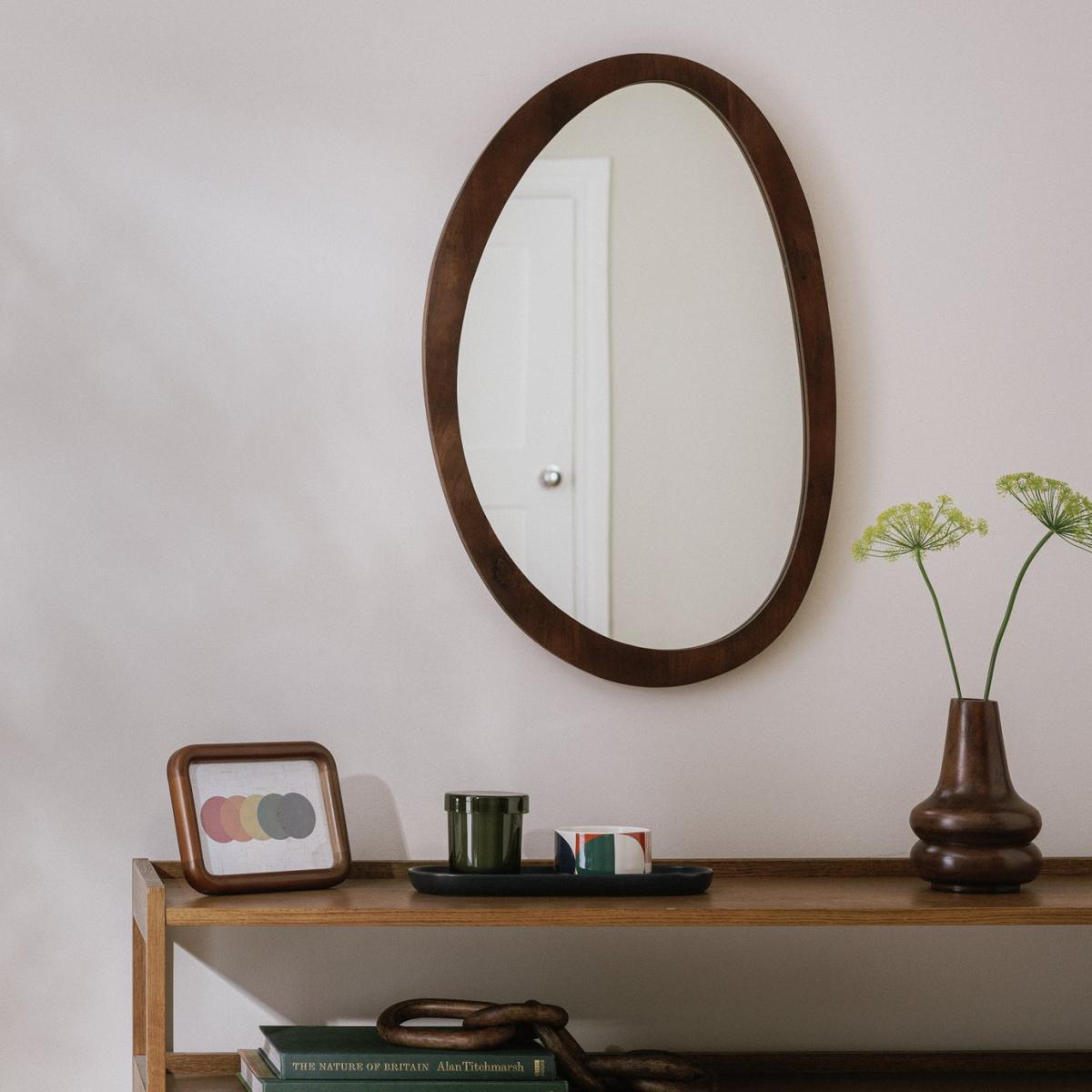 Enhance your light and space. Establish a radiant focal point with our irregular shaped mirror. With a mango wood frame, it's lightweight and has a retro charm. Hang it long, or mount it horizontally behind plants or above a sideboard to create an illusion of depth. Genius. Size H70, W45, D2.5cm. Frame material: Wood. Hanging fixture type: Keyhole. Wall mounted mirror. Total weight: 4kg. General information: FSC certified meaning the materials used for this product are responsibly sourced.