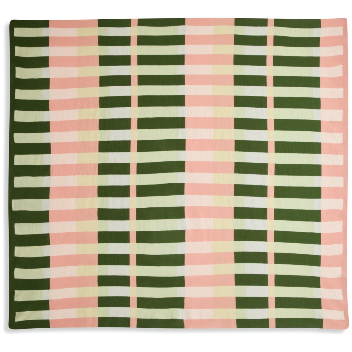Wrap yourself in the cosy charm of this mid-century-inspired knitted throw. In soft pink and green hues, it's a piece that will never go out of fashion. Handwoven with care and finished to perfection, it's a practical yet stylish layer for chilly evenings. 100% acrylic. Size L150, W125cm. Machine washable.