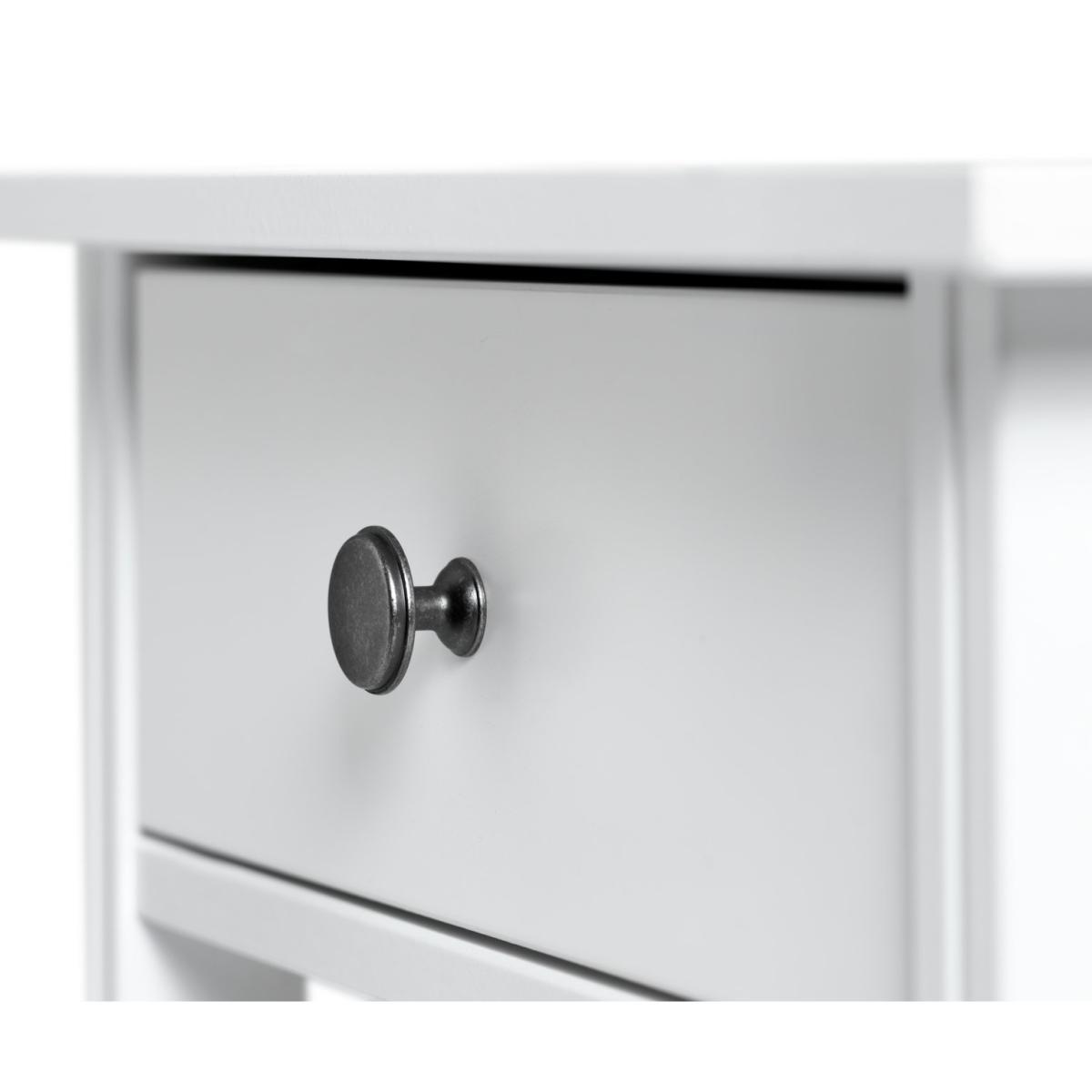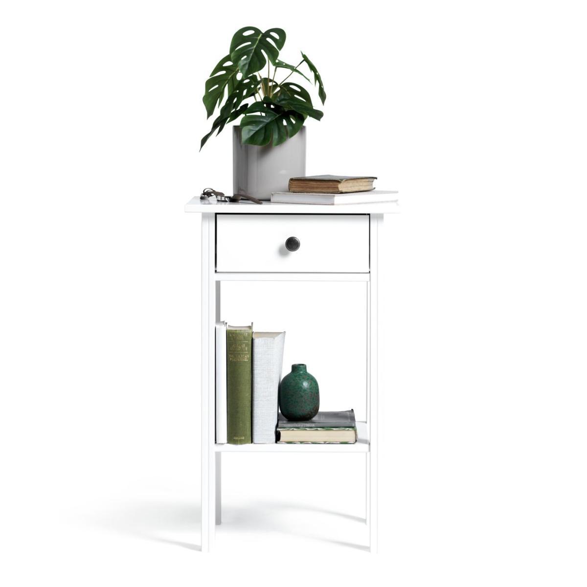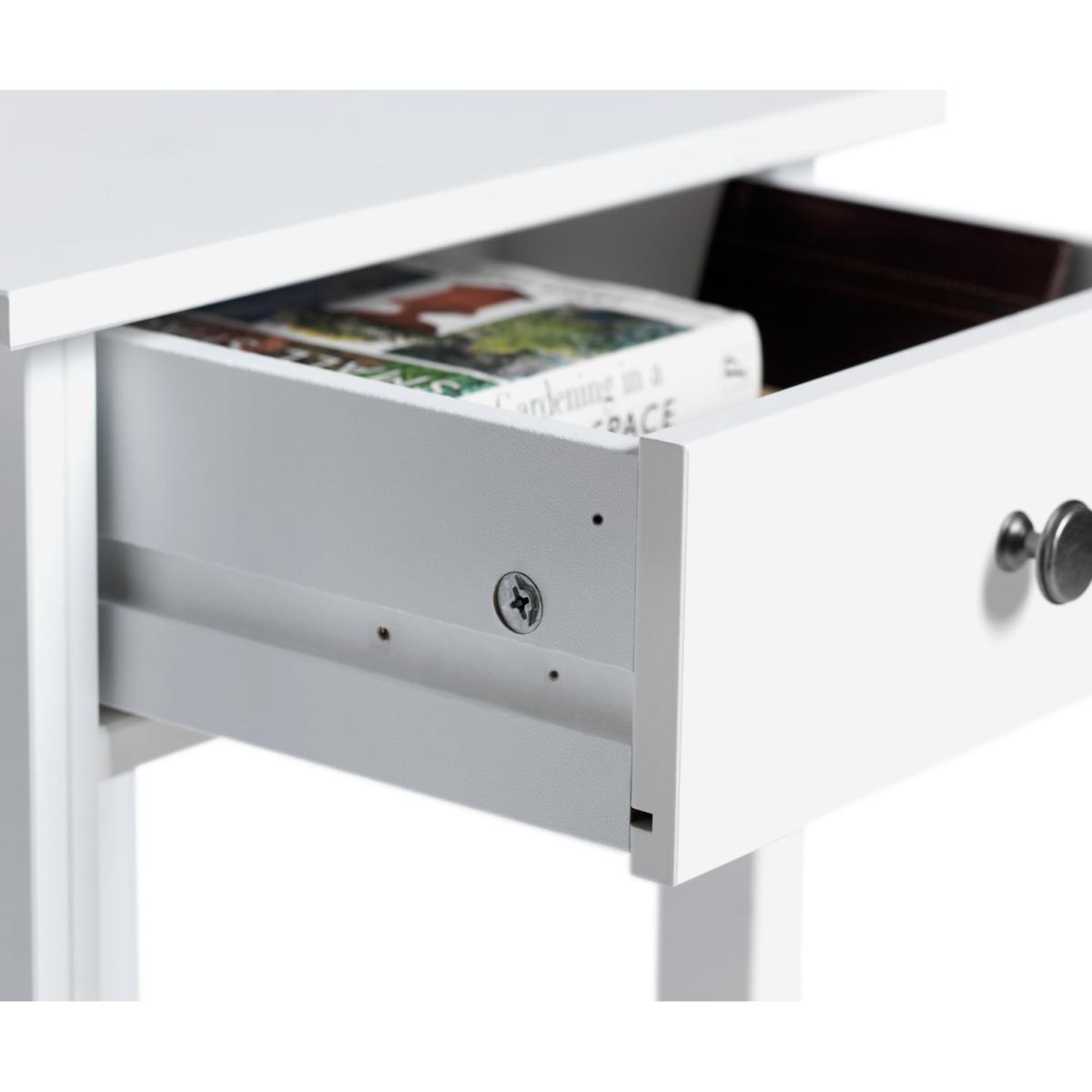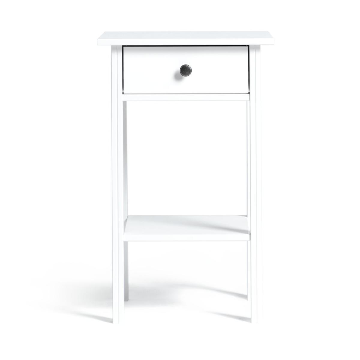 Best friend by your side. With a fixed shelf for holding the latest page-turner and a drawer for ear pods, phone charger and more, this bedside table is a convenient way to keep night time essentials to hand. Add a table or angle poise lamp to read by or a vase of fresh flowers to add a fresh sense of style. White and bright it will not only cheer up your night but will look good with any decor, modern or traditional.