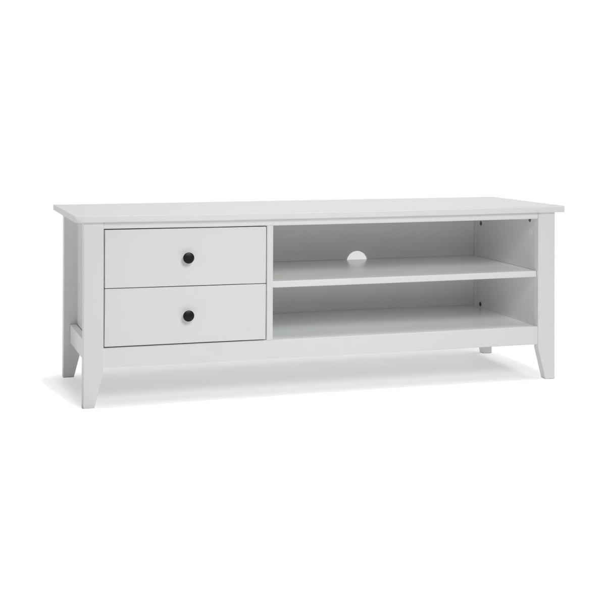 A top spot for your telly. The Minato TV unit is all about simple sophistication. Clean lines and shaker-style design, offer up a cosy, country feel. The 2 drawers are a great place to store manuals, remotes, cables and more. Crafted from sturdy Pine and MDF with a fresh white finish and contrasting black handles, this unit works with any style of decor. Your new living room hero. Looking for the full set? Take a look at matching pieces in the Minato collection. Part of the Minato collection. Made from pine and MDF with a painted finish. Size H 48, W 140, D 45cm. Weight 31.3kg. 2 drawers with metal runners. 1 shelf. Black handles. 2 media storage sections. Largest height of media equipment sections 15cm. Easy cable access. Maximum weight of TV 15kg. Self-assembly - 2 people recommended. Package Dimensions:Package 1 dimensions: H8.7, W144, D46.4cm. Package 1 weight: 33kg. General information:We are excited to be welcoming some of our favourite HOME products into the Habitat range. Your product may arrive in Habitat or HOME packaging.