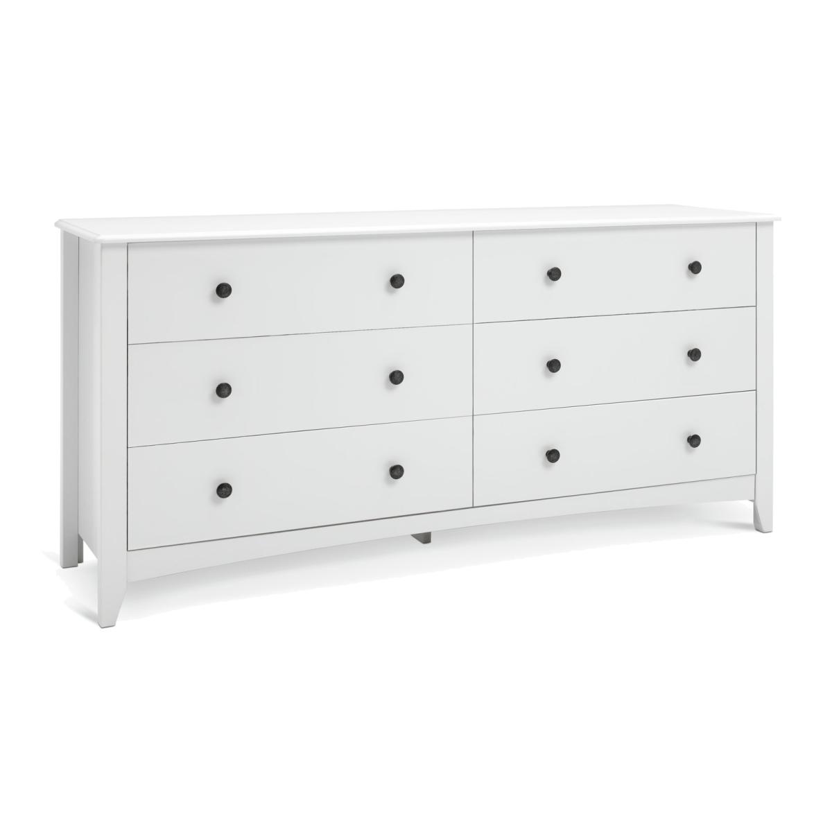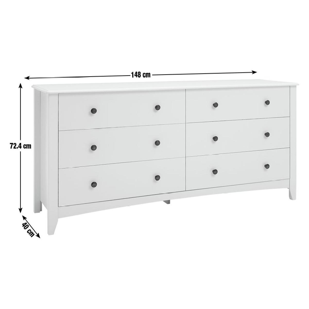 Keep your bedroom clutter free. Our wide white Minato chest has 6 generous easy slide drawers just waiting to be filled. Tops, bottoms, socks, smalls there's plenty of room for all. And to top it all, loads of surface space to add your personal touches. Zoom in on Minato's dark metal handles. They've been given an antique effect which looks superb against the white. Part of the Minato collection. Made of MDF and solid wood. Metal handles. Additional handles not included. 6 drawers with metal runners. Self-assembly - 2 people recommended (includes wall fixings). If this product is over 60cm high it must be securely attached to the wall to prevent overturning. Dimensions: Size H72.4, W148, D40cm. Internal drawer H12, W61.8, D31.5cm. Handle size: L1.7, W3cm. Weight 44kg. Package Dimensions: Package 1 dimensions: H13, W167.5, D52.5,. Package 1 weight: 46kg. FSC certified meaning the materials used for this product are responsibly sourced. General information: We are excited to be welcoming some of our favourite HOME products into the Habitat range. Your product may arrive in Habitat or HOME packaging. Manufacturer's 1 year guarantee.