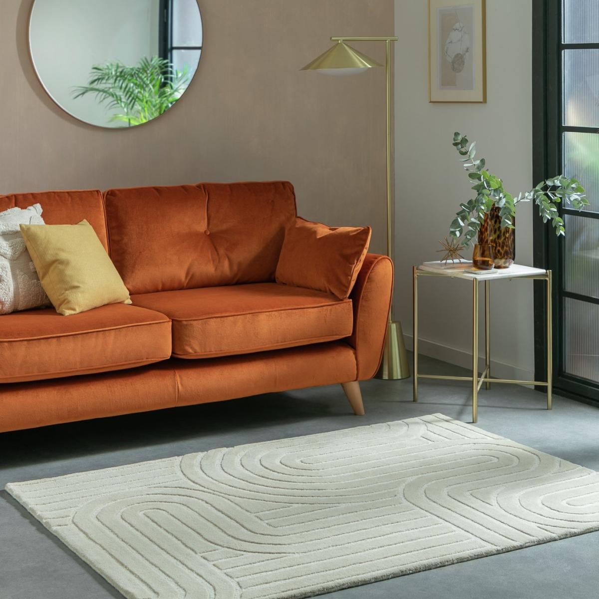 Our contemporary carved rug wows in tones of cream and ivory. Just look at the gorgeous geo design with its artistic swirls. Made in 100% wool, it's a pleasure to sink your toes into. Handwoven in India. Curating a modern space? Add some of our floor lamps, cushions, curtains and more accent pieces to your decor. Hand made. Made in India. 100% wool. Woven. Spot clean only. Size L230, W160cm. Size of runner L230, W160cm. Cream Loop & Cut Pile design. General Information: We are excited to be welcoming some of our favourite HOME products into the Habitat range. Your product may arrive in Habitat or HOME packaging.