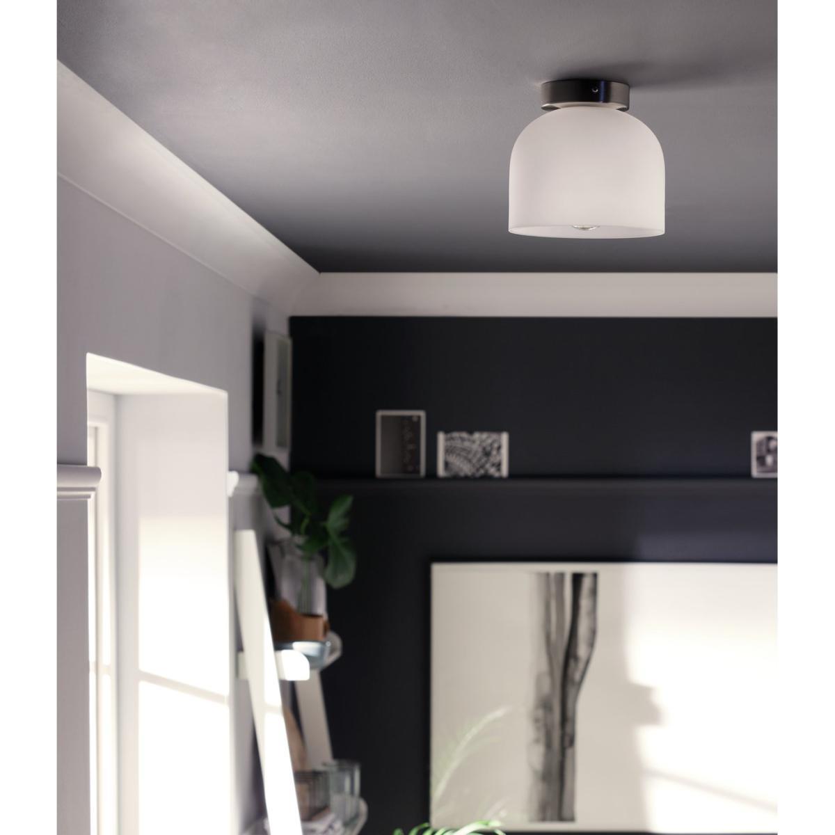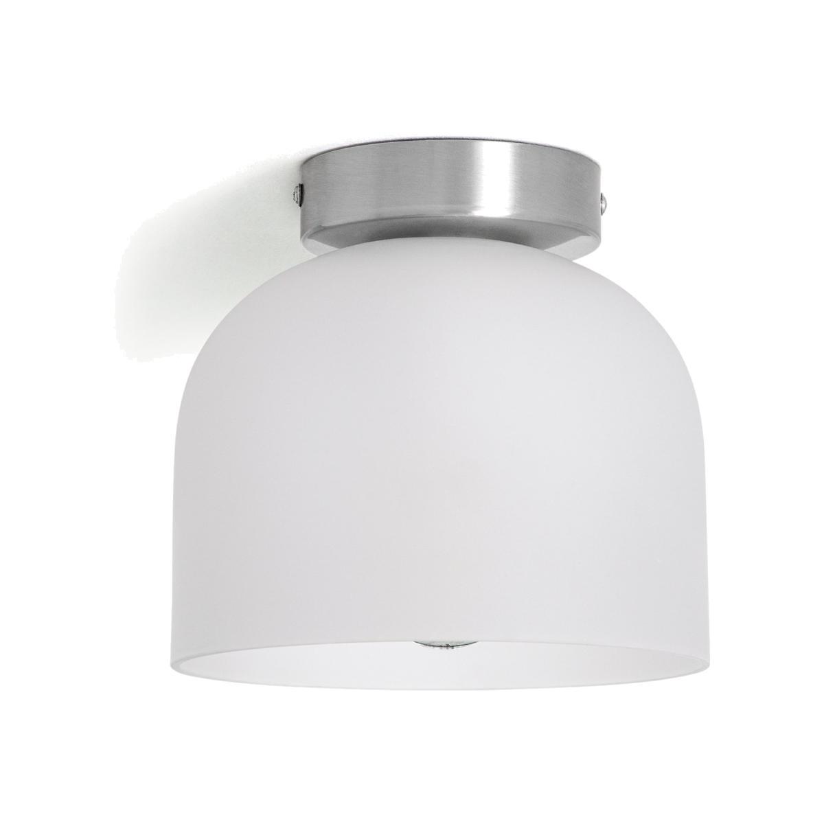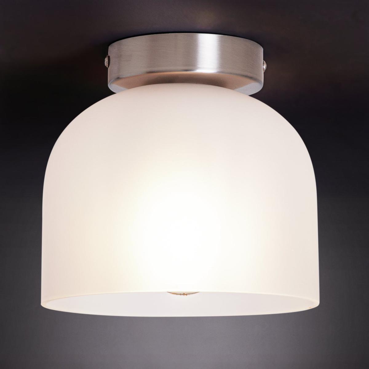 Let us bowl you over! This gently curved ceiling light brings a warm inviting glow to your hallway. Designed to diffuse light, the frosted glass shade adds a soft ambience to any living space. Combines effortless function and contemporary style. Nickel effect on the round base adds a polished finish to the fitting. Sits flush to the ceiling, so you can make the most of your floor space.