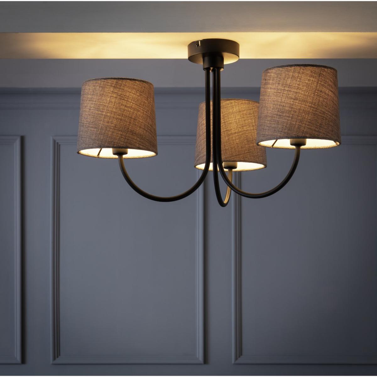 Simple lines, refined elegance. When you want a ceiling light with understated grandeur, our 3-way light fits the bill. Modern yet comfortably timeless. The slender black curves are forged from metal and topped with linen-like fabric shades. A shining example of contemporary country style. Dimensions: Size H30, , Diameter 53cm. Bulb Information: Bulbs required 3 x globe E14 small edison screw LED (not included). Recommended maximum wattage: 8 watts. Can not be used with a dimmer switch. LED bulb only. General Information: Metal and fabric. IP rating 20 - not suitable for bathroom use. Weight: 1kg. App needed for use: No. Self-assembly. Product is hard-wired into electrics. This lighting product is a class 2 fitting. We are excited to be welcoming some of our favourite HOME products into the Habitat range. Your product may arrive in Habitat or HOME packaging. Manufacturer's 1 year guarantee.