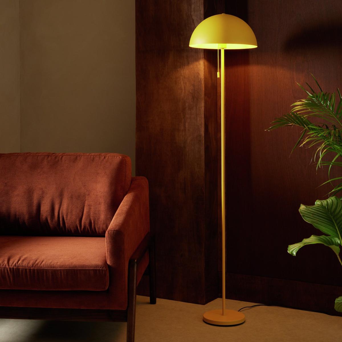 Like a sprinkling of vintage with a thoroughly modern look? Then bingo. You'll love our in-house designed mushroom floor lamp. In bright yellow, with a classic dome, it casts a warm ambient light to create a mellow mood. And just like the 70s originals, it features a pull cord switch. A real statement piece off or on. What's great is you can also repurpose your lamp around the home from lounge to bedroom. A style icon looks good anywhere. Available in a variety of colours so you can pick the perfect one for you. Dimensions: Size H161, Diameter 35cm. Diameter of base 22cm. Shade size H17.5, D 35cm. Cord length 1.8m. Bulb Information: Bulb required 1 x globeE2. 7 edison screwLE D (not included). 10 watts. General Information: Shade material: metal. Base material: metal. Pull switch. IP 20not suitable for bathroom use. Self-assembly. This lighting product is a class 2 fitting. Weight 3.95kg. Part of the Mushroom collection. Manufacturer's 1 year guarantee.