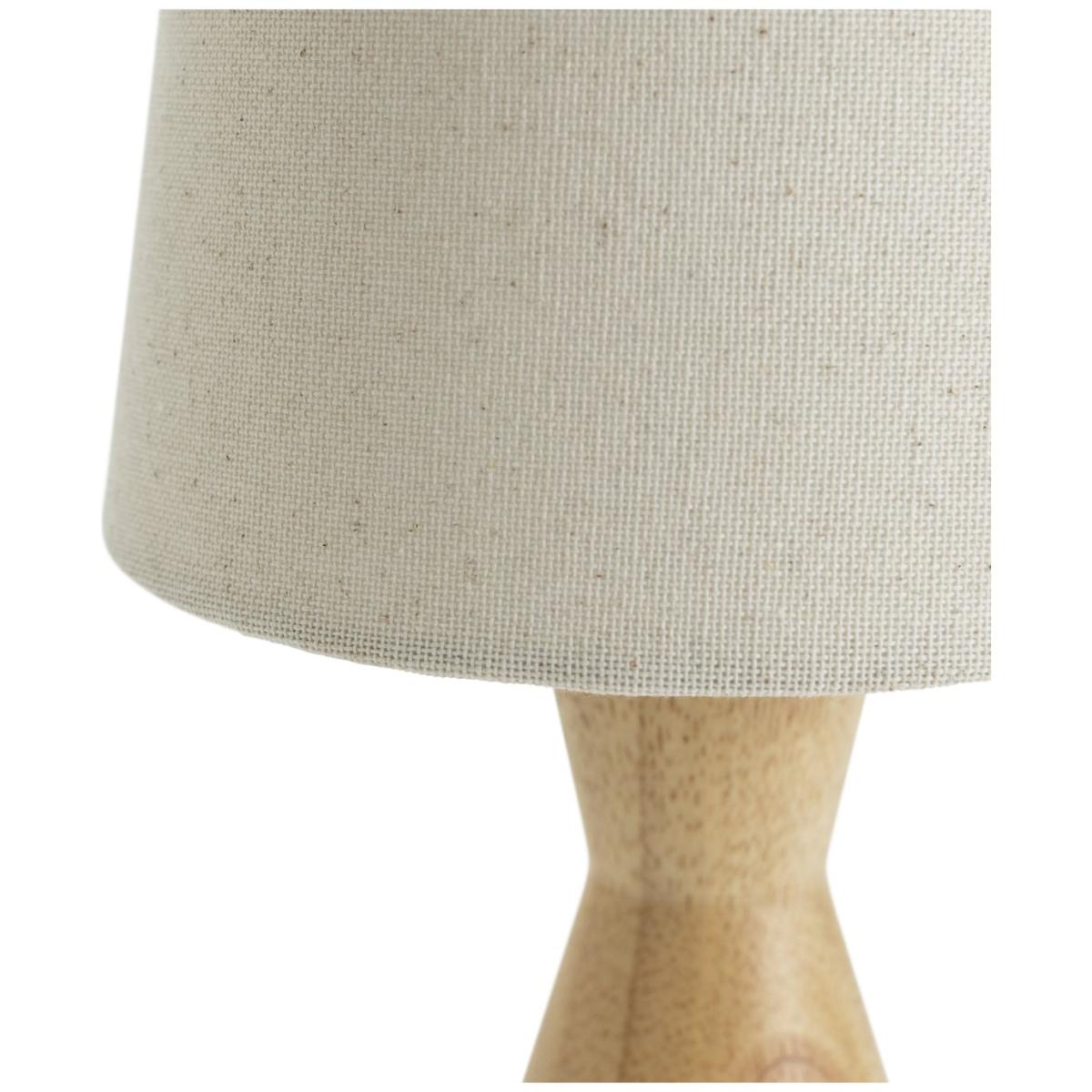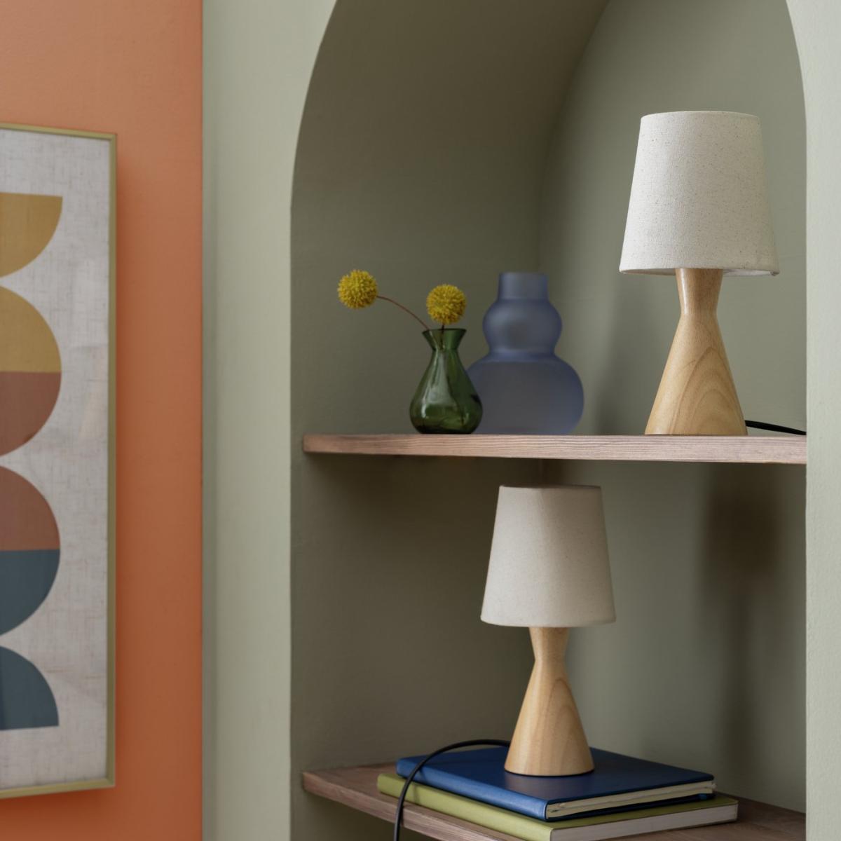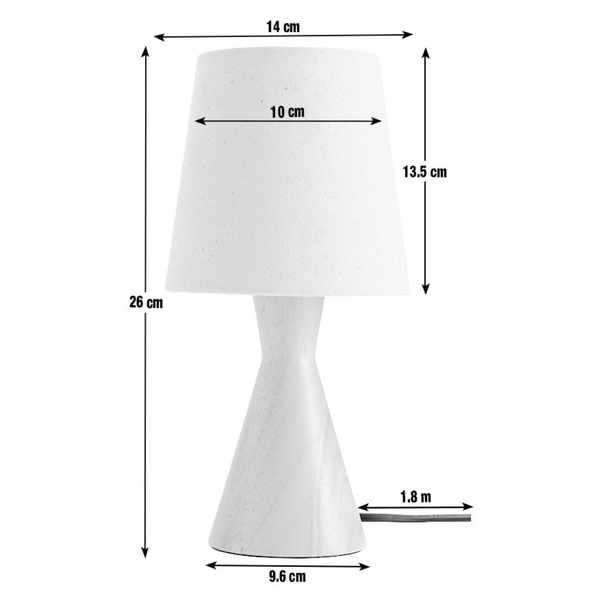 Modern sensibilities and natural charm come together in our smart pair of table lamps. White fabric shades perch atop contemporary rubber wood conical bases. Just the thing to bring balance and a light, ambient touch to your space. The inline switch means easy on, easy off. Dimensions: Overall size H26, Diameter 14cm. Shade size H13.5, D10cm. Diameter of base 9.6cm. Cord length 1.8m. Bulb Information: Bulbs required 2 x capsule G9 filament LED bulb(s) (not included). Recommended maximum wattage: 3 watts. LED bulb only. General Information: Shade colour: natural. Base colour: natural. Shade material: fabric. Base material: wood. In-line switch. IP rating 20 - not suitable for bathroom use. Supplied assembled. Product is mains powered plug in. This lighting product is a class 2 fitting. Modern Wood. Manufacturer's 1 year guarantee.