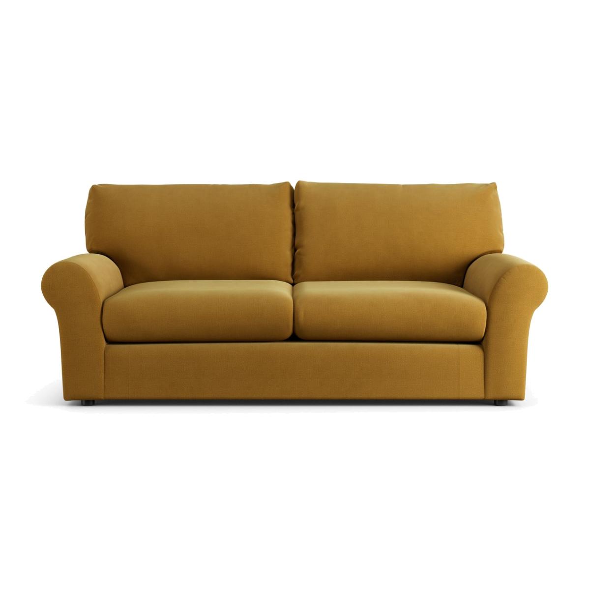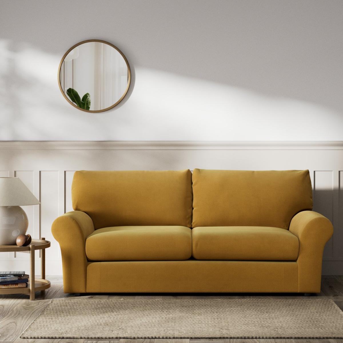 When it's made for you, you know you'll love it. For an amply proportioned 3-seater sofa in a style that's easy to live with, meet the Molton. It has the ageless appeal of wide scroll arms, high supportive backrest and plump cushioned seats. In a velvety sheen chenille, the Molton takes on a rich, soft, textured look. A welcoming family friendly sofa that will stand the test of time. Offering relaxed comfort, the Molton's cushions use high density foam core wrapped in softer foam layers to create the perfect balance of support, durability and recovery. Hand made to order in the UK, the Molton uses quality materials and traditional techniques for furniture that's unique to you. Available in a choice of sizes and fabrics including Aquaclean technology protection built into the yarn, which is easy to clean with just water. Part of the Molton collection. Material: Made from 100% polyester. Wooden feet - black. Medium firm seat cushions. Removable seats with foam filling. Removable cushion(s) with foam filling. Free fabric swatch available on this line. Dimensions: Size H92, W203, D98cm. Floor to seat height: 47cm. Depth of seat: 59cm. Height of seat back: 46cm. Width of seating area between arms: 152cm. Height of arm rest: 60cm. Weight: 49kg. Packaged dimensions: Package size H97, W208, D103cm. General information: FSC certified meaning the materials used for this product are responsibly sourced. We do more than deliver your product, we unpack, set it up and take away the packaging. Manufactured in the UK using components sourced globally. Professional clean only. Plump cushions regularly to maintain shape. Manufacturer's 15 year frame guarantee.