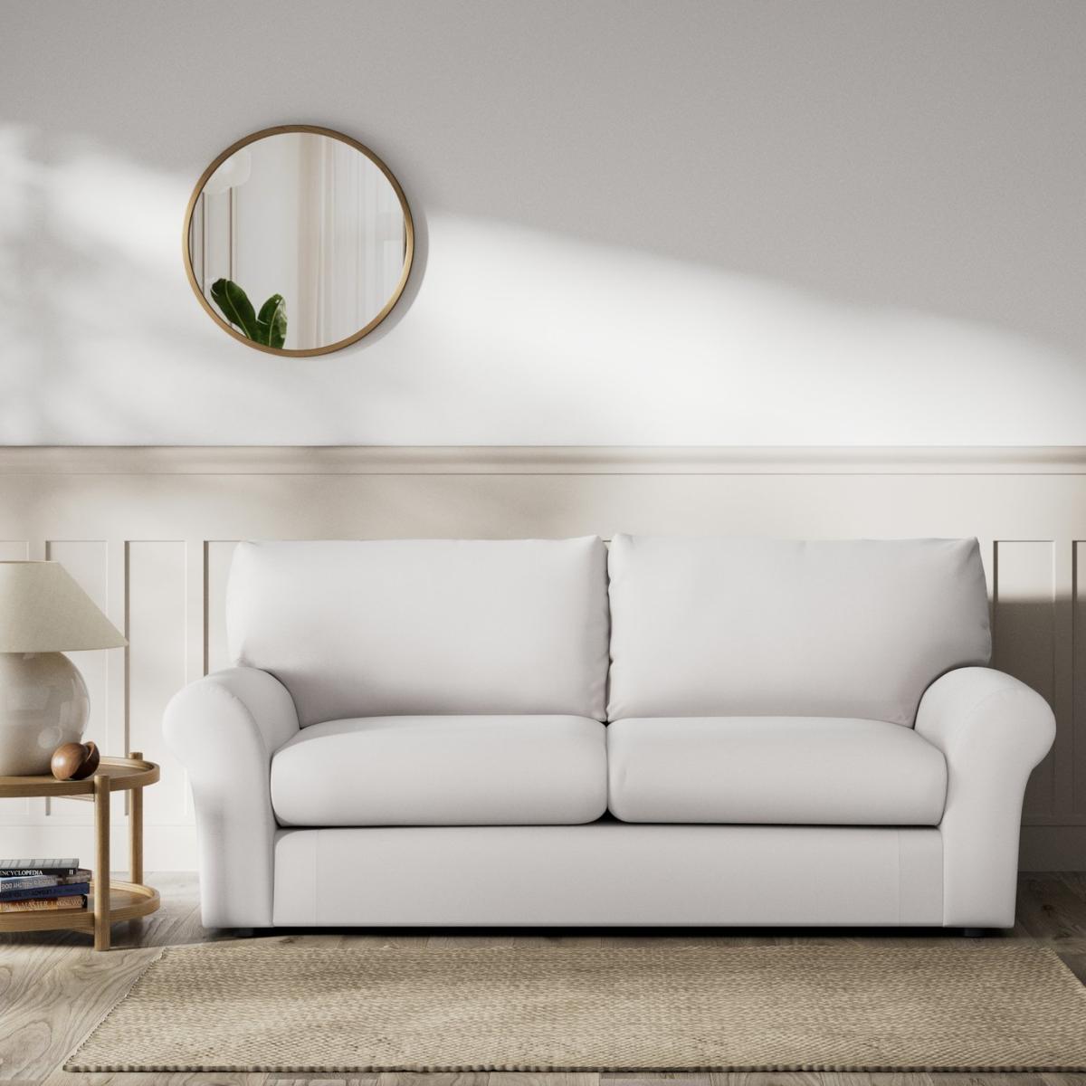 When it's made for you, you know you'll love it. For an amply proportioned 3-seater sofa in a style that's easy to live with, meet the Molton. It has the ageless appeal of wide scroll arms, high supportive backrest and plump cushioned seats. In Aquaclean chenille the Molton combines a soft feel with easy-clean durability. A welcoming family friendly sofa that will stand the test of time. Offering relaxed comfort, the Molton's cushions use high density foam core wrapped in softer foam layers to create the perfect balance of support, durability and recovery. Hand made to order in the UK, the Molton uses quality materials and traditional techniques for furniture that's unique to you. Available in a choice of sizes and fabrics including Aquaclean technology protection built into the yarn, which is easy to clean with just water. Part of the Molton collection. Material: Made from 100% polyester. Wooden feet - black. Medium firm seat cushions. Removable seats with foam filling. Removable cushion(s) with foam filling. Free fabric swatch available on this line. Dimensions: Size H92, W203, D98cm. Floor to seat height: 47cm. Depth of seat: 59cm. Height of seat back: 46cm. Width of seating area between arms: 152cm. Height of arm rest: 60cm. Weight: 49kg. Packaged dimensions: Package size H97, W208, D103cm. General information: FSC certified meaning the materials used for this product are responsibly sourced. We do more than deliver your product, we unpack, set it up and take away the packaging. Manufactured in the UK using components sourced globally. Professional clean only. Plump cushions regularly to maintain shape. Manufacturer's 15 year frame guarantee.