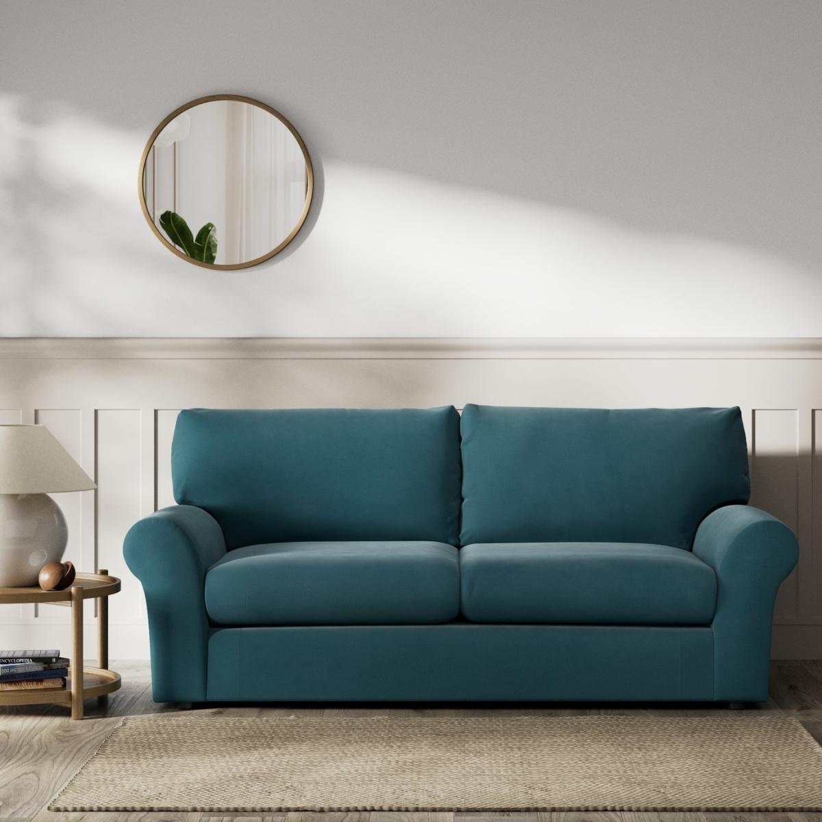 When it's made for you, you know you'll love it. For an amply proportioned 3-seater sofa in a style that's easy to live with, meet the Molton. It has the ageless appeal of wide scroll arms, high supportive backrest and plump cushioned seats. In a velvety sheen chenille, the Molton takes on a rich, soft, textured look. A welcoming family friendly sofa that will stand the test of time. Offering relaxed comfort, the Molton's cushions use high density foam core wrapped in softer foam layers to create the perfect balance of support, durability and recovery. Hand made to order in the UK, the Molton uses quality materials and traditional techniques for furniture that's unique to you. Available in a choice of sizes and fabrics including Aquaclean technology protection built into the yarn, which is easy to clean with just water. Part of the Molton collection. Material: Made from 100% polyester. Wooden feet - black. Medium firm seat cushions. Removable seats with foam filling. Removable cushion(s) with foam filling. Free fabric swatch available on this line. Dimensions: Size H92, W203, D98cm. Floor to seat height: 47cm. Depth of seat: 59cm. Height of seat back: 46cm. Width of seating area between arms: 152cm. Height of arm rest: 60cm. Weight: 49kg. Packaged dimensions: Package size H97, W208, D103cm. General information: FSC certified meaning the materials used for this product are responsibly sourced. We do more than deliver your product, we unpack, set it up and take away the packaging. Manufactured in the UK using components sourced globally. Professional clean only. Plump cushions regularly to maintain shape. Manufacturer's 15 year frame guarantee.