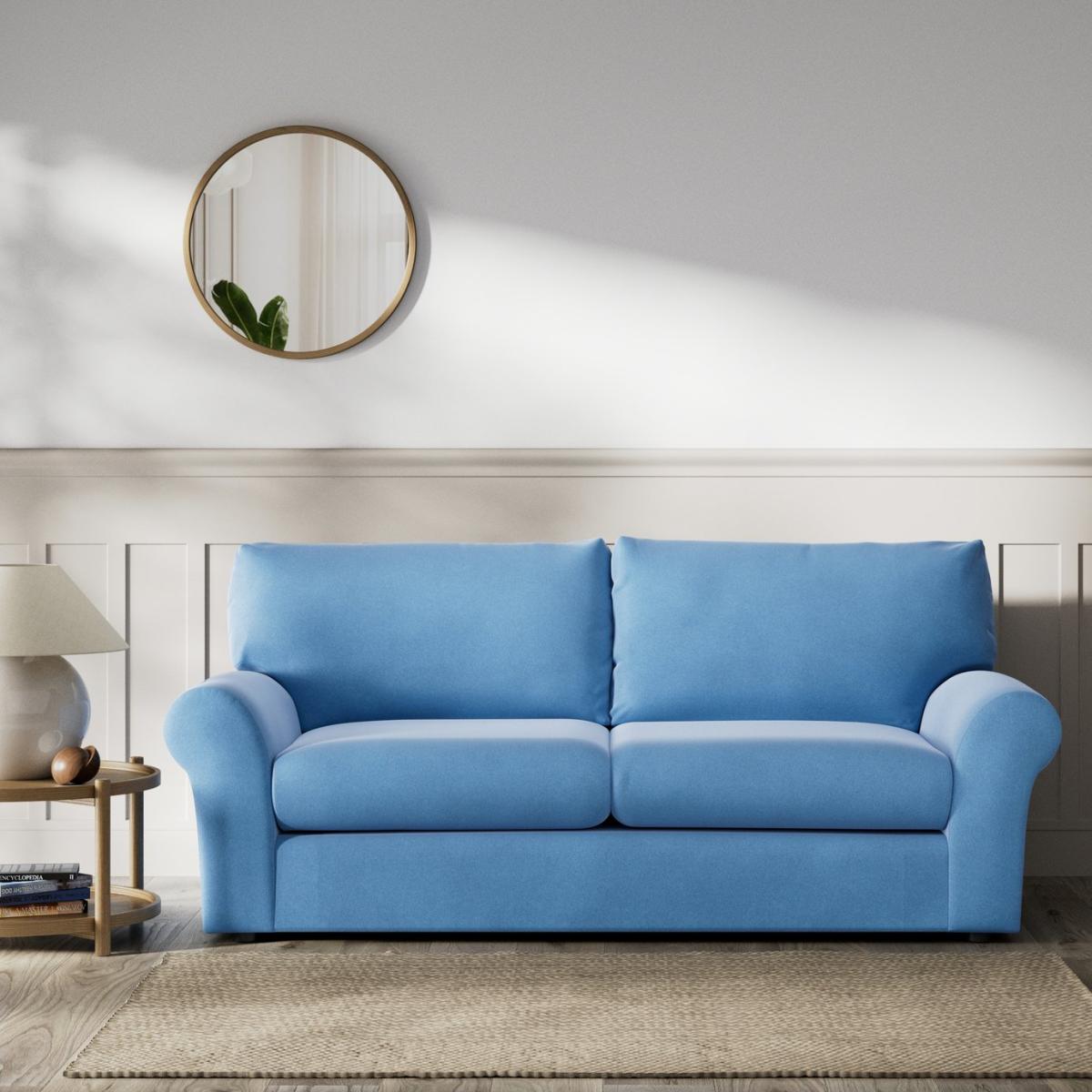 When it's made for you, you know you'll love it. For an amply proportioned 3-seater sofa in a style that's easy to live with, meet the Molton. It has the ageless appeal of wide scroll arms, high supportive backrest and plump cushioned seats. Upholstered in rich velvet, it has a luxe look. A welcoming family friendly sofa that will stand the test of time. Offering relaxed comfort, the Molton's cushions use high density foam core wrapped in softer foam layers to create the perfect balance of support, durability and recovery. Hand made to order in the UK, the Molton uses quality materials and traditional techniques for furniture that's unique to you. Available in a choice of sizes and fabrics including Aquaclean technology protection built into the yarn, which is easy to clean with just water. Part of the Molton collection. Material: Made from 100% recycled polyester. Wooden feet - black. Medium firm seat cushions. Removable seats with foam filling. Removable cushion(s) with foam filling. Free fabric swatch available on this line. Dimensions: Size H92, W203, D98cm. Floor to seat height: 47cm. Depth of seat: 59cm. Height of seat back: 46cm. Width of seating area between arms: 152cm. Height of arm rest: 60cm. Weight: 49kg. Packaged dimensions: Package size H97, W208, D103cm. General information: FSC certified meaning the materials used for this product are responsibly sourced. We do more than deliver your product, we unpack, set it up and take away the packaging. Manufactured in the UK using components sourced globally. Professional clean only. Plump cushions regularly to maintain shape. Manufacturer's 15 year frame guarantee.