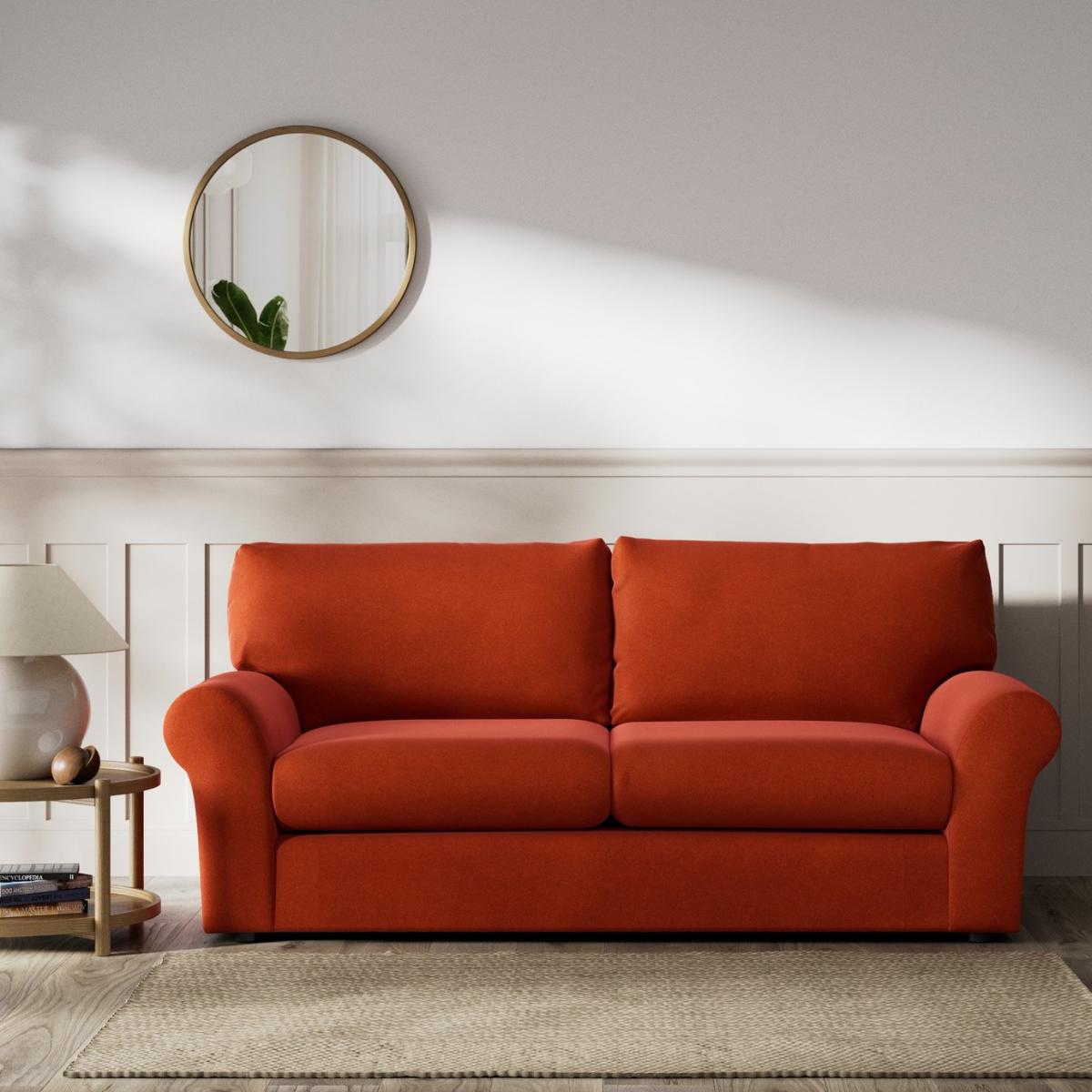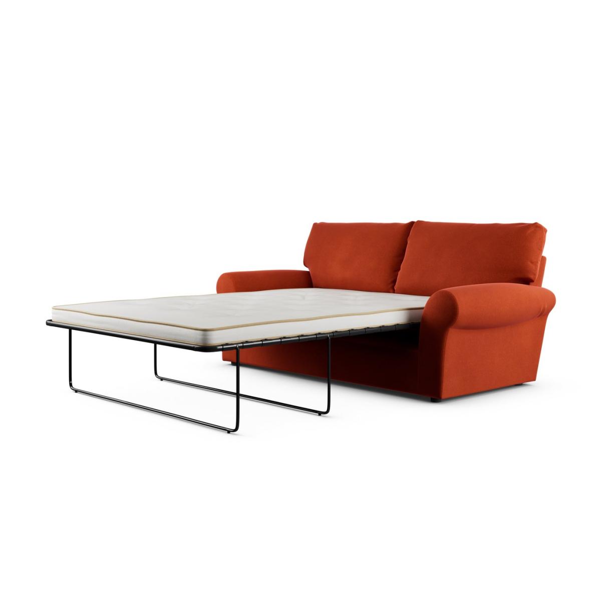 When it's made for you, you know you'll love it. For an amply proportioned sota bed in a style that's easy to live with, meet the Molton. It has the ageless appeal of wide scroll arms, high supportive backrest and plump cushioned seats. And having a proper bed quality mattress means Molton is designed for regular use. Upholstered in rich velvet, it has a luxe look. A welcoming, comfortable family friendly sofa bed that will stand the test of time. Part of the Molton collection. Material: Made from 100% recycled polyester. Wooden feet. Removable seats with foam filling. Removable cushion(s) with foam filling. Free fabric swatch available on this line. Dimensions: Size H92, W203, D98cm (Depth as bed 183cm). Size of sleeping area W133, L183cm. Mattress depth: 10cm. Floor to seat height: 49cm. Depth of seat: 59cm. Height of seat back: 46cm. Width of seating area between arms: 152cm. Height of arm rest: 60cm. Weight: 69kg. Packaged dimensions: Package size H97, W208, D103cm. General information: FSC certified meaning the materials used for this product are responsibly sourced. We do more than deliver your product, we unpack, set it up and take away the packaging. Manufactured in the UK using components sourced globally. Professional clean only. Plump cushions regularly to maintain shape. Manufacturer's 2 year frame guarantee.