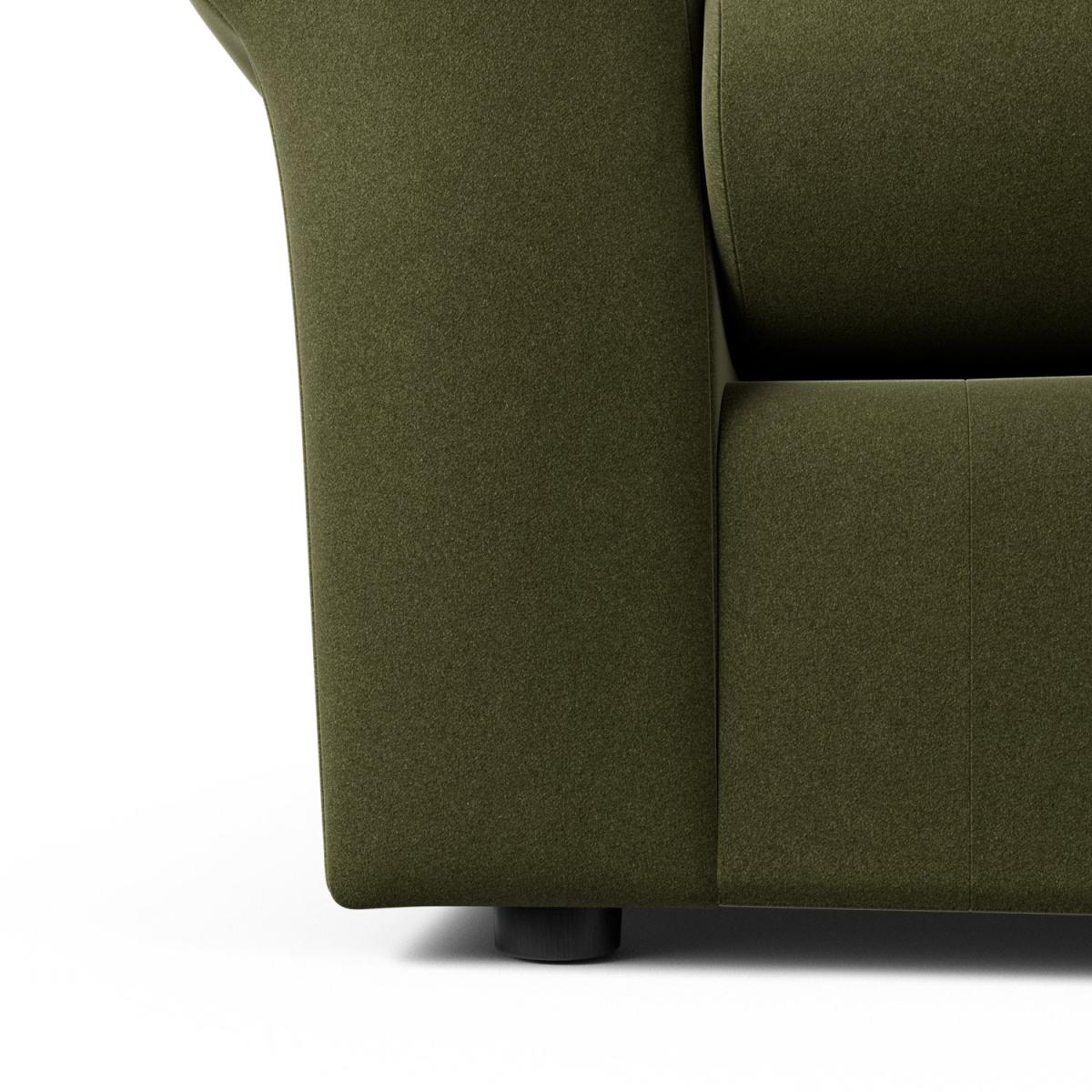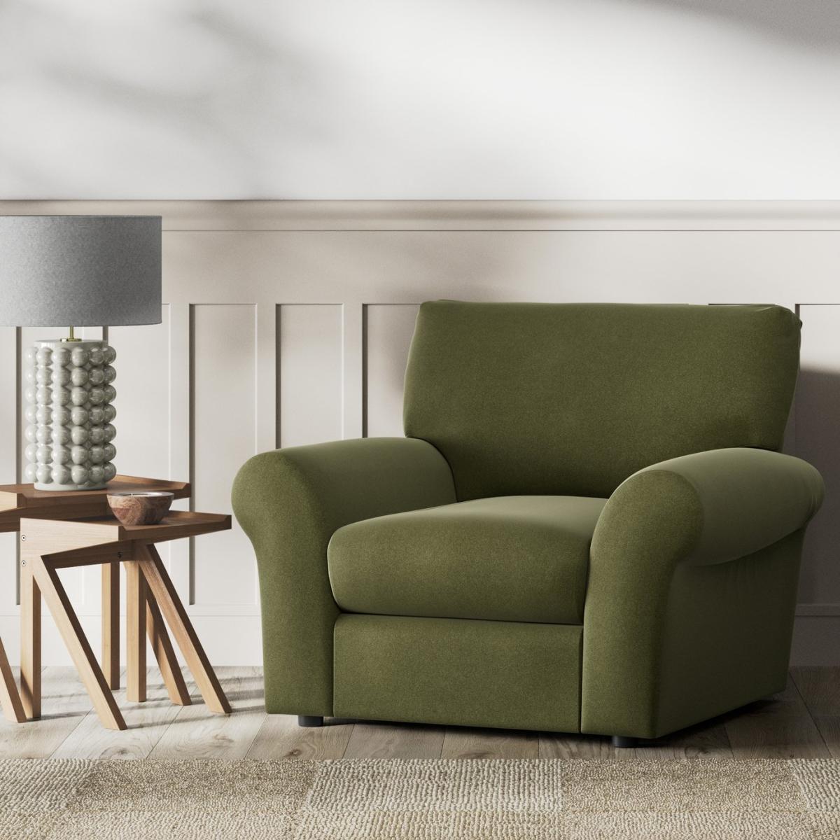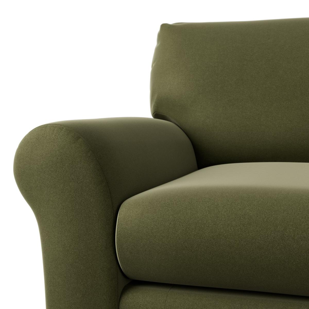 When it's made for you, you know you'll love it. For an amply proportioned armchair in a style that's easy to live with, meet the Molton. It has the ageless appeal of wide scroll arms, a high supportive backrest and a plump cushioned seat. Upholstered In a rich velvet, the Molton takes on a luxe look. A welcoming armchair that will stand the test of time. Offering relaxed comfort, the Moltons cushions use high density foam core wrapped in softer foam layers to create the perfect balance of support, durability and recovery. Hand made to order in the UK, the Molton uses quality materials and traditional techniques for furniture thats unique to you. Available in a choice of sizes and fabrics including Aquaclean technology protection built into the yarn, which is easy to clean with just water. Part of the Molton collection. Material: Made from 100% recycled polyester. Wooden feet. Removable seat with foam filling. Removable cushion(s) with foam filling. Dimensions: Size H92, W106, D98cm. Floor to seat height: 47cm. Depth of seat: 59cm. Height of seat back: 46cm. Width of seating area between arms: 55cm. Height of arm rest: 60cm. Weight: 31kg. Packaged dimensions: Package size H97, W111, D103cm. General information: FSC certified meaning the materials used for this product are responsibly sourced. We do more than deliver your product, we unpack, set it up and take away the packaging. Manufactured in the UK using components sourced globally. Professional clean only. Plump cushions regularly to maintain shape. Manufacturer's 15 year frame guarantee.