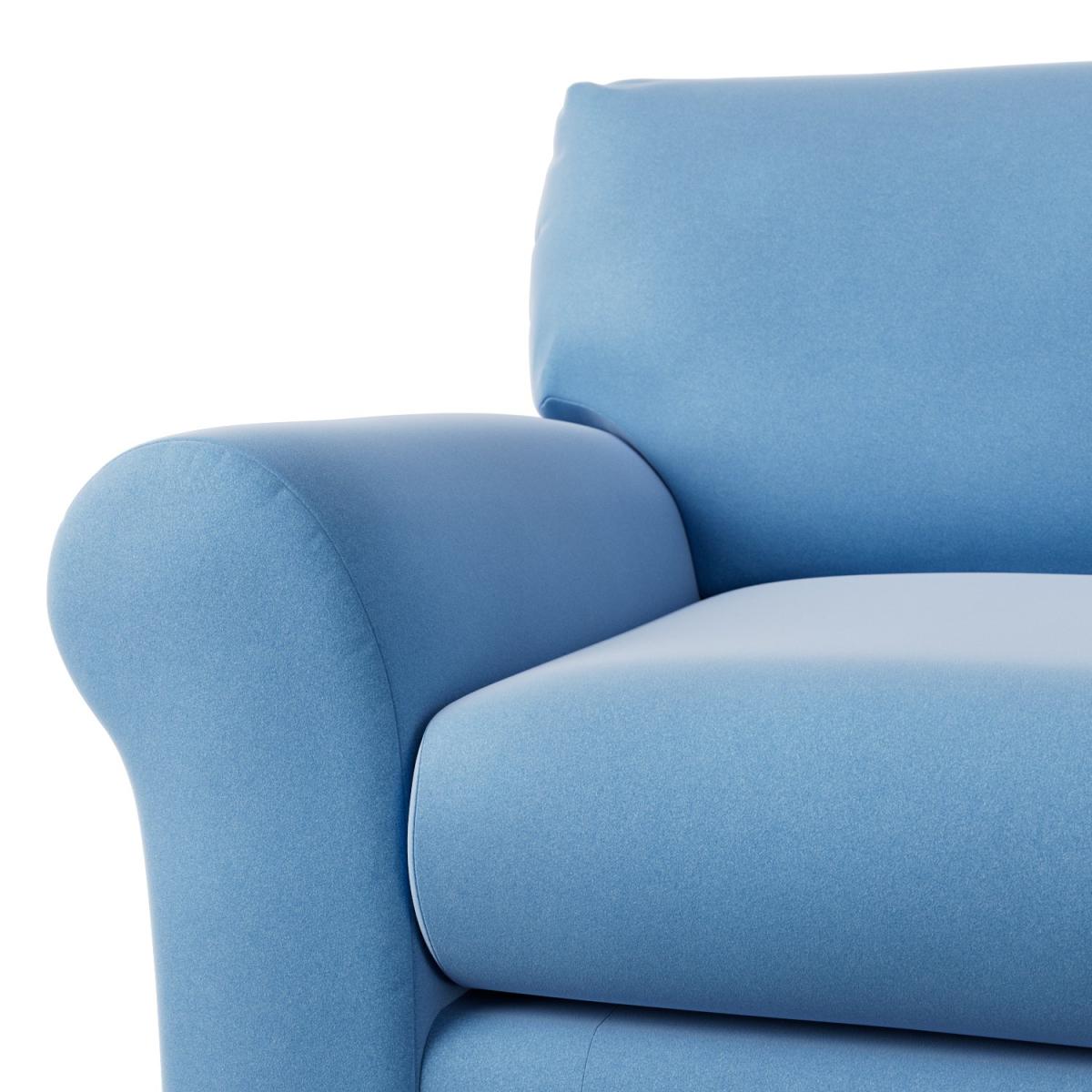 When it's made for you, you know you'll love it. For an amply proportioned armchair in a style that's easy to live with, meet the Molton. It has the ageless appeal of wide scroll arms, a high supportive backrest and a plump cushioned seat. Upholstered In a rich velvet, the Molton takes on a luxe look. A welcoming armchair that will stand the test of time. Offering relaxed comfort, the Moltons cushions use high density foam core wrapped in softer foam layers to create the perfect balance of support, durability and recovery. Hand made to order in the UK, the Molton uses quality materials and traditional techniques for furniture thats unique to you. Available in a choice of sizes and fabrics including Aquaclean technology protection built into the yarn, which is easy to clean with just water. Part of the Molton collection. Material: Made from 100% recycled polyester. Wooden feet. Removable seat with foam filling. Removable cushion(s) with foam filling. Dimensions: Size H92, W106, D98cm. Floor to seat height: 47cm. Depth of seat: 59cm. Height of seat back: 46cm. Width of seating area between arms: 55cm. Height of arm rest: 60cm. Weight: 31kg. Packaged dimensions: Package size H97, W111, D103cm. General information: FSC certified meaning the materials used for this product are responsibly sourced. We do more than deliver your product, we unpack, set it up and take away the packaging. Manufactured in the UK using components sourced globally. Professional clean only. Plump cushions regularly to maintain shape. Manufacturer's 15 year frame guarantee.
