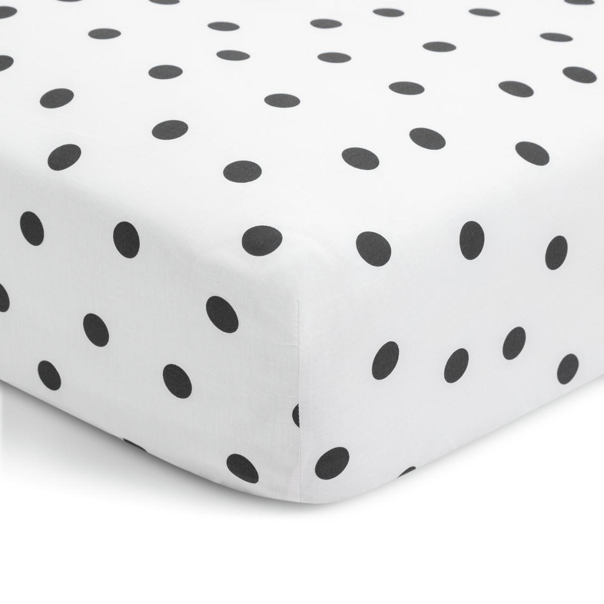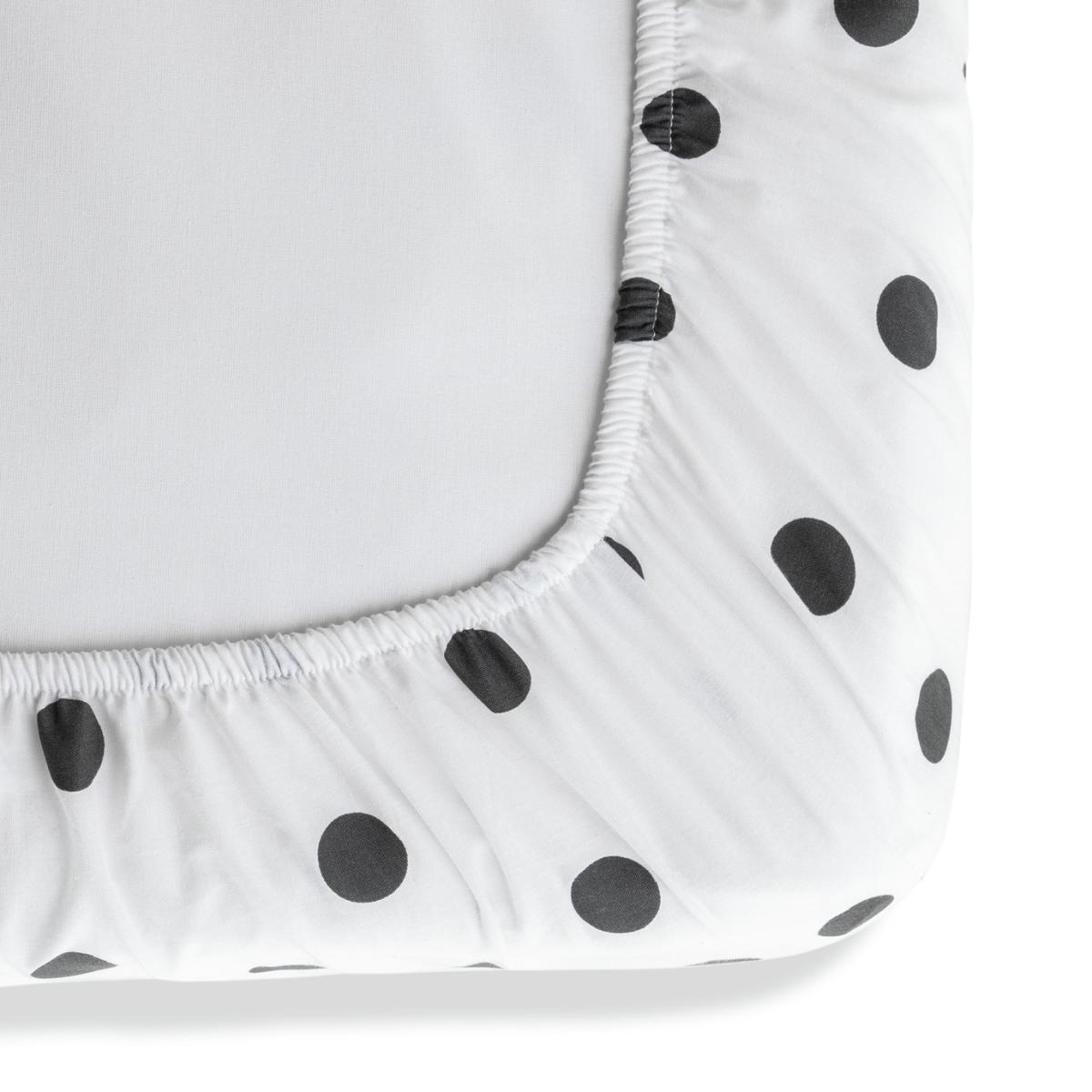 Smart bedding. You'll love how easy our fitted sheet transforms your bed. Just stretch over your mattress, pop the elasticated corners on and voila. It'll stay put and crease-free. And it's a looker too, with its fresh spotted print. This item carries the STANDARD 100 by OEKO-TEX logo, which means you can be certain that every component has been tested for harmful substances and is therefore harmless to human health. Fabric finish: percale. 50% recycled polyester, 50% cotton. 144 thread count. King size. Size L200, W150cm. Suitable for mattress depth of 28cm. Depth of frill 28cm. Elasticated corners. Machine washable.
