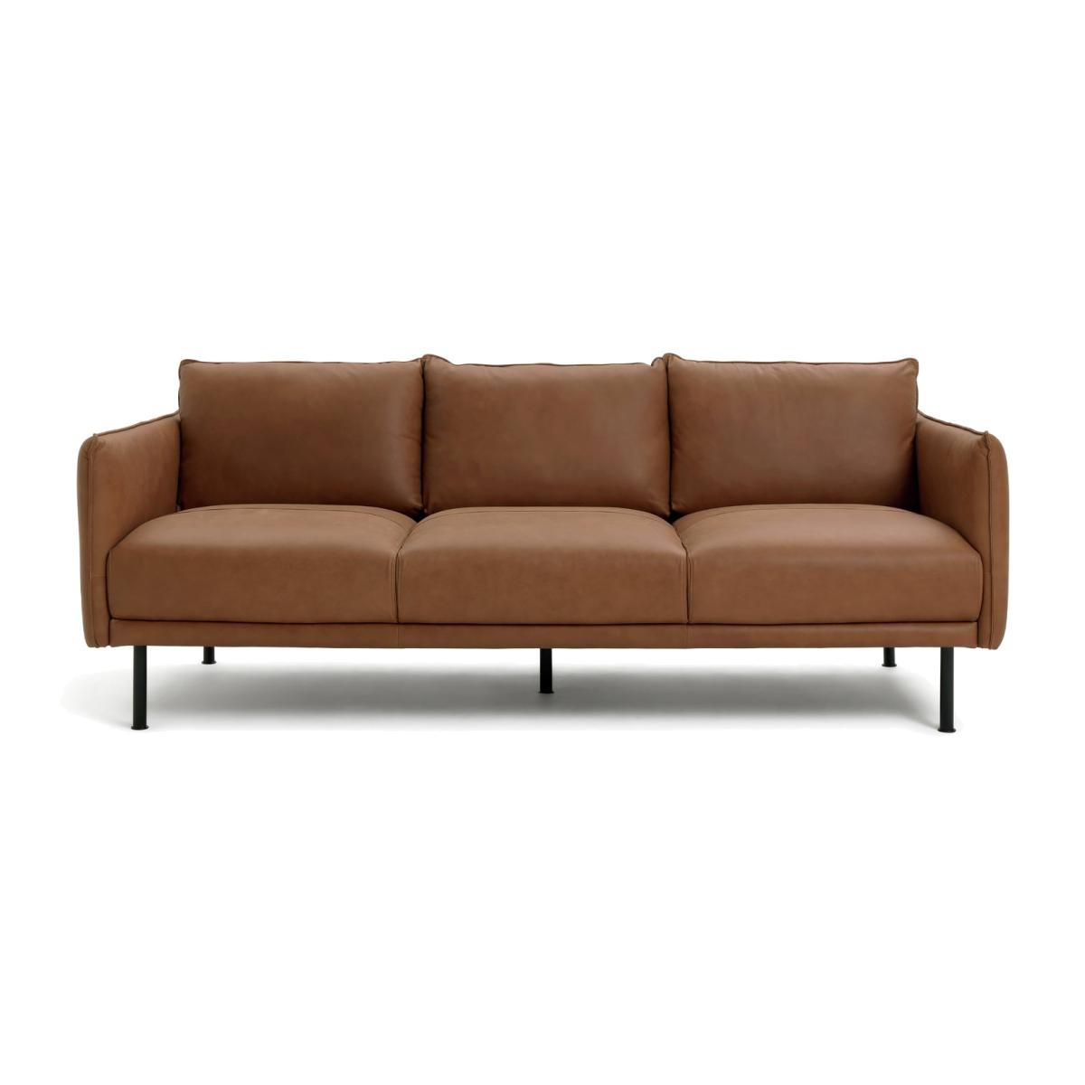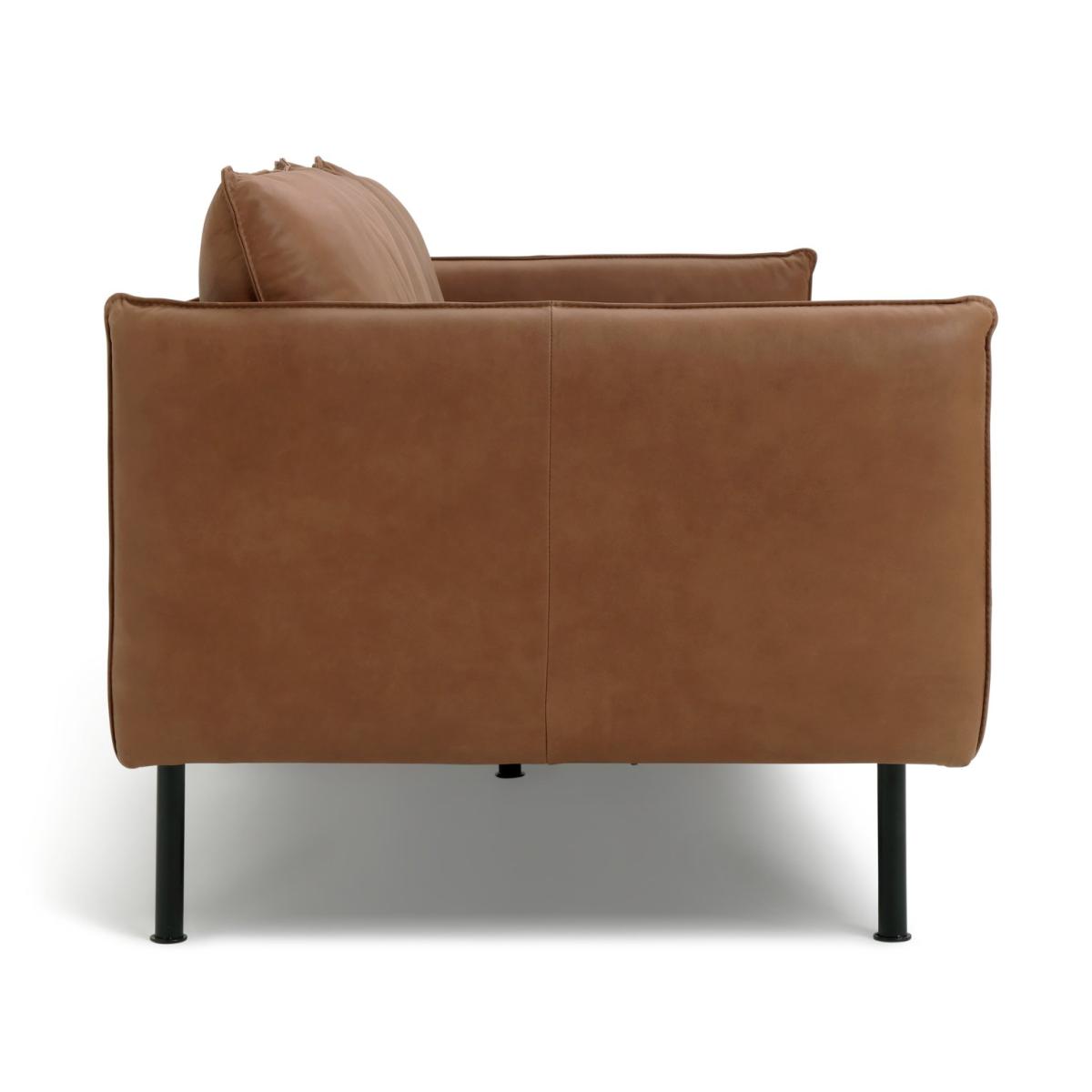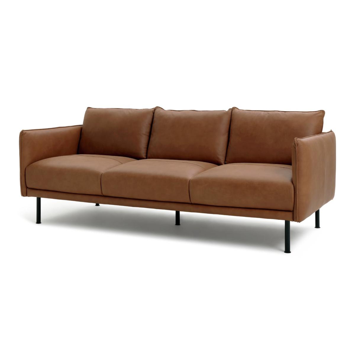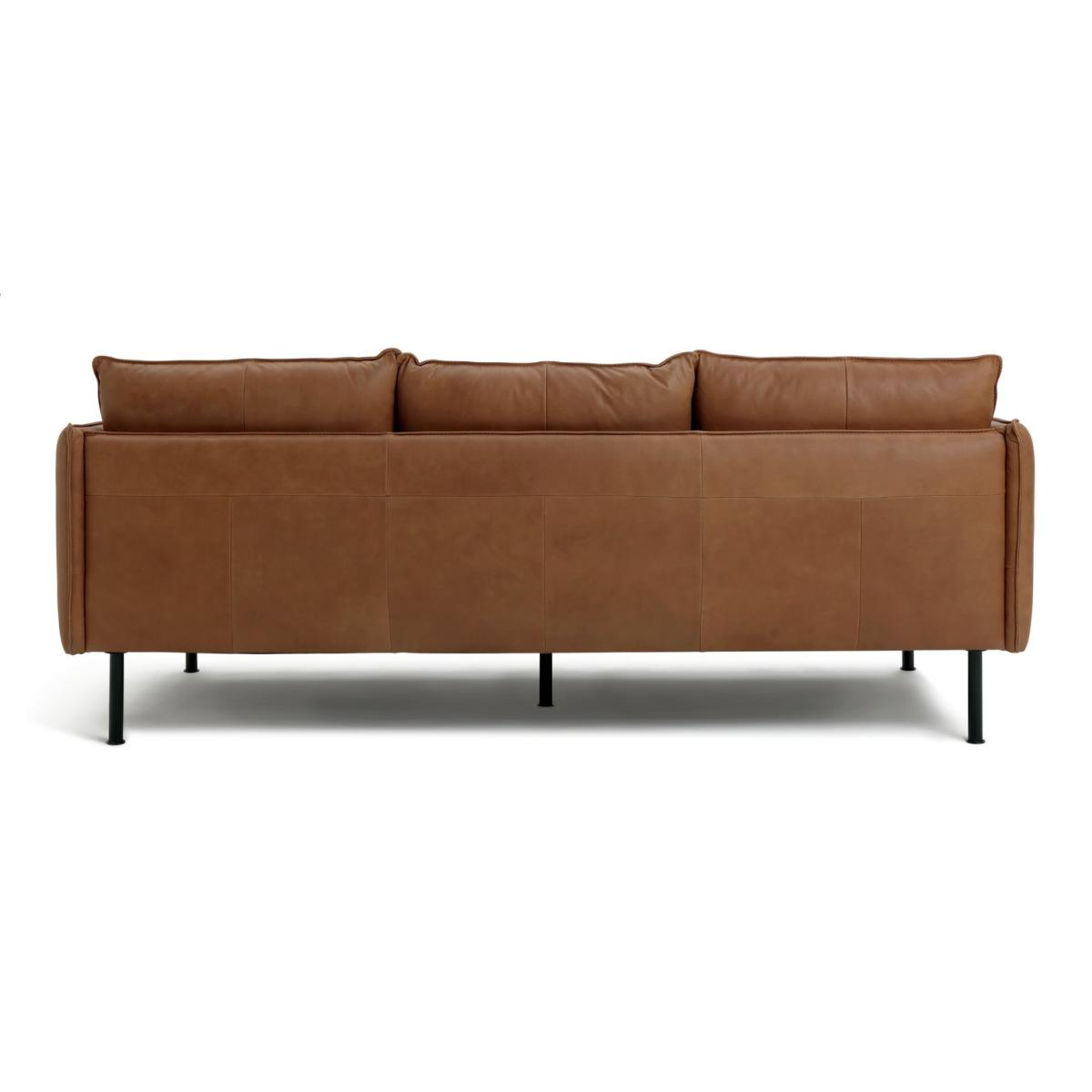 Big on comfort and style. Handcrafted from 100% genuine aniline leather, our Moore 4-seater tan sofa displays a minimal, contemporary silhouette. Deep comfy removable cushions, plump fixed seating and stitched detailing all add to the high-end design. Slim metal legs complete the picture. A perfect place to sit back and relax. Moore please. Raw and real. Over time the waxed aniline leather will take on its own individual characteristics enhancing the grain and patina. Which means no two pieces will ever look the same. Part of the Moore collection. Material: Made from 100% aniline leather. Metal feet. Fixed seats with foam fibre wrap filling. Removable cushion(s) with fibre filling. Dimensions: Size H79, W210, D92cm. Floor to seat height: 48cm. Depth of seat: 61cm. Height of seat back: 41cm. Width of seating area between arms: 192cm. Height of arm rest: 68cm. Weight 54.8kg. Professional clean only. Plump cushions regularly to maintain shape. Minimal assembly - just add feet. Maximum individual user weight 110kg. Packaged dimensions: Package size H50, W214, D94cm. FSC certified meaning the materials used for this product are responsibly sourced. General information: We are excited to be welcoming some of our favourite HOME products into the Habitat range. Your product may arrive in Habitat or HOME packaging. Manufacturer's 10 year frame guarantee.
