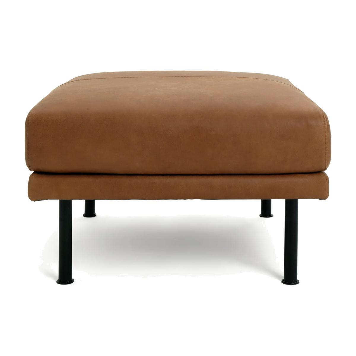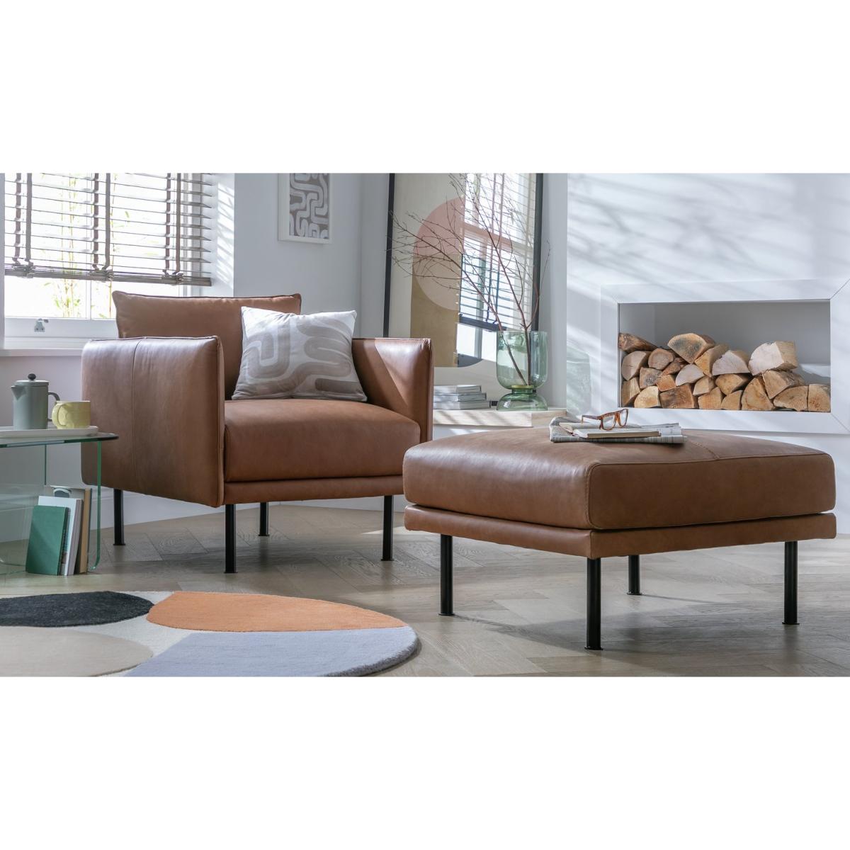 Big on comfort and style. Handcrafted from Italian leather, our Moore tan footstool displays a minimal, contemporary silhouette. The deep plump cushion is so inviting. Ideal for putting your feet up and relaxing. With its slim metal legs, it also makes a good extra perching spot. Moore please.