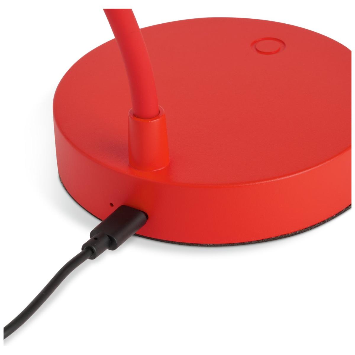 Rechargeable and ready to roam, this flexible red touch desk lamp will shine a bright LED light exactly where you need it. With 3 brightness settings, and a fully portable design, you'll get 6-8 hours of light from a full charge. The long pliable neck can be bent and shaped so that the head can be angled this way and that. Reading, working, puzzling, gaming or crafting, this smart little lamp makes light work of any activity, wherever you are. Dimensions: Overall size H29, W23, D11 cm. Diameter 23cm. Shade size H1, D9cm. Diameter of base 11cm. Cord length 1m. Bulb Information: Integrated LED bulb(s)(included). LED bulb only. Colour rendering index 80. Colour temperature 3000. K. Rated luminous flux 120. General Information: Shade colour: red. Base colour: red. Shade material: plastic. Base material: plastic. Product features: USB connectivity. Switch on product base. IP rating 20not suitable for bathroom use. Fully assembled. This lighting product is a class 3 fitting. Part of the Rechargeable collection. Manufacturer's 2 year guarantee.