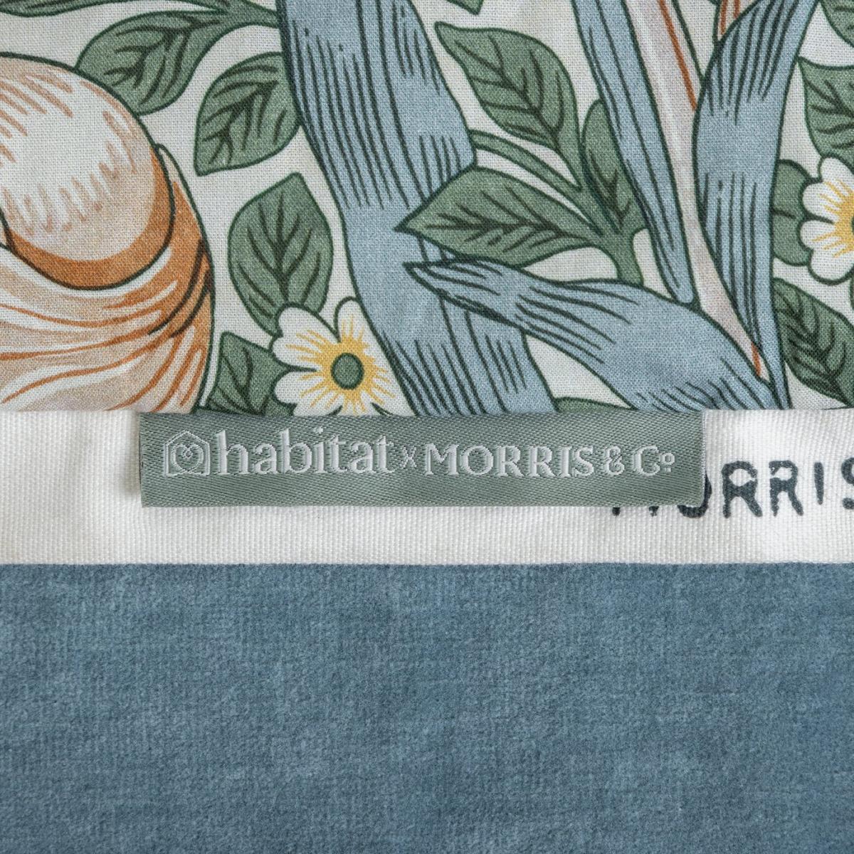 A richly indulgent throw from Habitat x Morris & Co. Printed onto pure cotton, in soothing shades of blue and sepia, this William Morris design features tiny pimpernel flowers nestled among flowing leaves and large-scale blooms. With a reverse opulently covered in thick sumptuous velvet. This substantial throw is finished with a woven edge carrying the recognised logo of Morris & Co. Habitat x Morris & Co. A celebration of British design heritage with a fresh take on the iconic prints of William Morris. Authentically timeless pieces designed for the future. Part of the Habitat x Morris & Co. Collection. 100% cotton. Size L200, W150cm. Machine washable. Suitable for tumble drying.