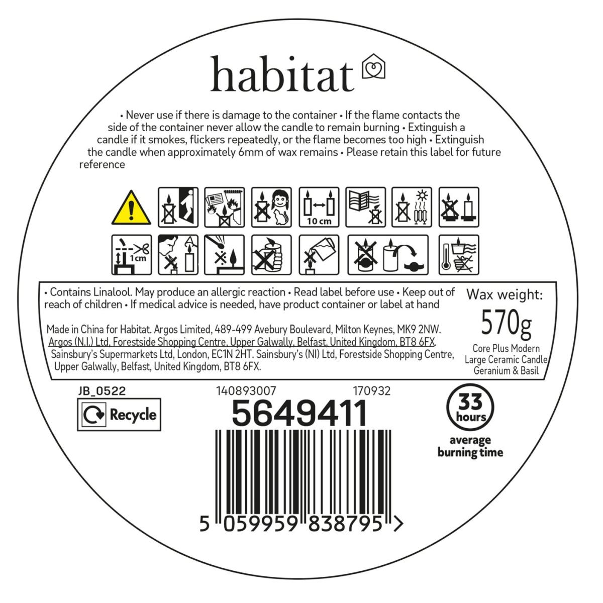 Habitat Multi Wick Large Ceramic Candle - Geranium & Basil