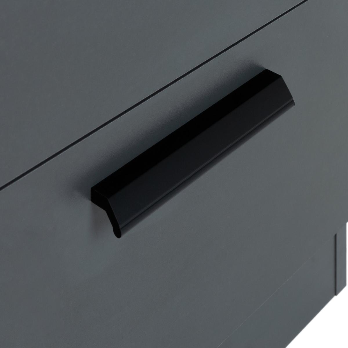 I love this little bedside table for its clean, modern lines and versatile anthracite finish, which really works well in both contemporary and industrial-inspired interiors. Its compact size makes it a practical choice for smaller bedrooms or spaces where storage is limited. To style it effectively, consider pairing it with textured bedding and minimalist lighting for a streamlined look, or add a small decorative tray and a book or plant to personalise the surface. Its neutral tone allows it to blend seamlessly with a range of colour schemes, making it a flexible addition to most bedroom schemes.