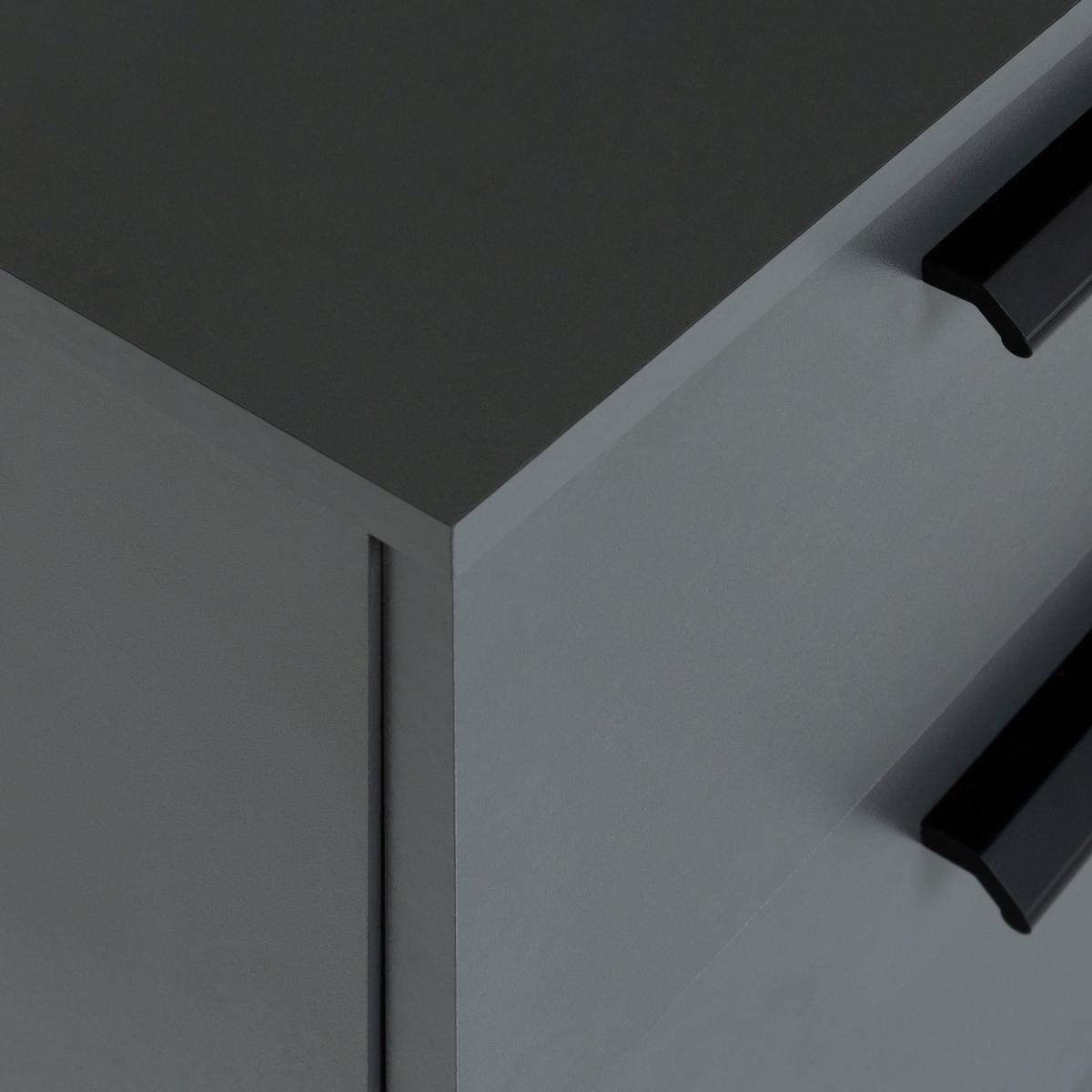 Bedside bliss. Bring a contemporary feel to your bedroom with our 2-drawer wooden bedside table. Painted in cool grey tones with a beautiful oak effect. The smart, easy-grip black handles offer a modern, industrial touch. Pop your phone, watch and books inside the spacious, smooth-opening drawers. Add a simple bedside lamp for a cosy glow. Double bed? Add one each side, they're rather pretty as a pair. Eco-friendly too.