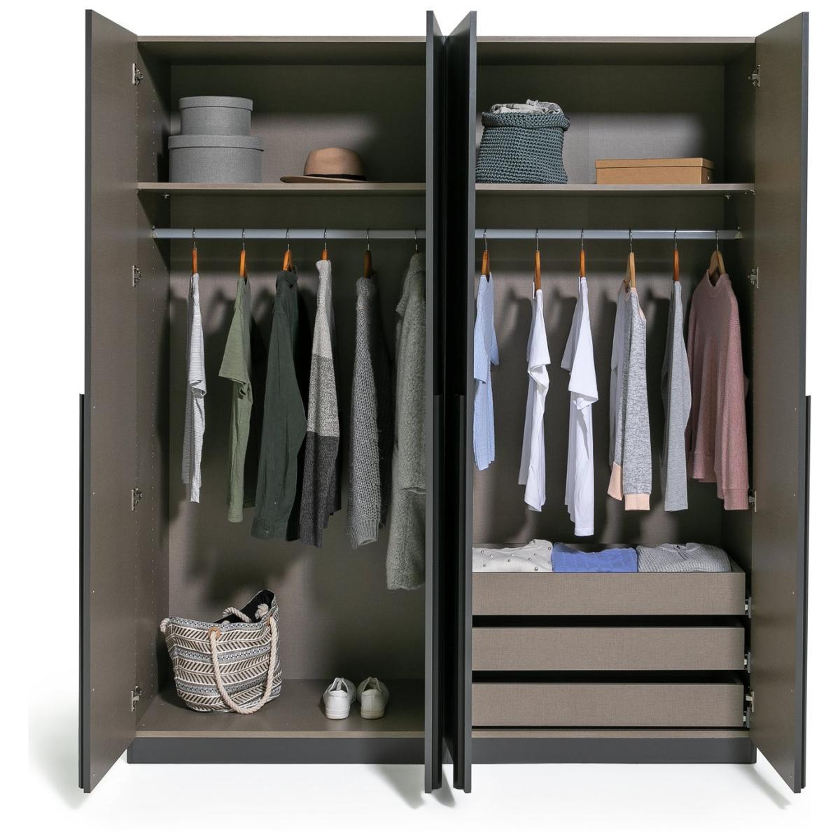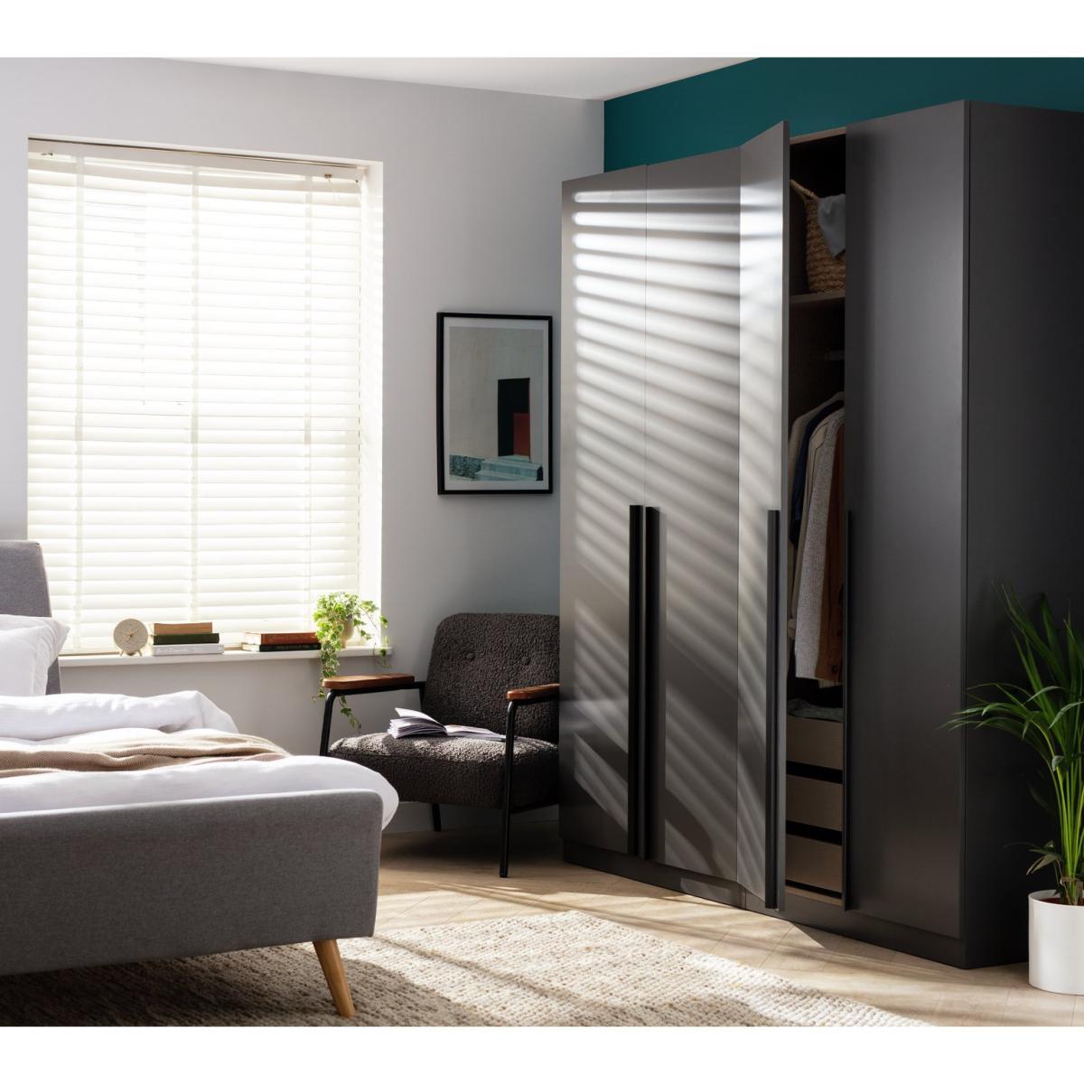 I love this wardrobe because of its sleek anthracite finish, which makes it a versatile piece that works well in both modern and minimalist interiors. Its clean lines and understated design allow it to blend seamlessly with various colour schemes and textures, from soft pastels to industrial themes. Practical styling tips include pairing it with natural wood or metal accessories to add warmth and interest, and using the 3 drawers for organising smaller items like accessories or underwear. It’s a smart, functional choice that keeps spaces looking tidy without sacrificing style.