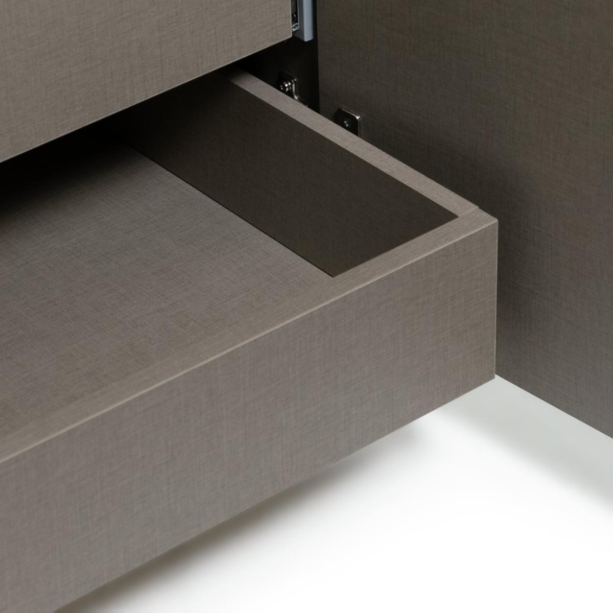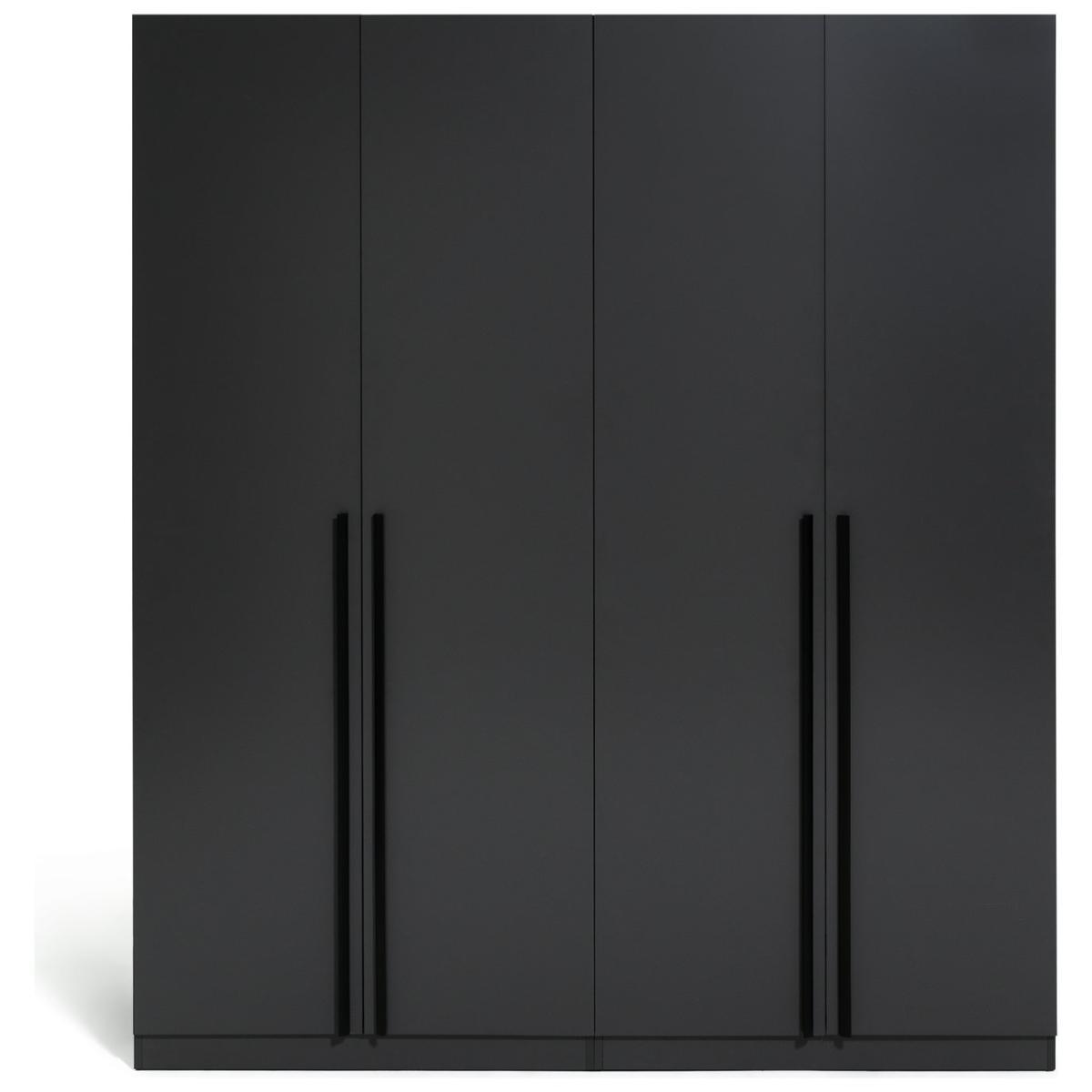 Clear the way for some smooth storage. Our contemporary 4-door grey wardrobe is one smart way to store your clothes. Stow shirts, skirts and trousers on 4 hanging rails. Tuck shoes and bags on the 2 adjustable shelves and pop your foldables in the 3 spacious drawers. A central divide means it's great for sharing, too. Slim black handles add the finishing touch to this modern wardrobe's good looks. Outfits, officially organised? Oh yes.