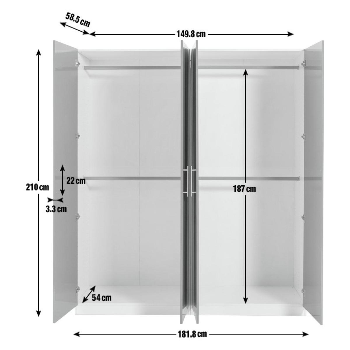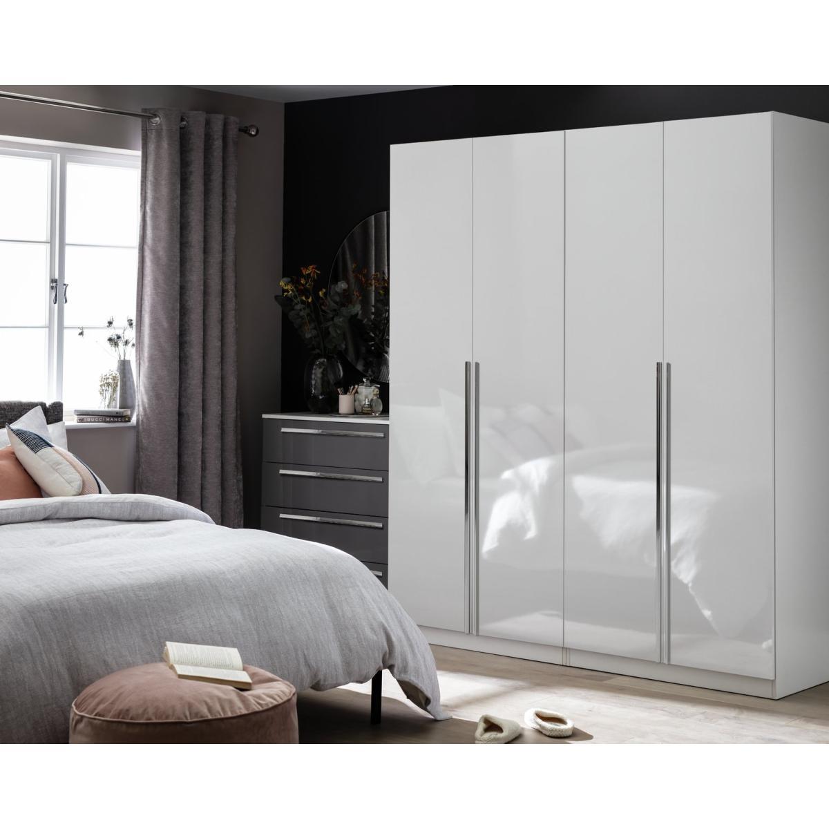 Your style is unique, so your wardrobe should be too. The Munich wardrobe range is all about mixing and matching. At over 2 metres tall, the Munich 4-door wardrobe maximises the space available in your bedroom and provides ample room for clothing, accessories and more. In a stylish white, it comes with 2 large adjustable shelves and 4 hanging rails that can be positioned to suit your needs. Assembly is straightforward and can be achieved by two people. Munich is simple, sophisticated storage at its best.