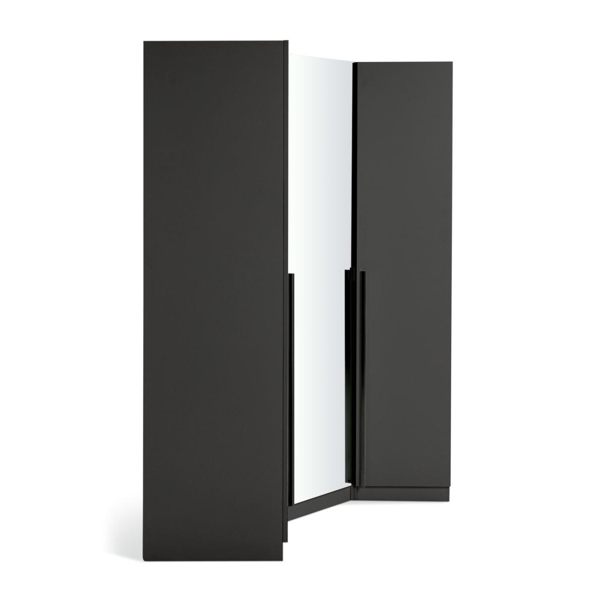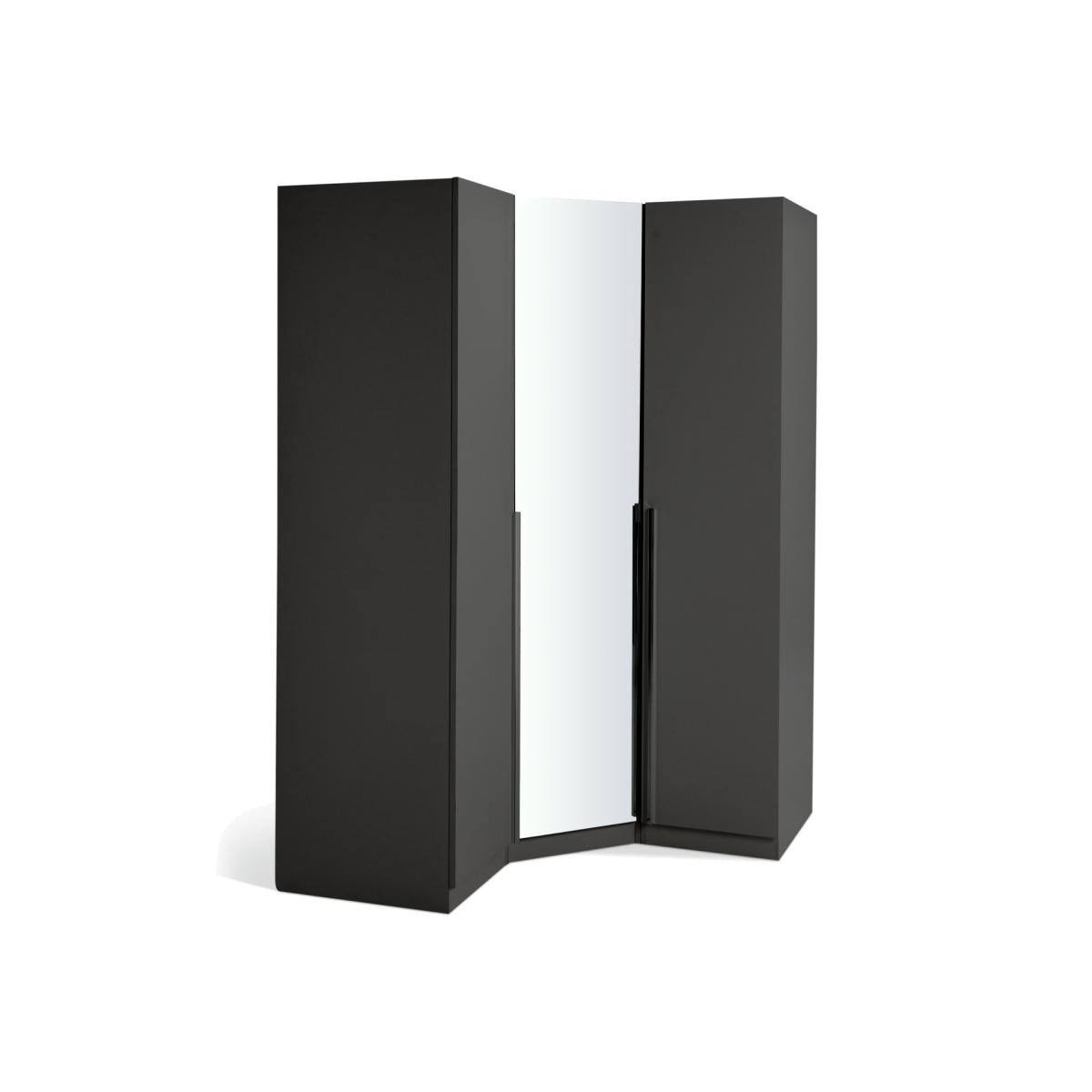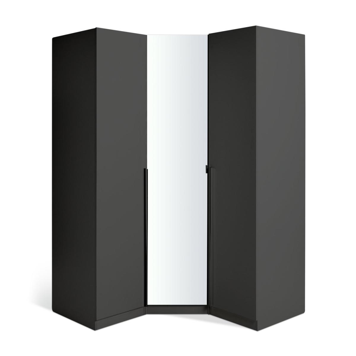 What we love about Munich is how you can make it your own. Take this clever mirrored corner wardrobe. Behind the 3 doors and smart grey facade are plenty of adjustable shelves and hanging rails. And at 2m high, Munich is big on space but small on footprint. Everything a modern wardrobe should be. Want to customise your wardrobe? There's a whole load of optional extras. Like shoe racks, wire baskets, alternative handles, even LED lights. Part of the Munich collection. Made of wood effect. Plastic handles. 3 doors. 1 mirror. 3 adjustable hanging rails. Hanging rail holds up to 15kg. 3 adjustable shelves. Self-assembly - 2 people recommended (includes wall fixings). If this product is over 60cm high it must be securely attached to the wall to prevent overturning. Dimensions: Size H210.5, W182.2, D91.1cm. Internal hanging space H190, W87.5, D55.5cm. Handle size: L103, W0.8cm. Weight 182kg. Package Dimensions: Package 1 dimensions: H99.3, W91.1, D210.5cm. Package 1 weight: 86.5kg. Package 2 dimensions: H213.8, W48, D5.3cm. Package 2 weight: 19.2kg. Package 3 dimensions: H221.4, W59.7, D5.58cm. Package 3 weight: 37.8kg. FSC certified meaning the materials used for this product are responsibly sourced. General information: We are excited to be welcoming some of our favourite HOME products into the Habitat range. Your product may arrive in Habitat or HOME packaging.