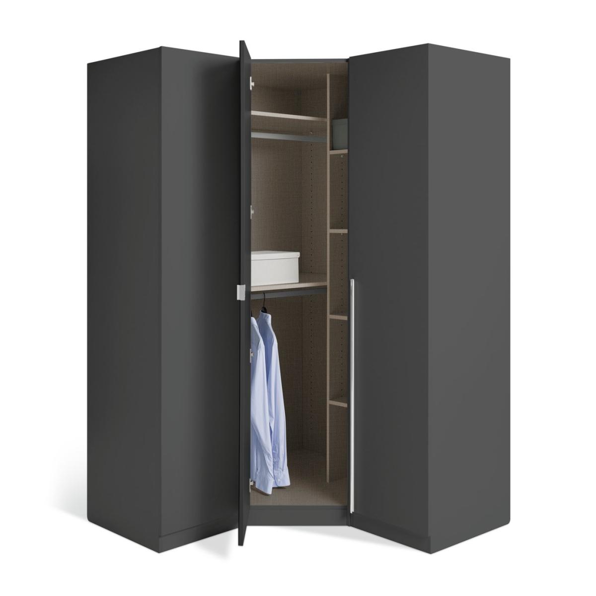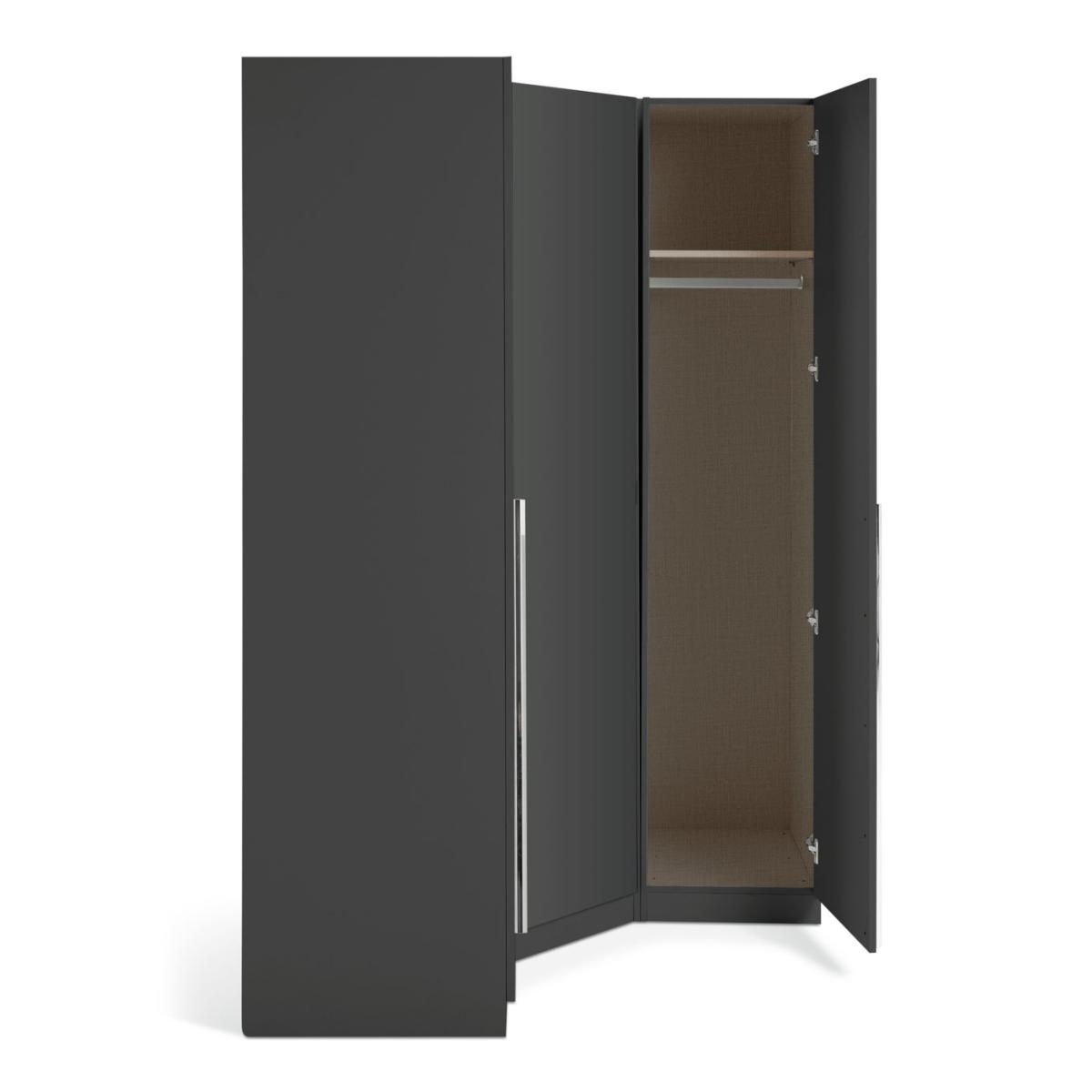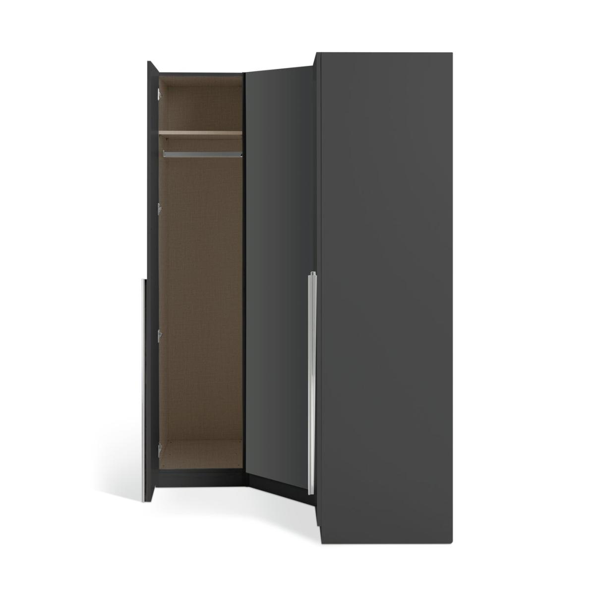 What we love about Munich is how you can make it your own. Take this clever mirrored corner wardrobe. Behind the 3 doors and smart grey facade are plenty of adjustable shelves and hanging rails. And at 2m high, Munich is big on space but small on footprint. Everything a modern wardrobe should be. Want to customise your wardrobe? There's a whole load of optional extras. Like shoe racks, wire baskets, alternative handles, even LED lights. Part of the Munich collection. Made of wood effect. Plastic handles. 3 doors. 1 mirror. 3 adjustable hanging rails. Hanging rail holds up to 15kg. 3 adjustable shelves. Self-assembly - 2 people recommended (includes wall fixings). If this product is over 60cm high it must be securely attached to the wall to prevent overturning. Dimensions: Size H210.5, W182.2, D91.1cm. Internal hanging space H190, W87.5, D55.5cm. Handle size: L103, W0.8cm. Weight 182kg. Package Dimensions: Package 1 dimensions: H99.3, W91.1, D210.5cm. Package 1 weight: 86.5kg. Package 2 dimensions: H213.8, W48, D5.3cm. Package 2 weight: 19.2kg. Package 3 dimensions: H221.4, W59.7, D5.58cm. Package 3 weight: 37.8kg. FSC certified meaning the materials used for this product are responsibly sourced. General information: We are excited to be welcoming some of our favourite HOME products into the Habitat range. Your product may arrive in Habitat or HOME packaging.