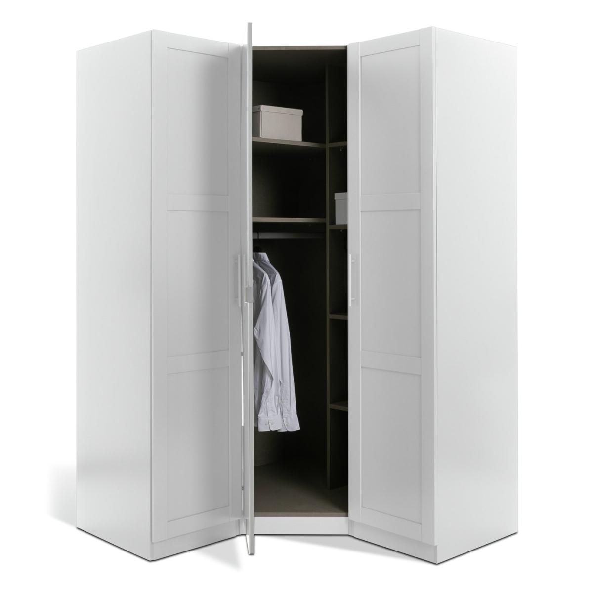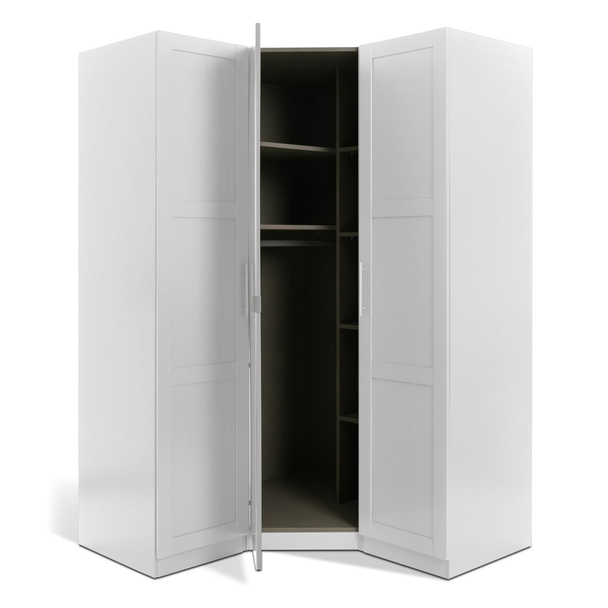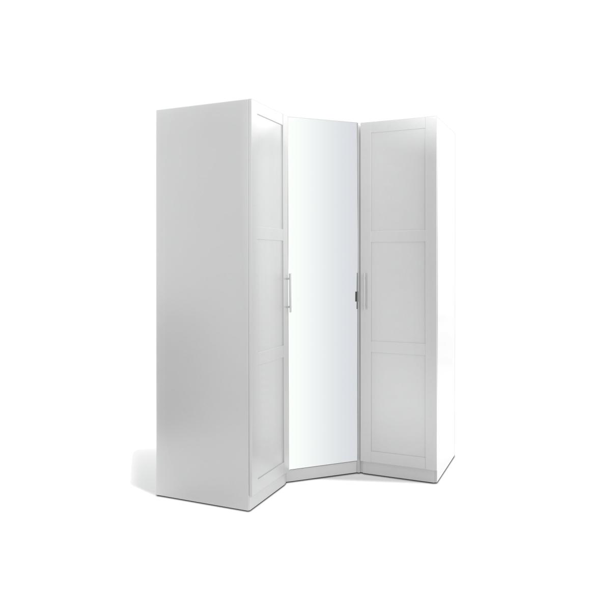 What we love about Munich is how you can make it your own. Take this clever corner wardrobe. Behind the mirrored door and smart white facade are 6 adjustable shelves and a hanging rail. And at 2m high, Munich is big on space but small on footprint. Everything a modern wardrobe should be. Corner to corner - 91x89.5 cm. Want to customise your wardrobe? There's a whole load of optional extras. Like shoe racks, wire baskets, alternative handles, even LED lights. Part of the Munich collection. Made of wood effect. Metal handles. 3 doors. 1 mirror. 3 adjustable hanging rails. Hanging rail holds up to 15kg. 3 adjustable shelves. Self-assembly - 2 people recommended (includes wall fixings). If this product is over 60cm high it must be securely attached to the wall to prevent overturning. Dimensions: Size H210.5, W182.2, D91.1cm. Internal hanging space H190, W87.5, D55.5cm. Handle size: L22, W1.2cm. Weight 173kg. Package Dimensions: Package 1 dimensions: H99.3, W91.1, D210.5cm. Package 1 weight: 86.5kg. Package 2 dimensions: H213.8, W48, D5.3cm. Package 2 weight: 19.2kg. Package 3 dimensions: H221.4, W59.7, D5.58cm. Package 3 weight: 37.8kg. General information: FSC certified meaning the materials used for this product are responsibly sourced. We are excited to be welcoming some of our favourite HOME products into the Habitat range. Your product may arrive in Habitat or HOME packaging.
