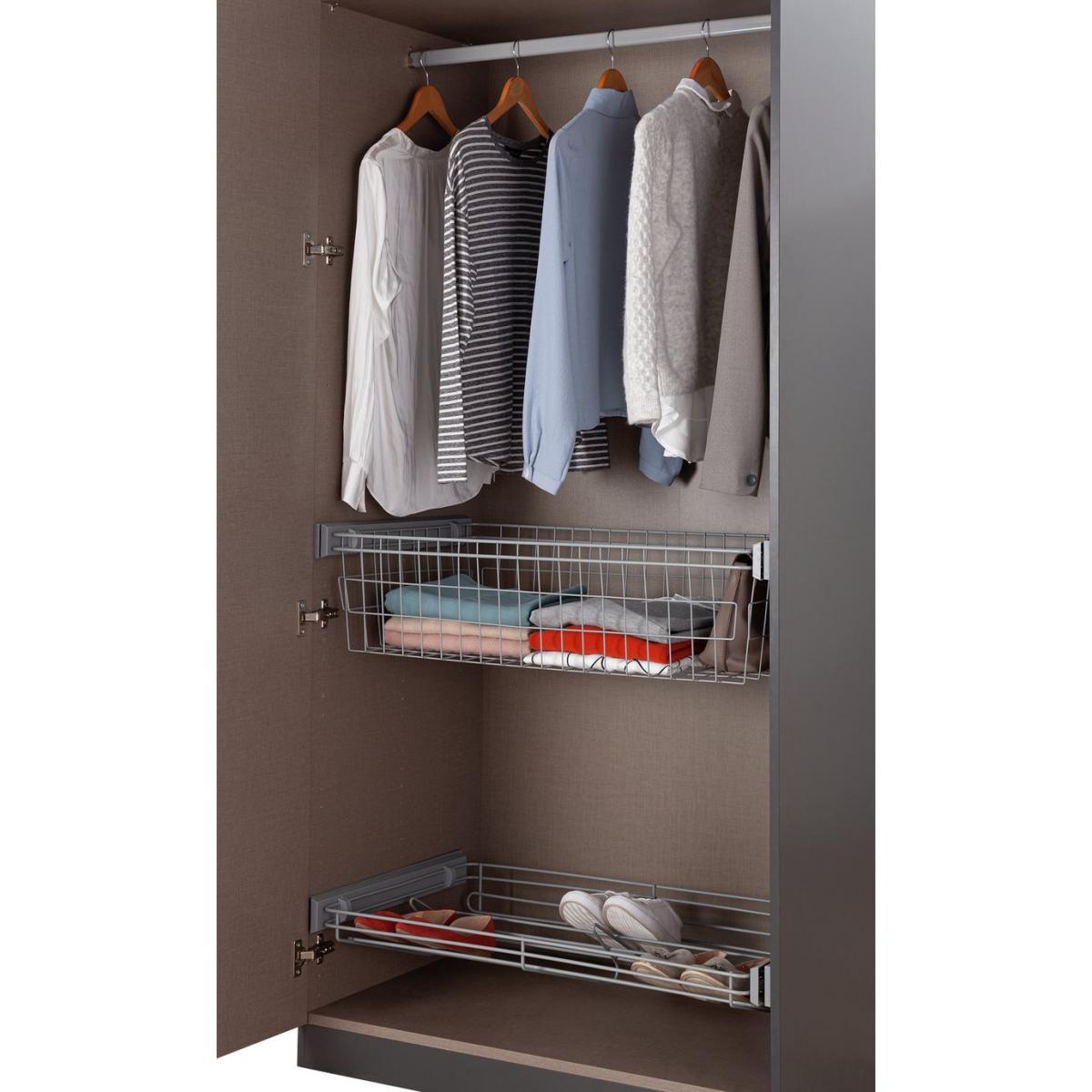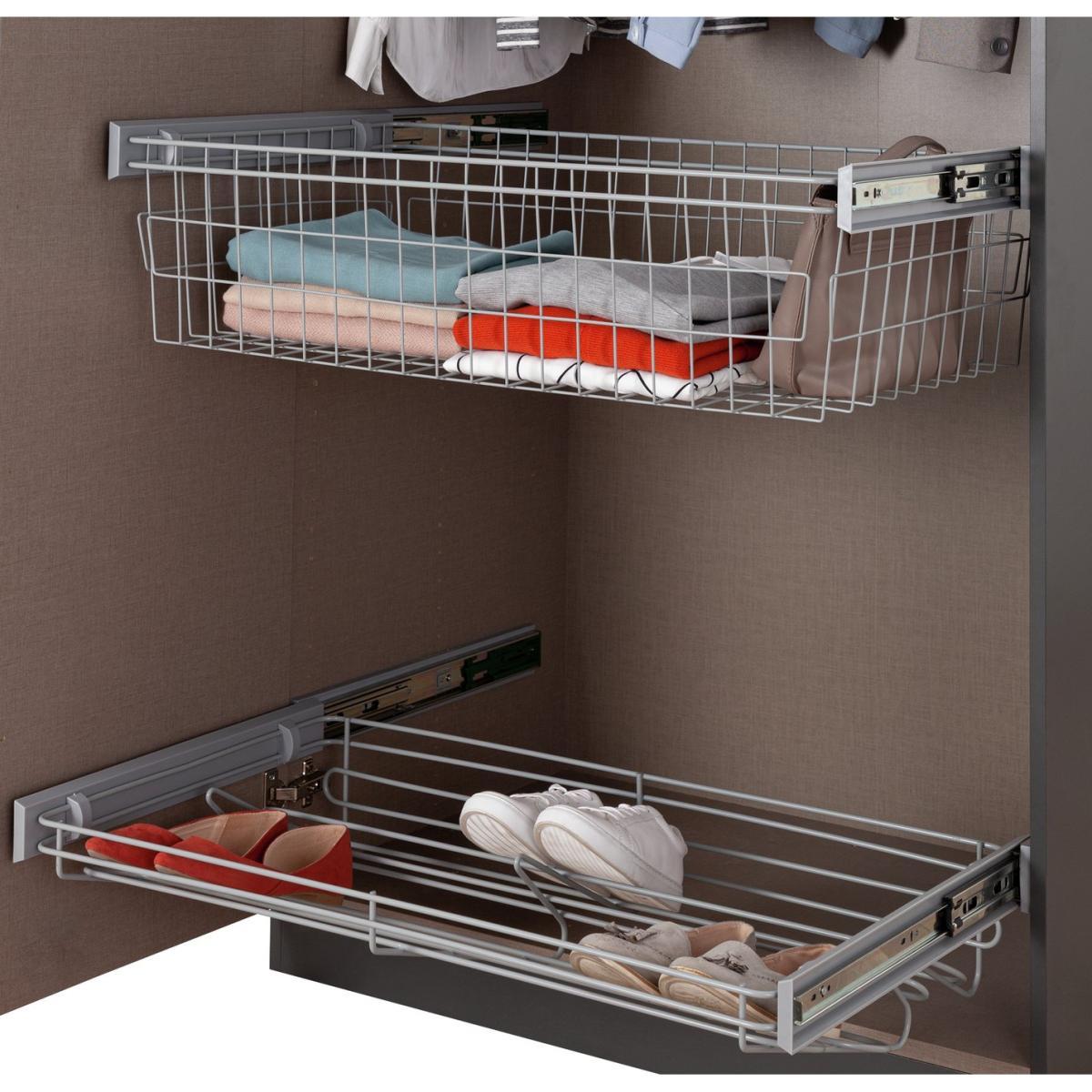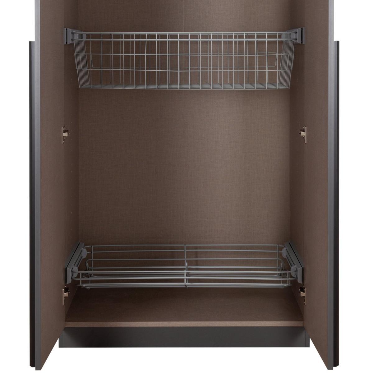 Designed to make bedroom clutter a distant memory, the double shoe rack and basket set makes the perfect addition to your two-door Munich wardrobe. Fitting neatly inside your wardrobe, the versatile grey wire storage basket and shoe rack make everyday dressing a pleasure. Extending outwards to maximise your storage space and sliding back on premium soft-close runners, these practical inserts are just a few of the optional extras available with the Munich wardrobe.
