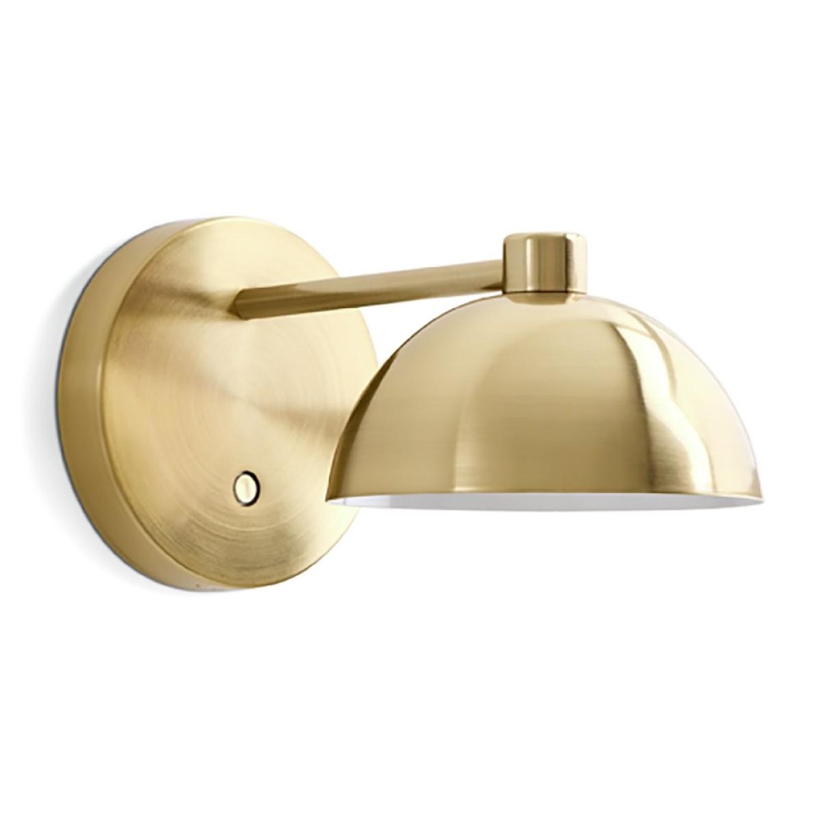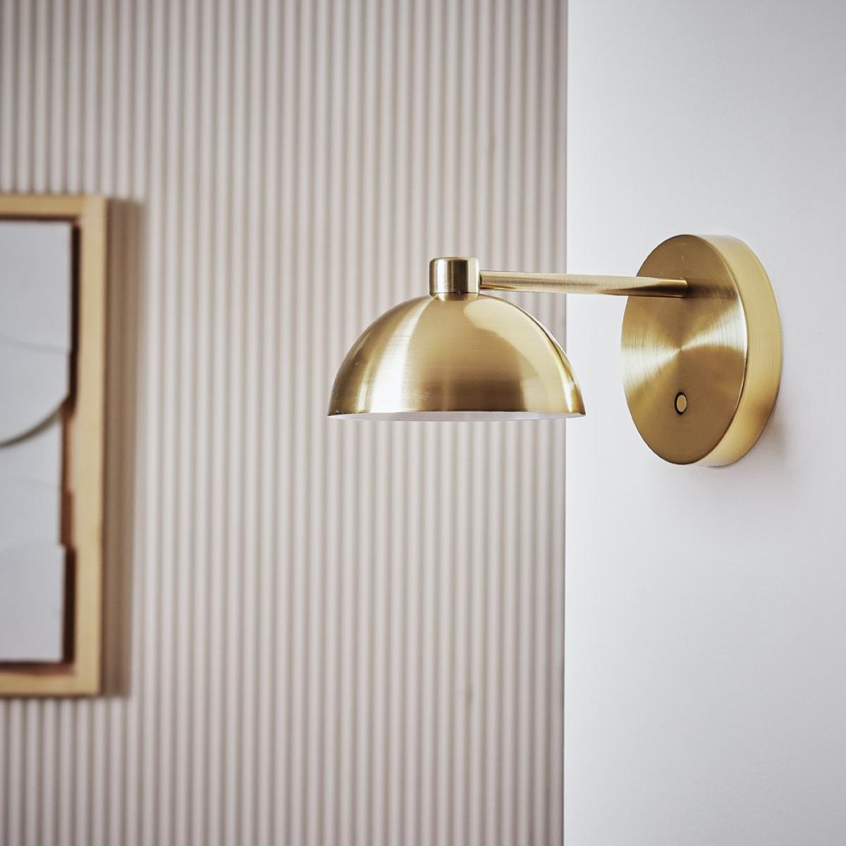 Give your wall a vintage vibe with our mushroom wall light. Designed in-house it combines retro looks with today's tech. Made from steel with a brass finish, the 70's style metal dome casts a warm ambient glow. Place it wherever you like, it's rechargeable via a USB port so no socket needed. Flexible, fabulous, it's a real statement piece, off or on. Dimensions: Size H13, W24.5,. Non-adjustable drop. Bulb Information: Energy consumption/1000h (kwh): 3. W. LED (included). Recommended maximum wattage: 3 watts. Can not be used with a dimmer switch. Colour rendering index 80. Colour temperature 3000. K. Rated luminous flux 120 lumens. General Information: Material: steel. Product features: USB connectivity. IP rating 20. Not suitable for bathroom use. Weight: 0.42kg. Manufacturer's 1 year guarantee.
