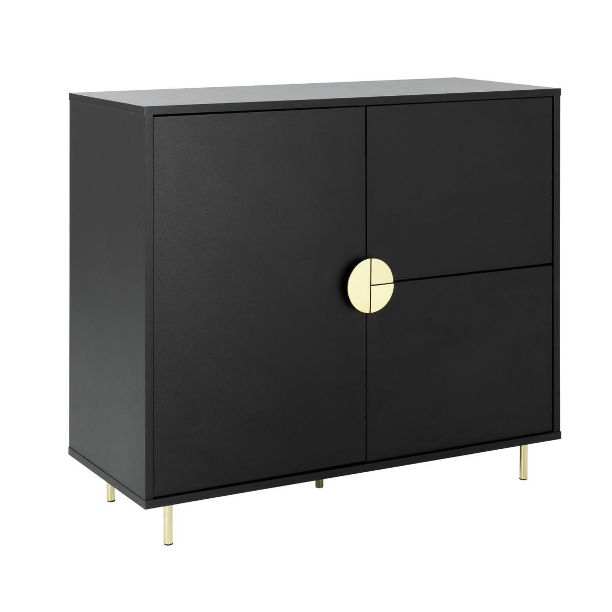 A drop of Eastern elegance. Our Nara black drinks cabinet is modern, bold and full of character. Gorgeous gold-plated handles and legs are a stunning contrast against painted, solid wood doors. Its 4 spacious internal shelves are just waiting to be filled with glasses, spirits and lavish liqueurs. This dark toned cupboard works beautifully in a neutral decor, add a few plants to complete the look. Cocktail night just stepped up a notch. Be the host with the most. Take a peek at our glassware and get pouring. Part of the Nara collection. Size H79.2, W106.6, D44cm. Weight 50kg. Maximum load weight of 50kg. 4 shelves 4 fixed shelves. 2 doors. Gold metal handles. Non-halogen display lighting. Self-assembly - 2 people recommended. Package Dimensions: Package 1 dimensions: H18.3, W116.4, D53.1cm. Package 1 weight: 52.5kg. General Information:We are excited to be welcoming some of our favourite HOME products into the Habitat range. Your product may arrive in Habitat or HOME packaging.
