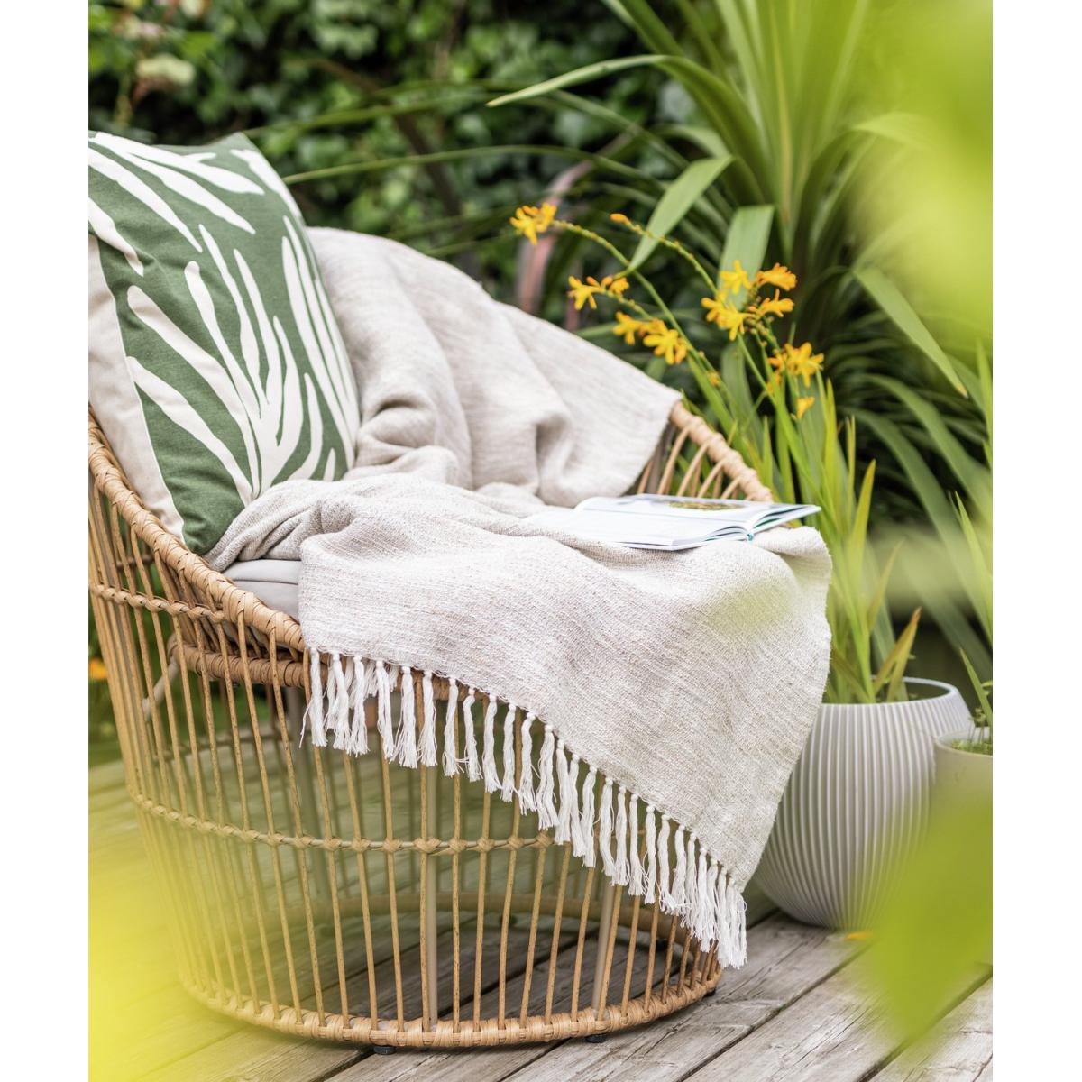 I love this habitat throw for its versatile, understated appeal. Its neutral tone and natural woven texture make it a perfect addition to a range of interiors, from Scandi-inspired minimalism to cosy countryside chic. It works especially well layered over a sofa or bed for practical warmth while adding a touch of tactile softness. For styling, try draping it casually over the arm of a sofa or folding it neatly at the foot of the bed to create effortless visual interest. Its organic look pairs nicely with both contemporary and traditional pieces, making it a flexible accessory that does more than just keep you warm.
