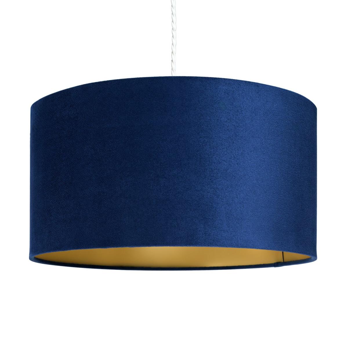 A shade more luxe. Looking magnificent in deep navy velvet with a gold interior, our large drum shade creates just the right mood for cosy evenings. The classic design effortlessly diffuses light to create a subtle, ambient glow. Simply, softly, elegant. To keep the tactile velvet shade looking pristine, dust lightly with a clean cloth now and then. Part of the Drum Shade collection. Made from velvet. Size H20cm, Diameter 40cm. Recommended maximum bulb wattage 42 watts. Supplied assembled. Easy fit shade. Manufacturer's 1 year guarantee.